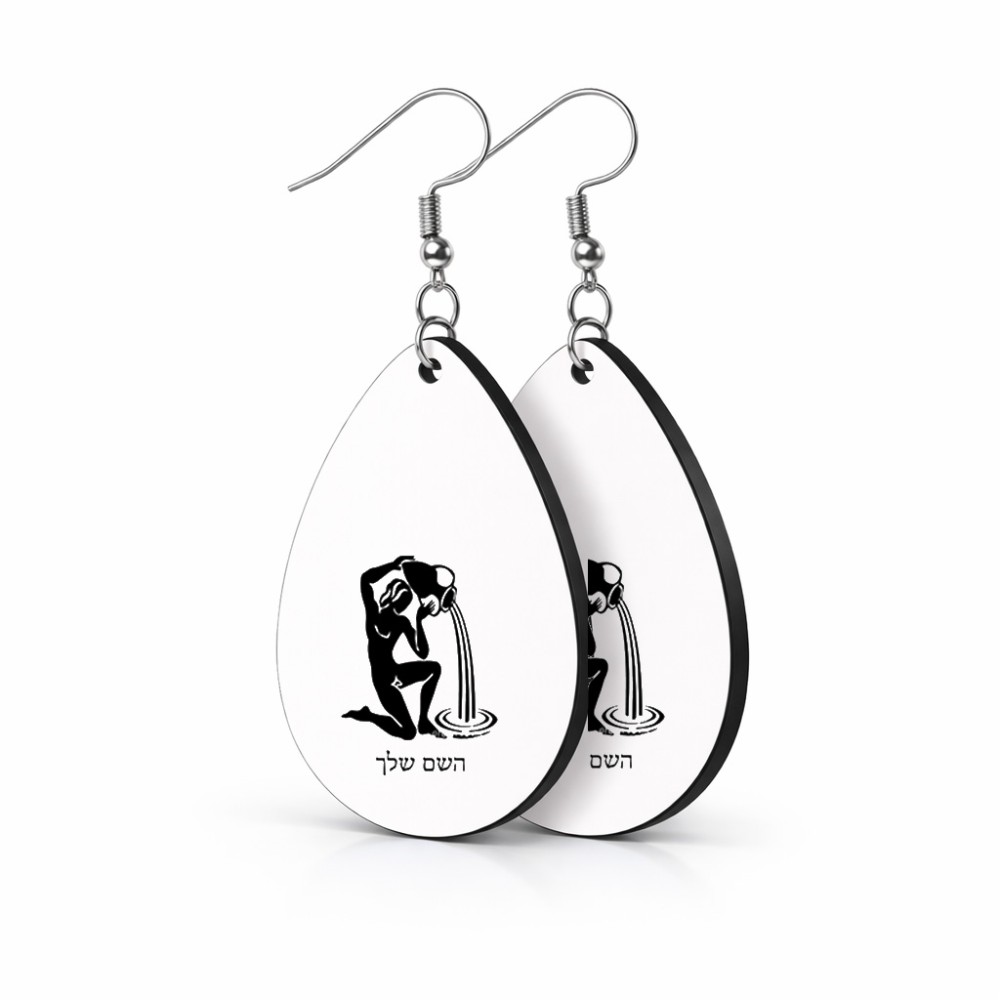 זוג עגילים בצורת טיפה בעיצוב אישי עם השם שלך בעיצוב מזלות - דלי גודל העגילים 2.5 × 3.8 ס"מ. את השם המבוקש ניתן לציין בהזמנה, אם לא צויין אנחנו ניצור קשר לבירור.