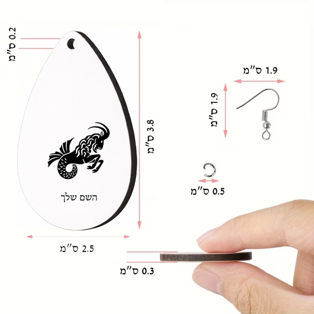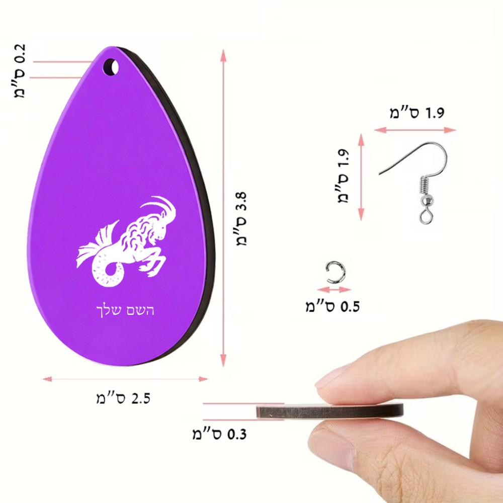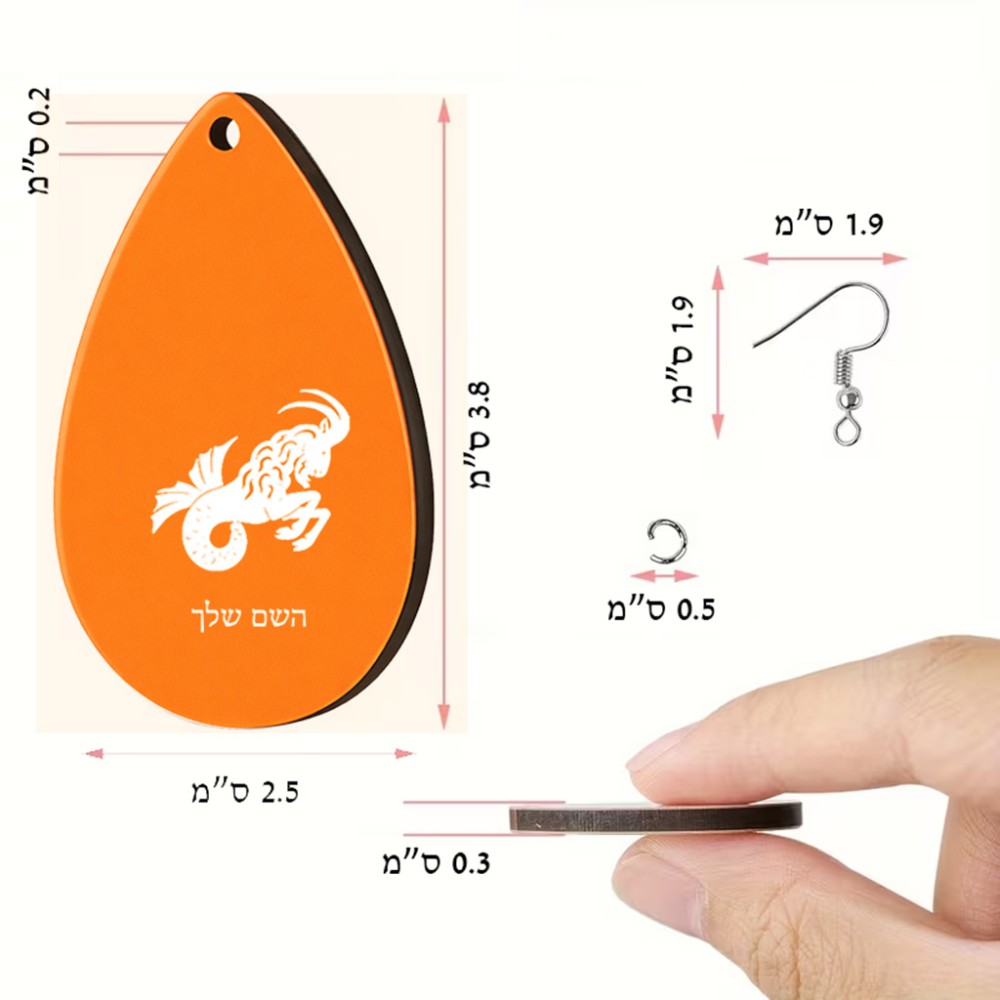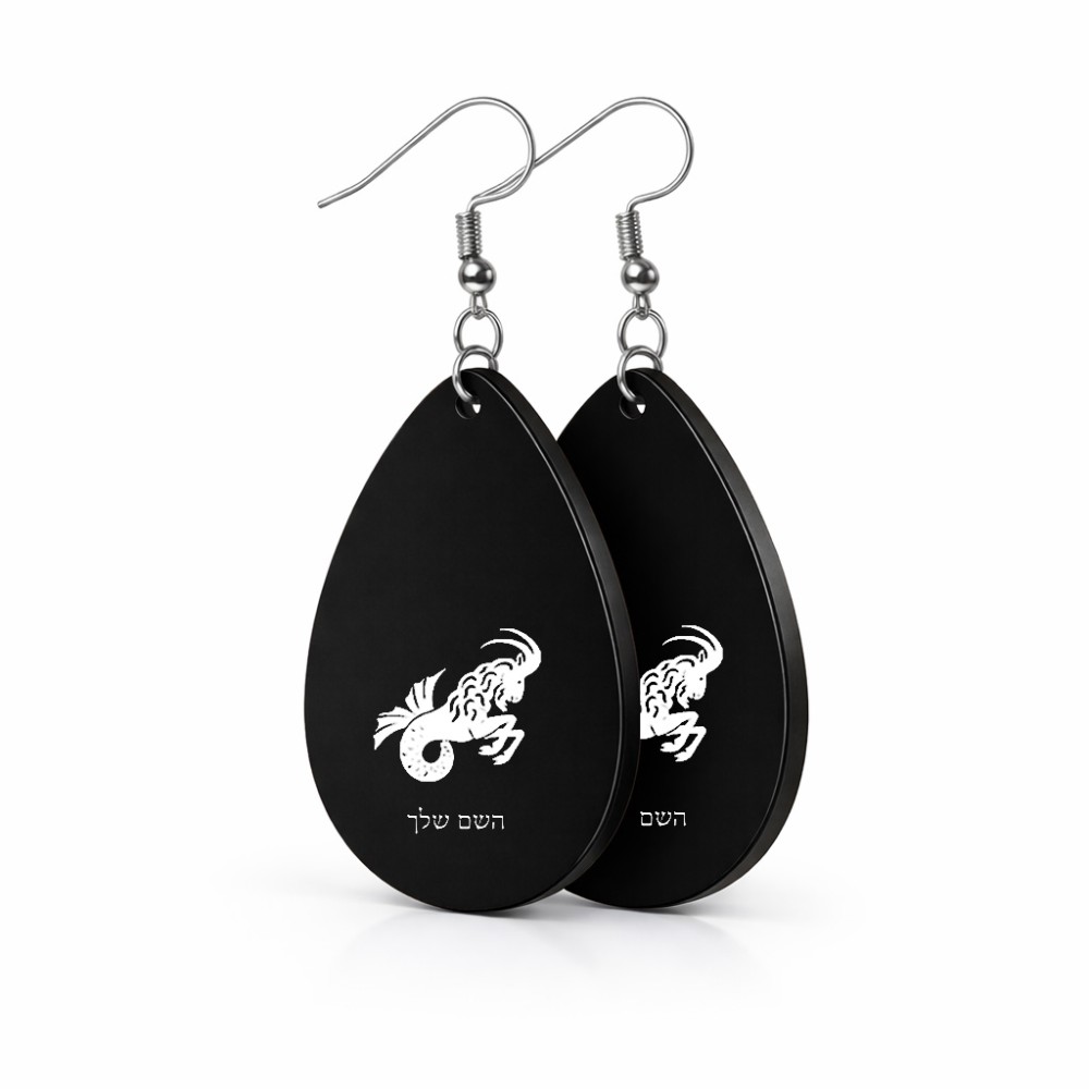 זוג עגילים בצורת טיפה בעיצוב אישי עם השם שלך בעיצוב מזלות - גדי גודל העגילים 2.5 × 3.8 ס"מ. את השם המבוקש ניתן לציין בהזמנה, אם לא צויין אנחנו ניצור קשר לבירור.