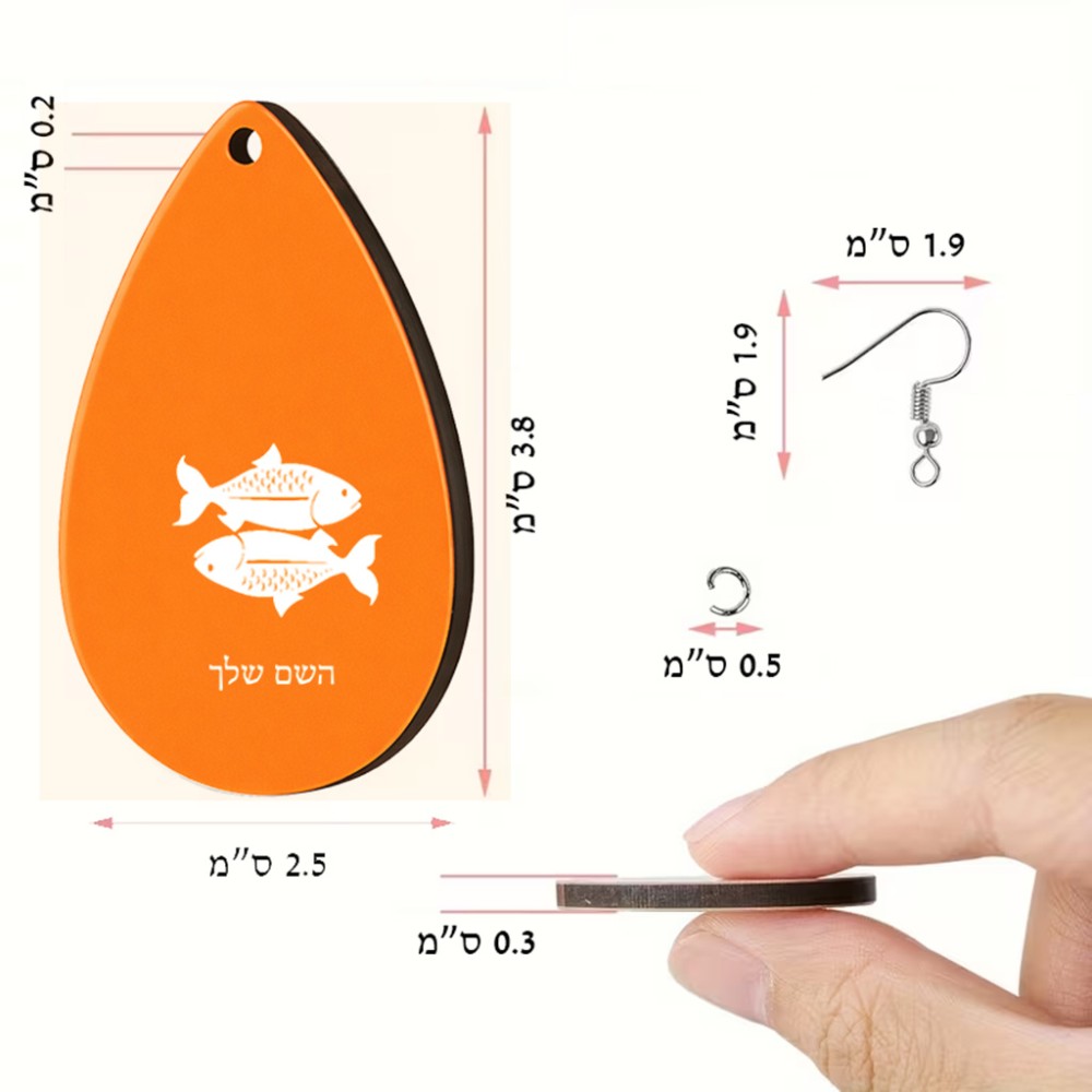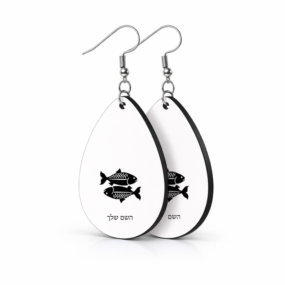 זוג עגילים בצורת טיפה בעיצוב אישי עם השם שלך בעיצוב מזלות - דגים גודל העגילים 2.5 × 3.8 ס"מ. את השם המבוקש ניתן לציין בהזמנה, אם לא צויין אנחנו ניצור קשר לבירור.