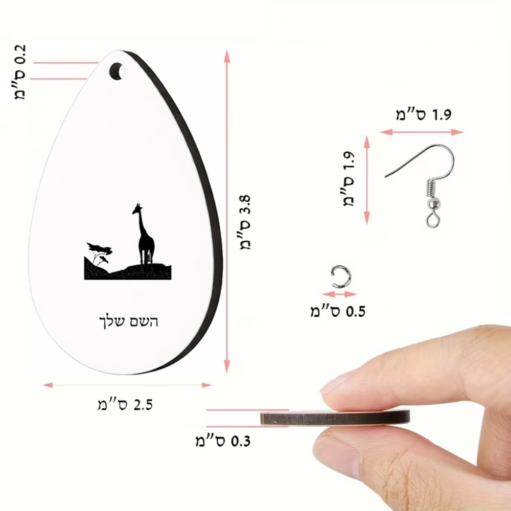זוג עגילים בצורת טיפה בעיצוב אישי עם השם שלך בעיצוב ג'ירפה באפריקה גודל העגילים 2.5 × 3.8 ס"מ