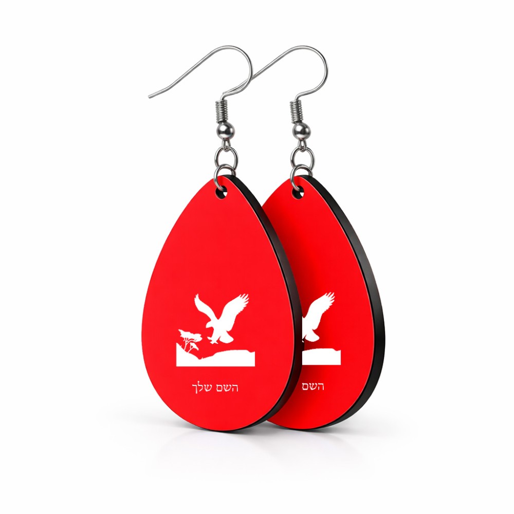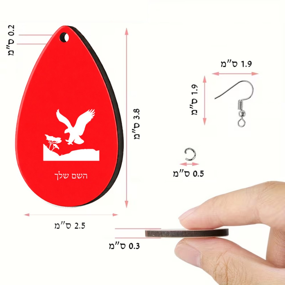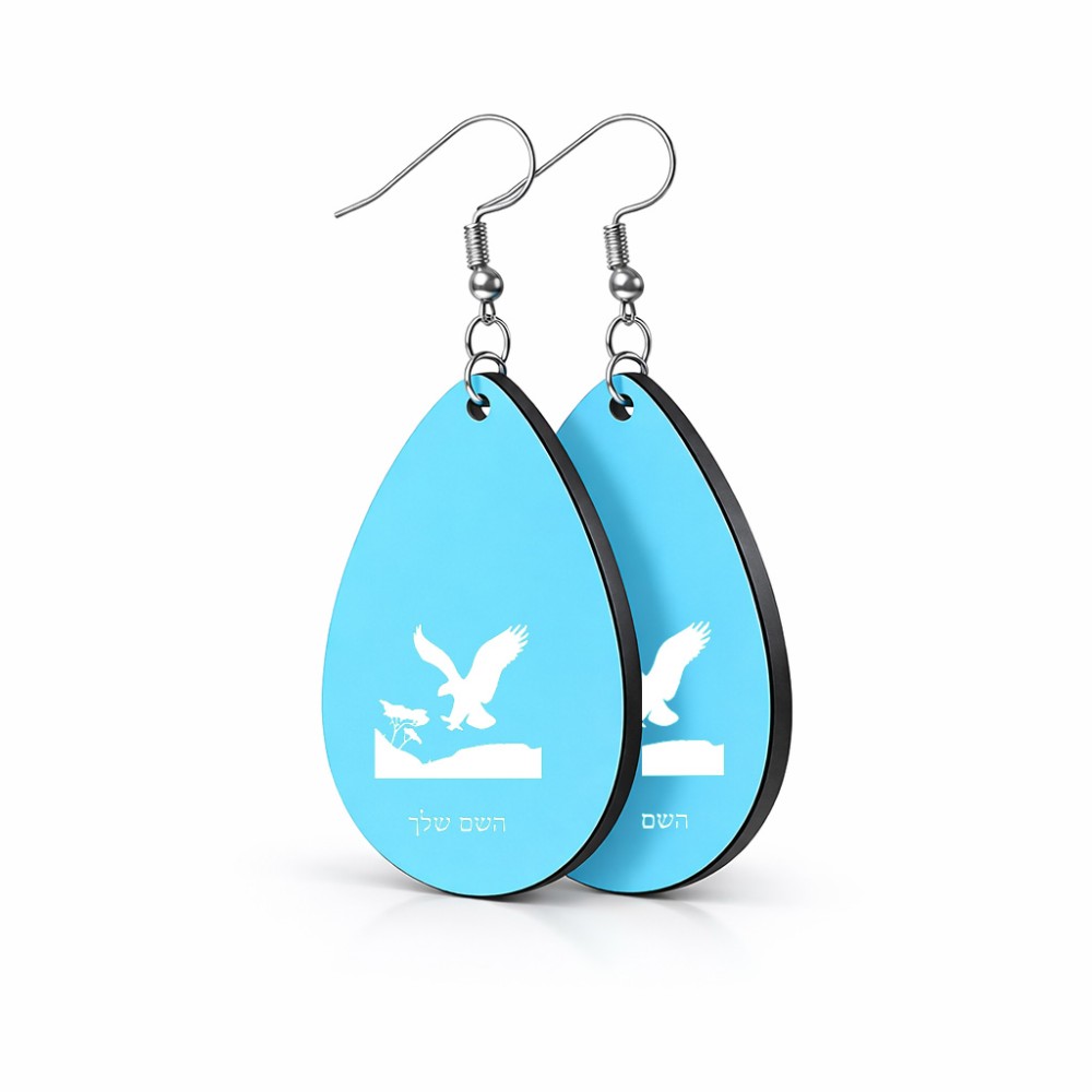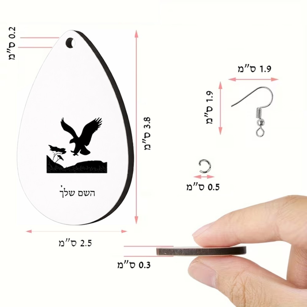 זוג עגילים בצורת טיפה בעיצוב אישי עם השם שלך בעיצוב נשר אמריקאי גודל העגילים 2.5 × 3.8 ס"מ. את השם המבוקש ניתן לציין בהזמנה, אם לא צויין אנחנו ניצור קשר לבירור.