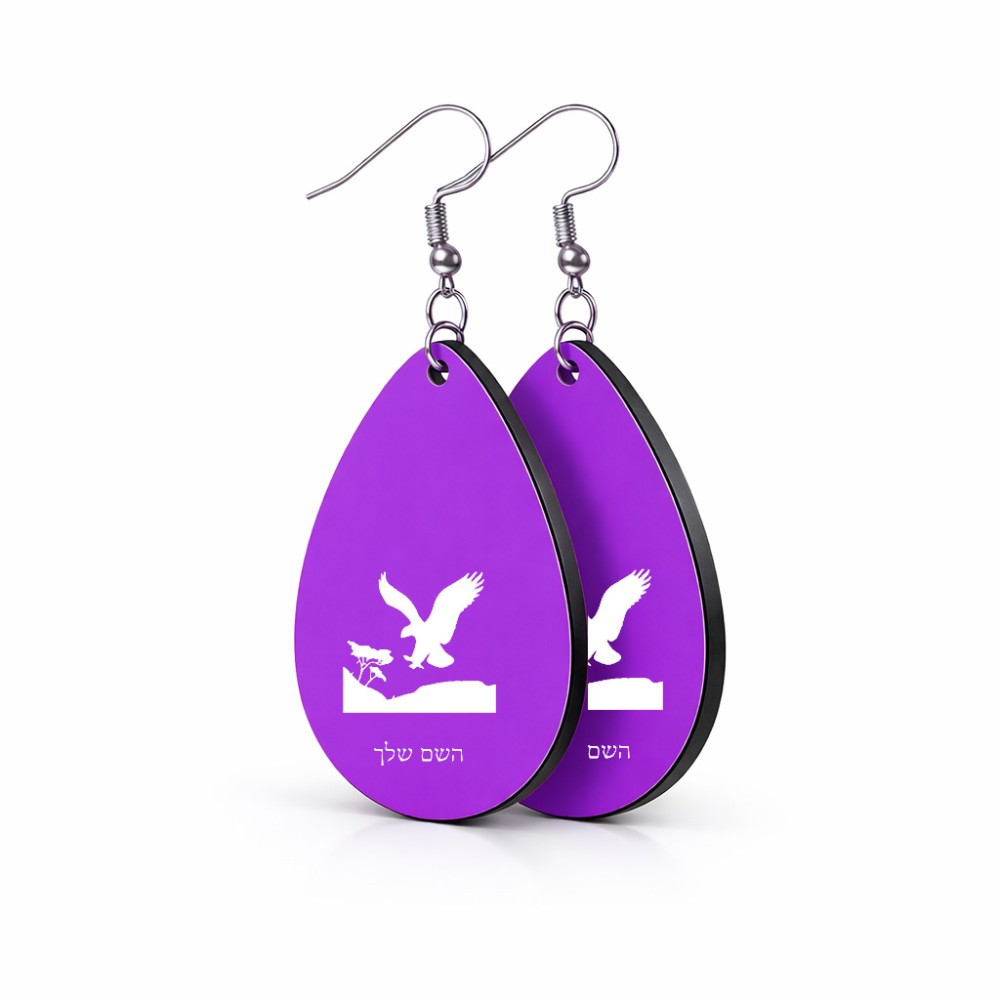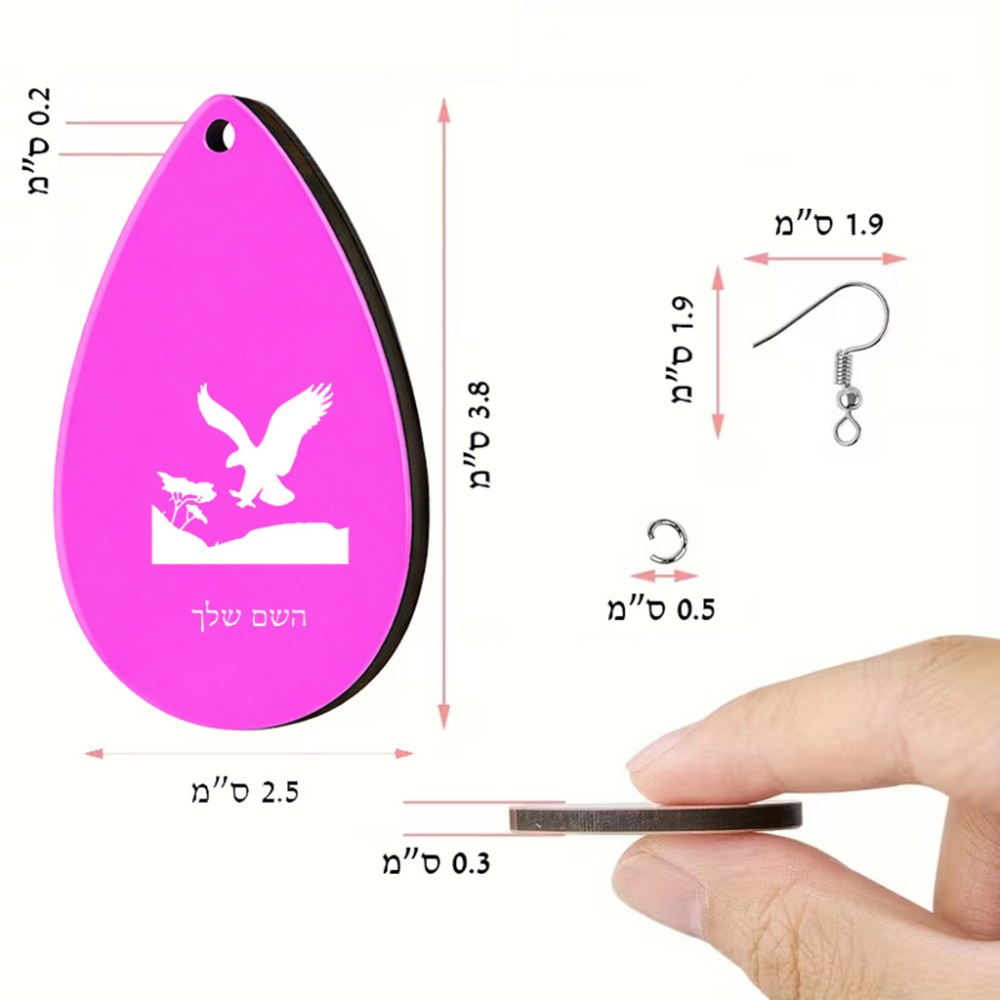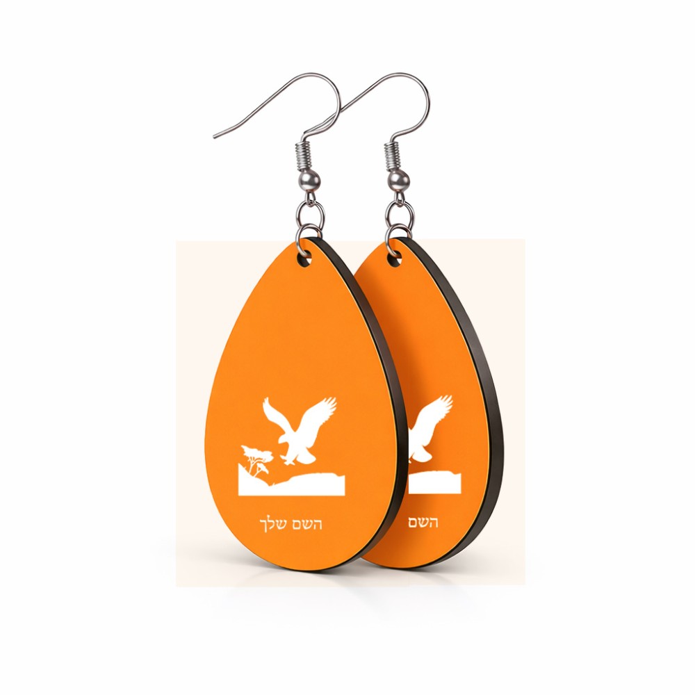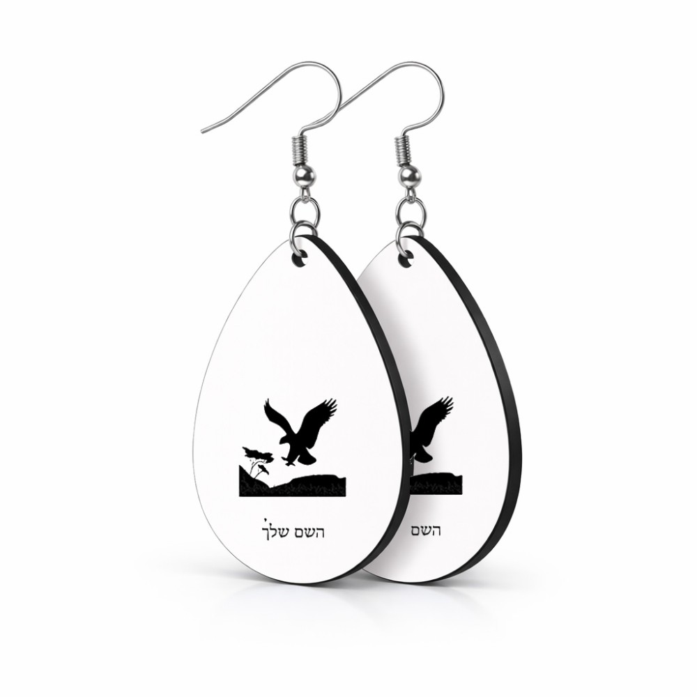 זוג עגילים בצורת טיפה בעיצוב אישי עם השם שלך בעיצוב נשר אמריקאי גודל העגילים 2.5 × 3.8 ס"מ. את השם המבוקש ניתן לציין בהזמנה, אם לא צויין אנחנו ניצור קשר לבירור.
