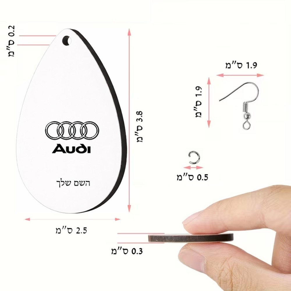 זוג עגילים בצורת טיפה בעיצוב אישי עם השם שלך בעיצוב אאודי גודל העגילים 2.5 × 3.8 ס"מ