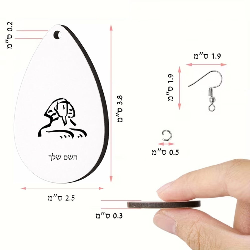 זוג עגילים בצורת טיפה בעיצוב אישי עם השם שלך בעיצוב ספינקס מצרים גודל העגילים 2.5 × 3.8 ס"מ. את השם המבוקש ניתן לציין בהזמנה, אם לא צויין אנחנו ניצור קשר לבירור.