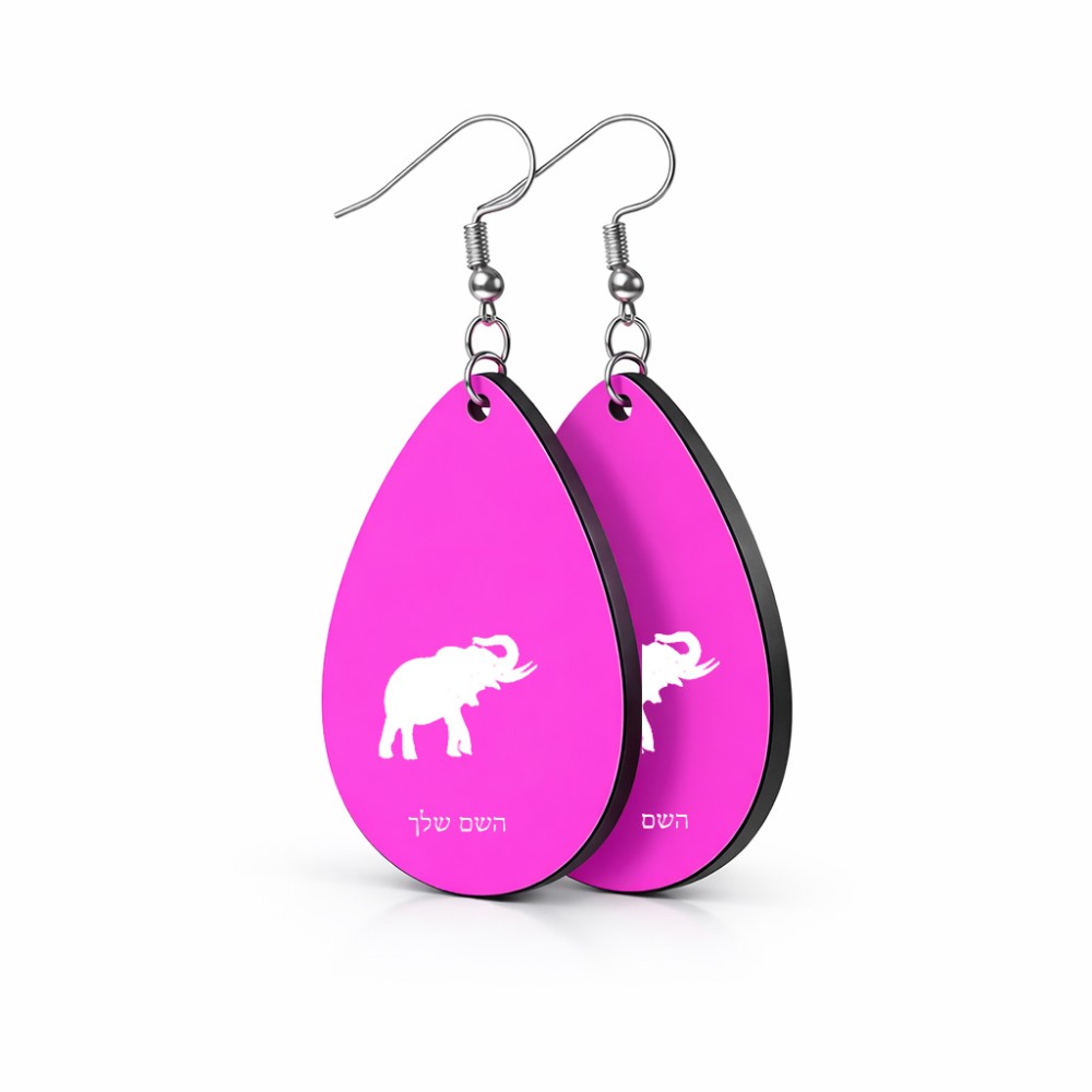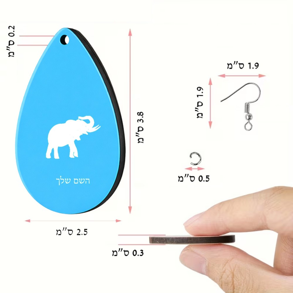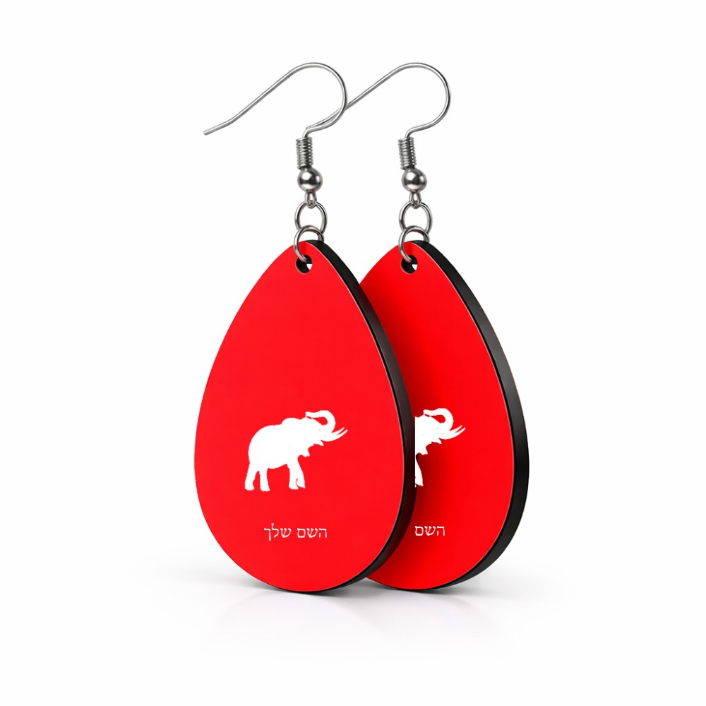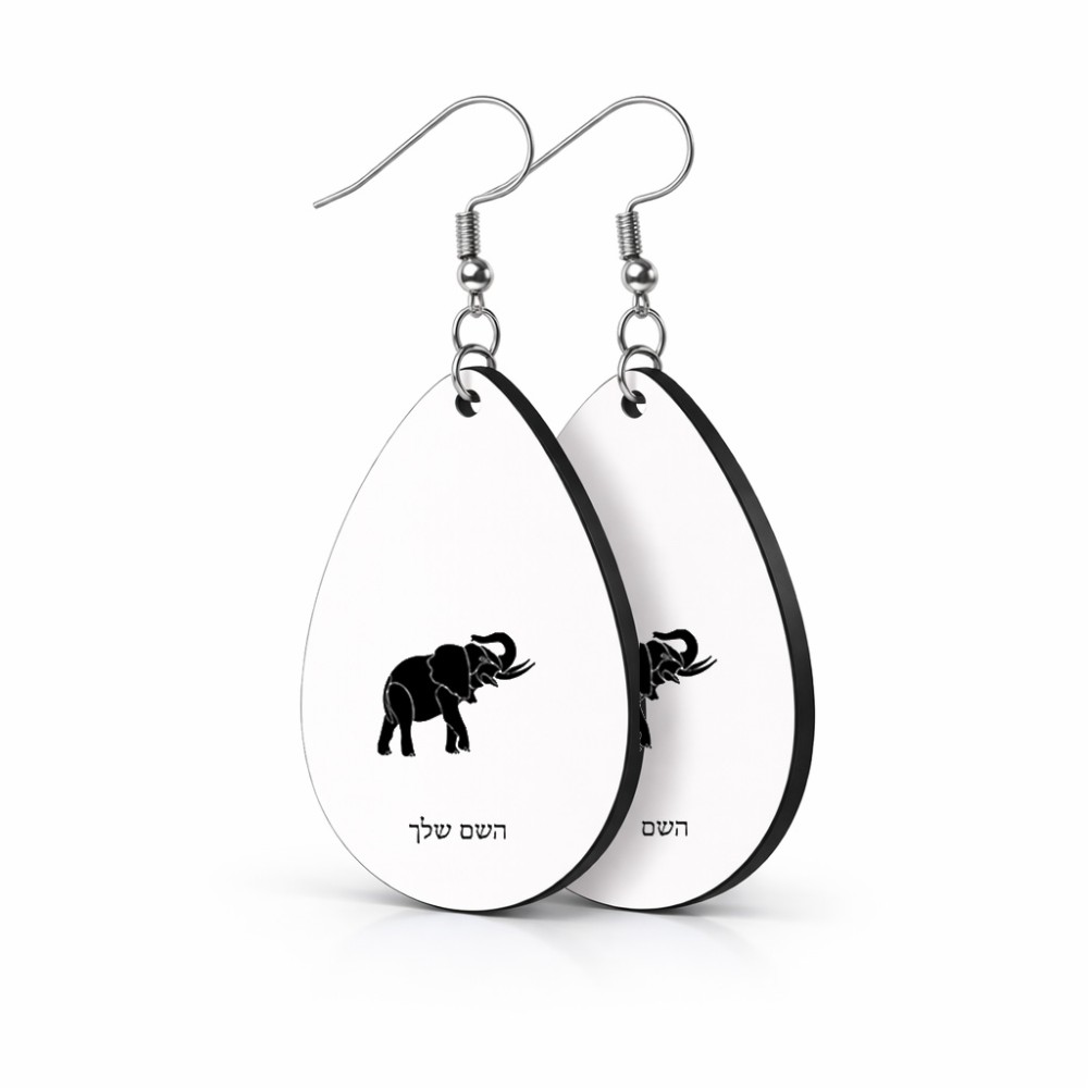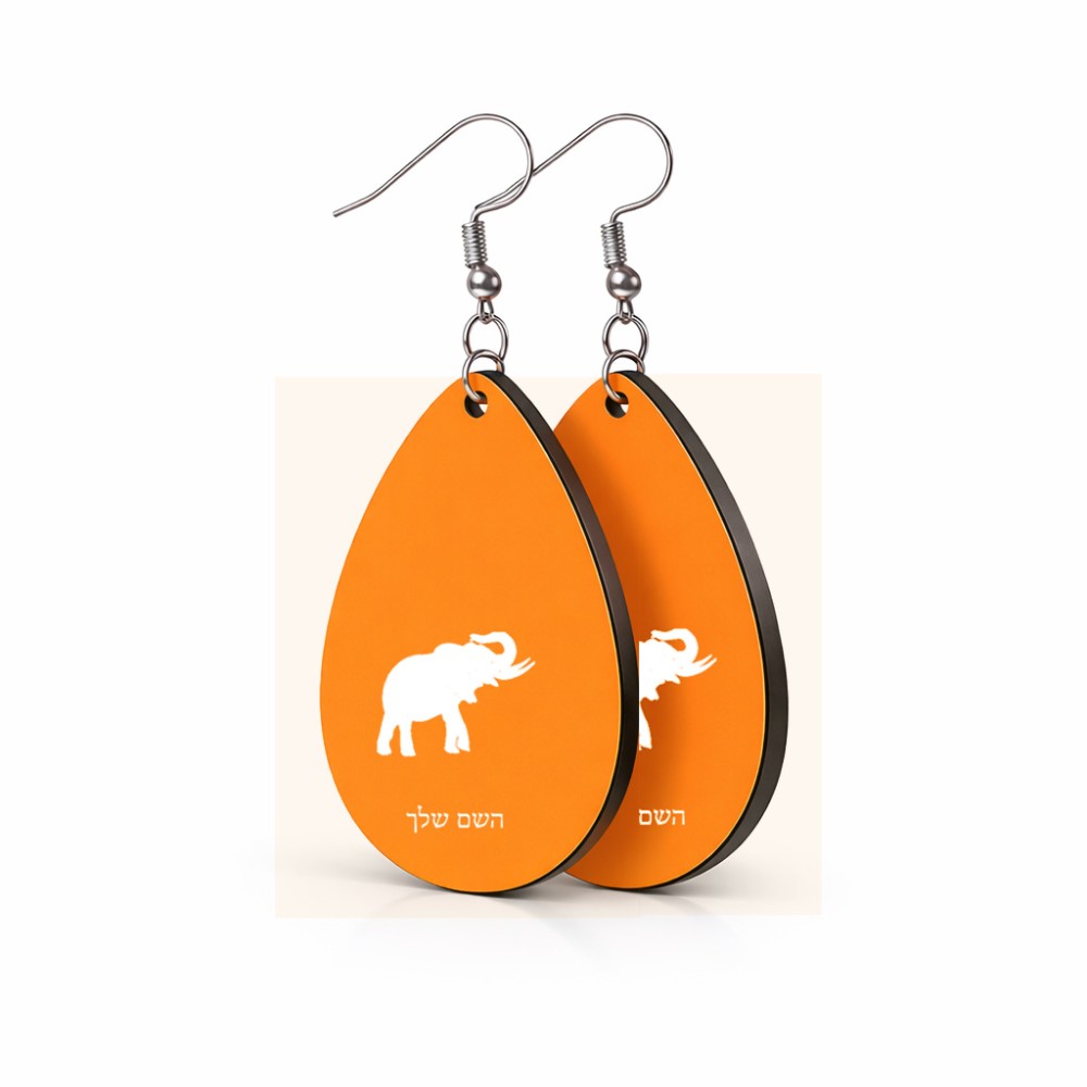 זוג עגילים בצורת טיפה בעיצוב אישי עם השם שלך בעיצוב פיל גודל העגילים 2.5 × 3.8 ס"מ. את השם המבוקש ניתן לציין בהזמנה, אם לא צויין אנחנו ניצור קשר לבירור.