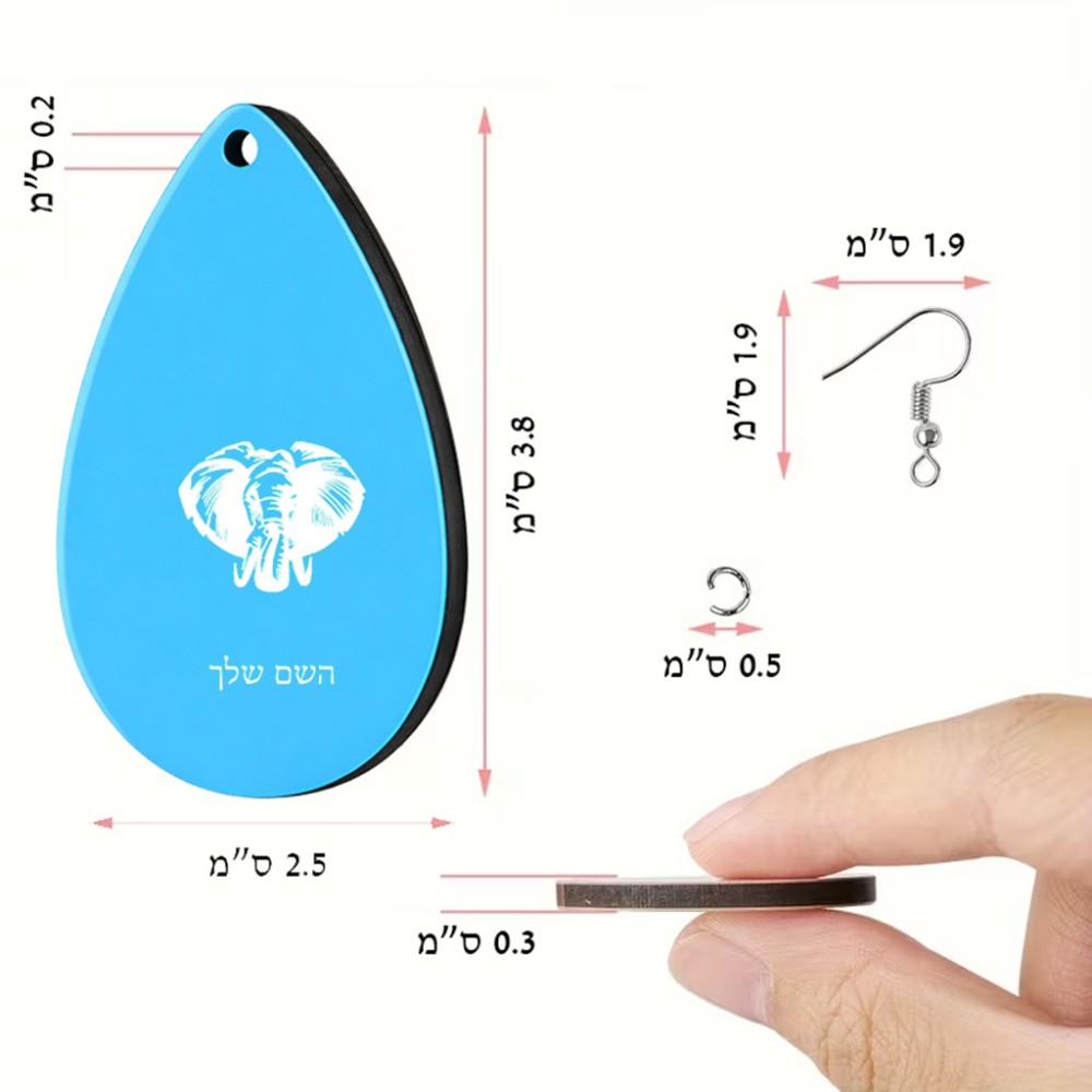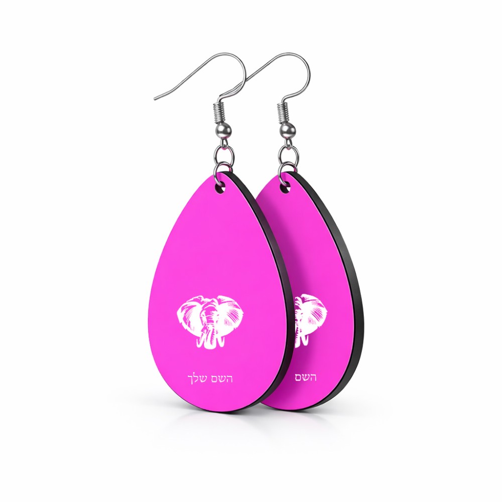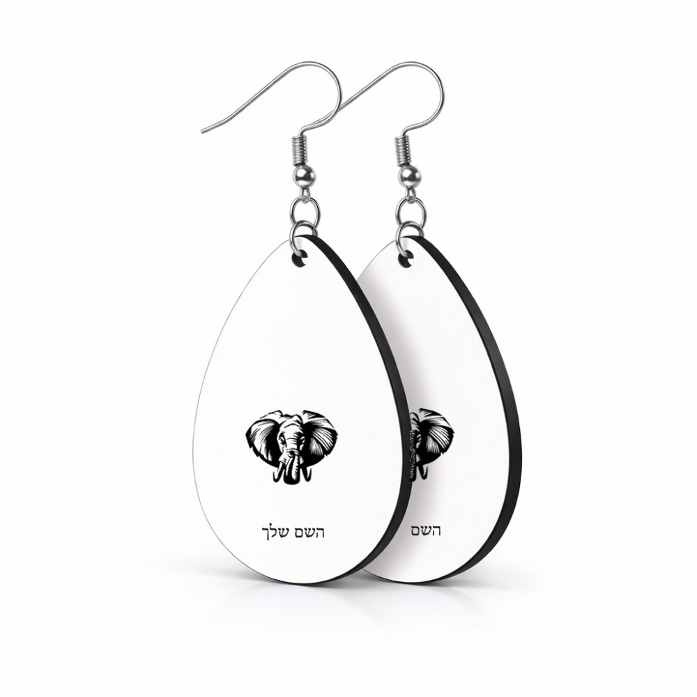 זוג עגילים בצורת טיפה בעיצוב אישי עם השם שלך בעיצוב ראש פיל גודל העגילים 2.5 × 3.8 ס"מ. את השם המבוקש ניתן לציין בהזמנה, אם לא צויין אנחנו ניצור קשר לבירור.