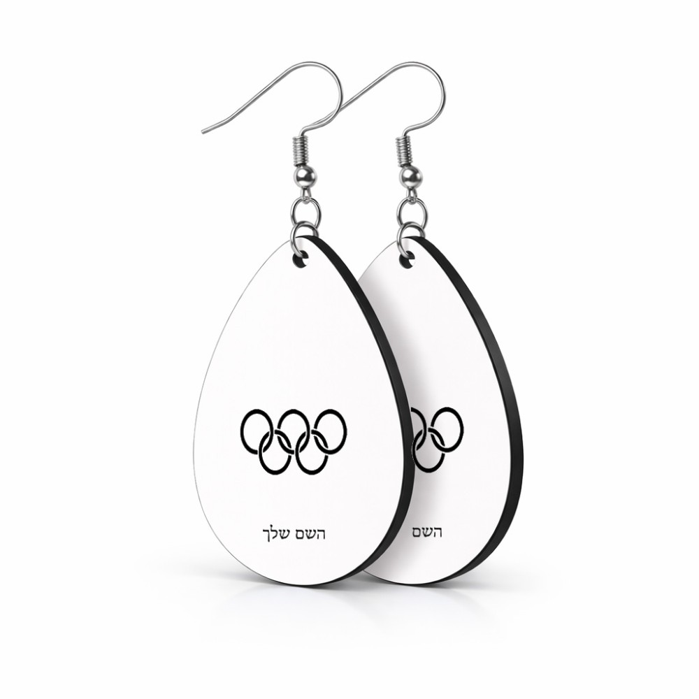 זוג עגילים בצורת טיפה בעיצוב אישי עם השם שלך בעיצוב אולימפי גודל העגילים 2.5 × 3.8 ס"מ. את השם המבוקש ניתן לציין בהזמנה, אם לא צויין אנחנו ניצור קשר לבירור.