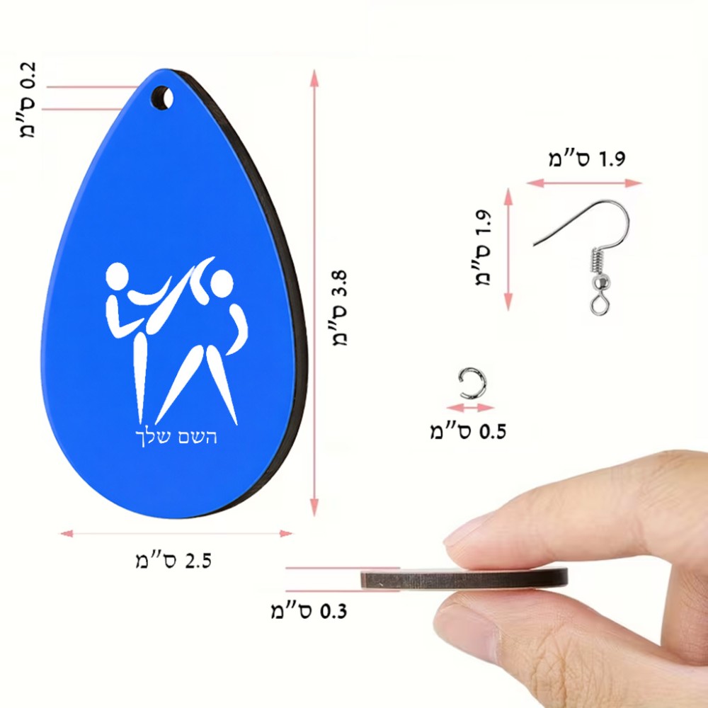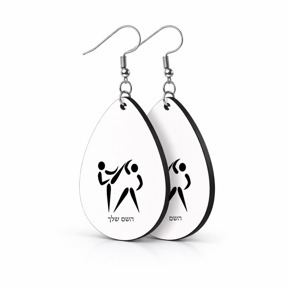 זוג עגילים בצורת טיפה בעיצוב אישי עם השם שלך בעיצוב לוחמים אולימפיים גודל העגילים 2.5 × 3.8 ס"מ. את השם המבוקש ניתן לציין בהזמנה, אם לא צויין אנחנו ניצור קשר לבירור.