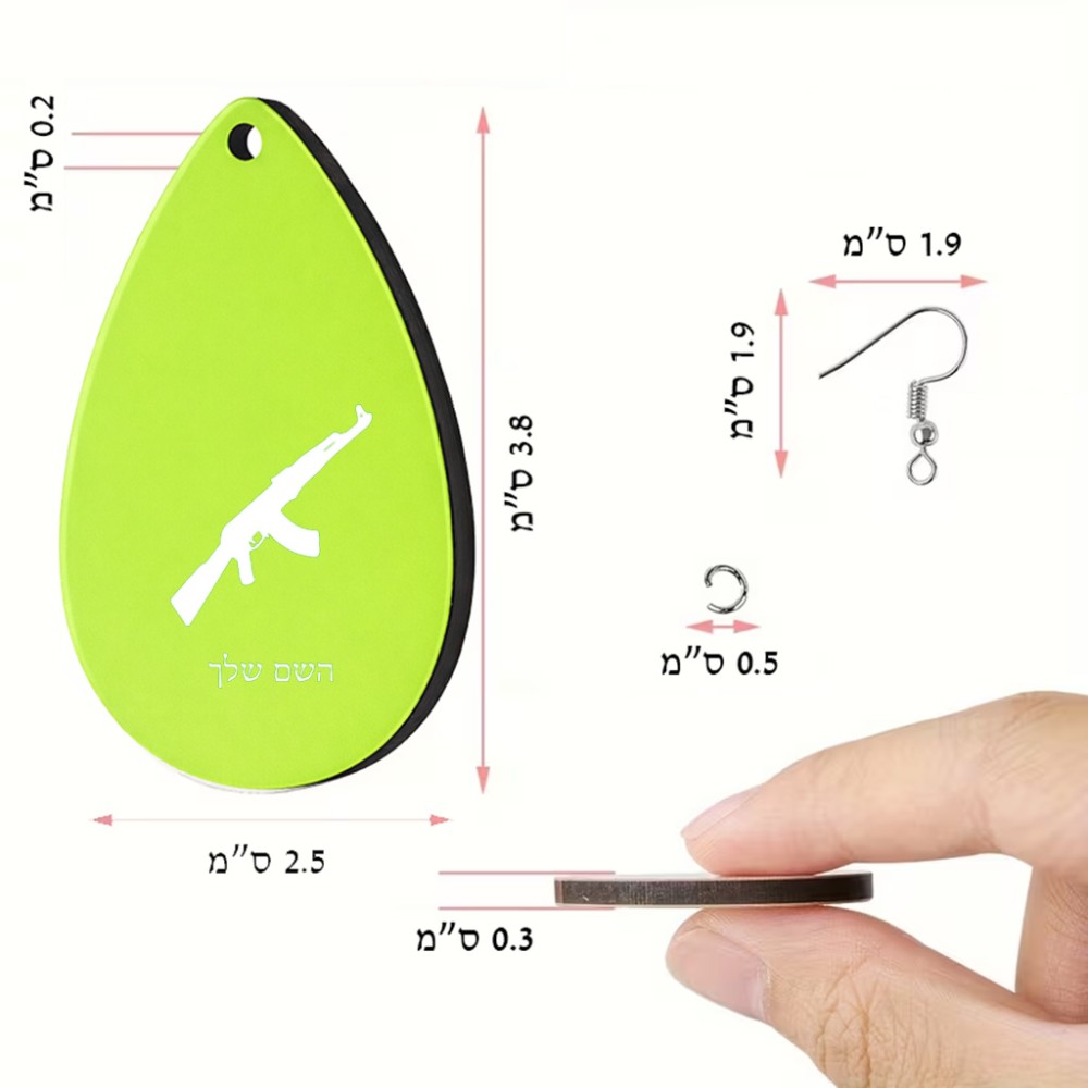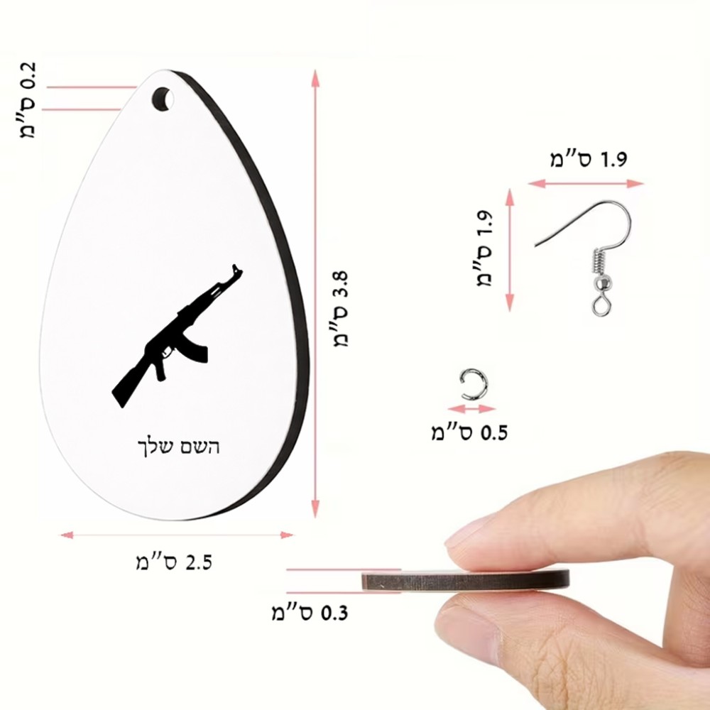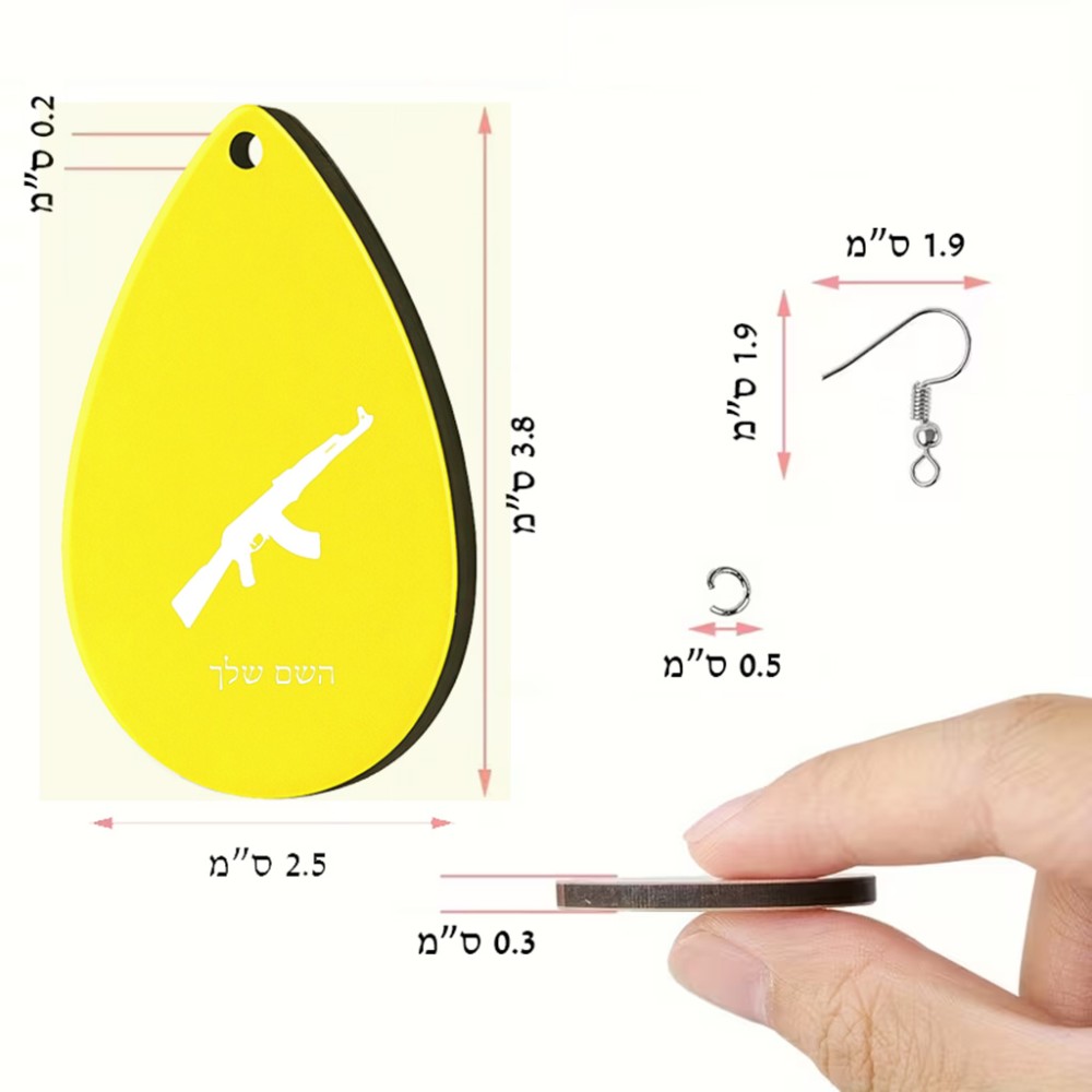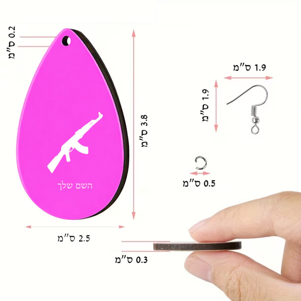 זוג עגילים בצורת טיפה בעיצוב אישי עם השם שלך בעיצוב אק 47 גודל העגילים 2.5 × 3.8 ס"מ