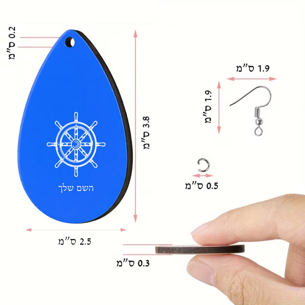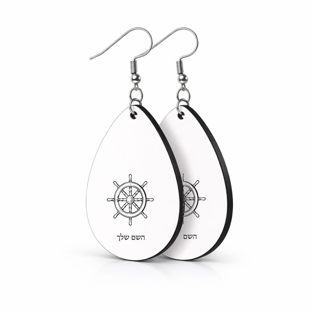 זוג עגילים בצורת טיפה בעיצוב אישי עם השם שלך בעיצוב הגה - קפטן - ים גודל העגילים 2.5 × 3.8 ס"מ. את השם המבוקש ניתן לציין בהזמנה, אם לא צויין אנחנו ניצור קשר לבירור.