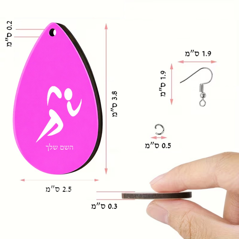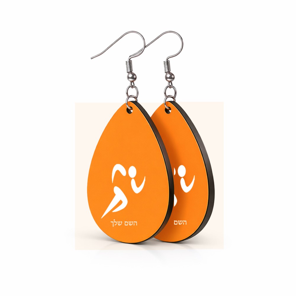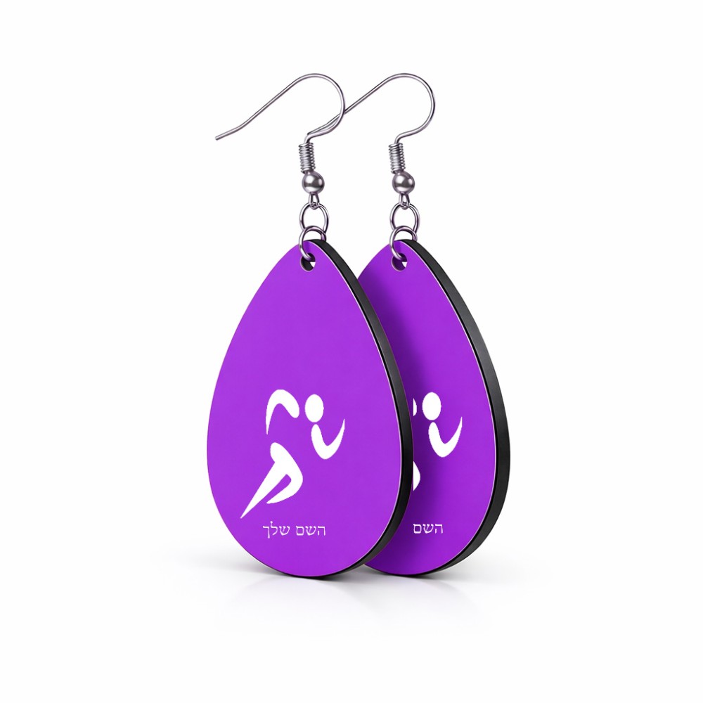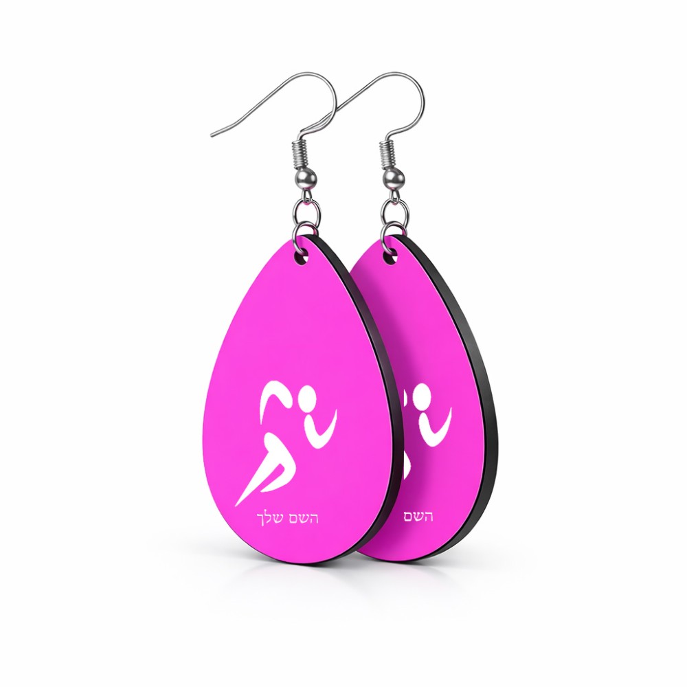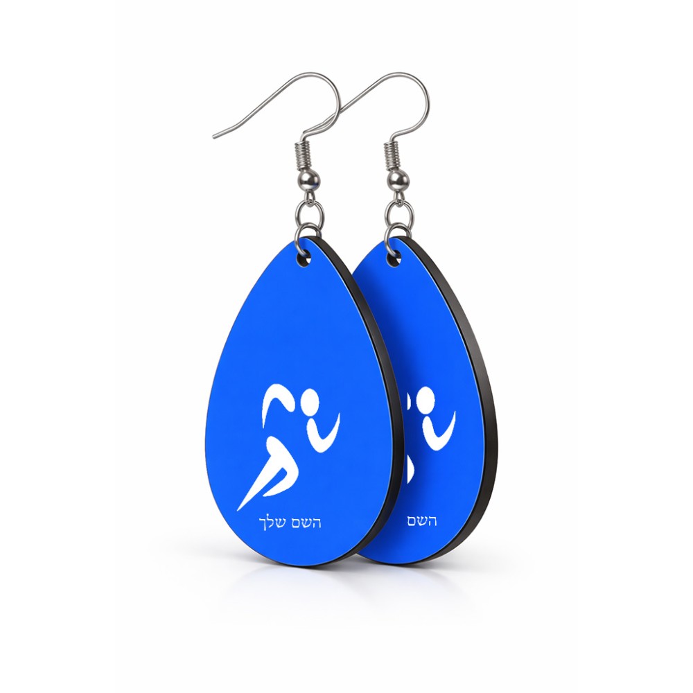 זוג עגילים בצורת טיפה בעיצוב אישי עם השם שלך בעיצוב רצים אולימפיים גודל העגילים 2.5 × 3.8 ס"מ. את השם המבוקש ניתן לציין בהזמנה, אם לא צויין אנחנו ניצור קשר לבירור.