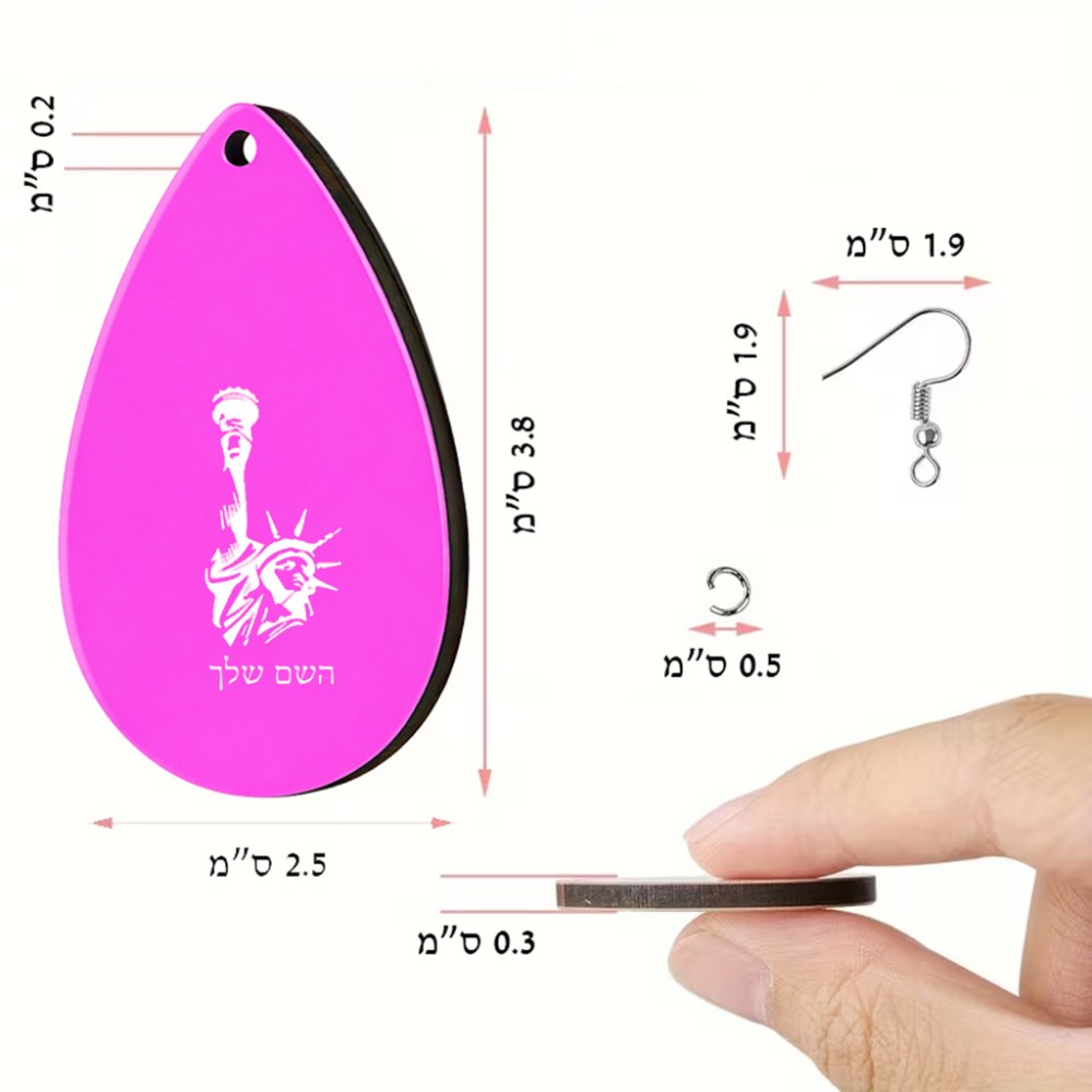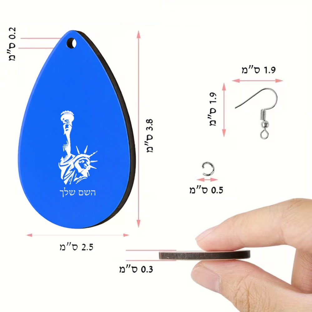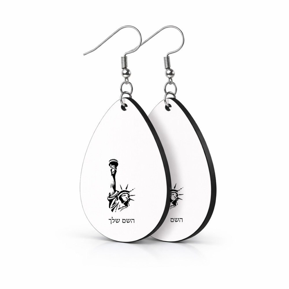 זוג עגילים בצורת טיפה בעיצוב אישי עם השם שלך בעיצוב פסל החירות גודל העגילים 2.5 × 3.8 ס"מ. את השם המבוקש ניתן לציין בהזמנה, אם לא צויין אנחנו ניצור קשר לבירור.