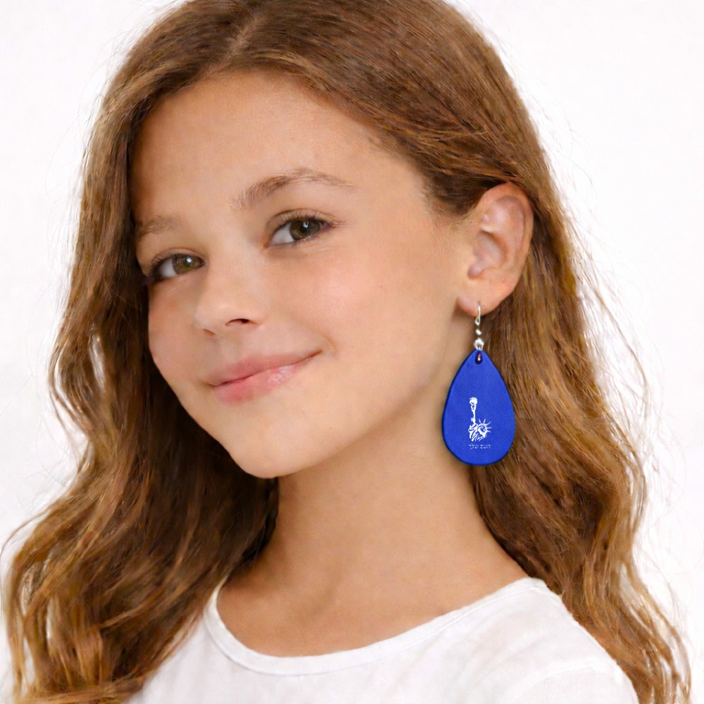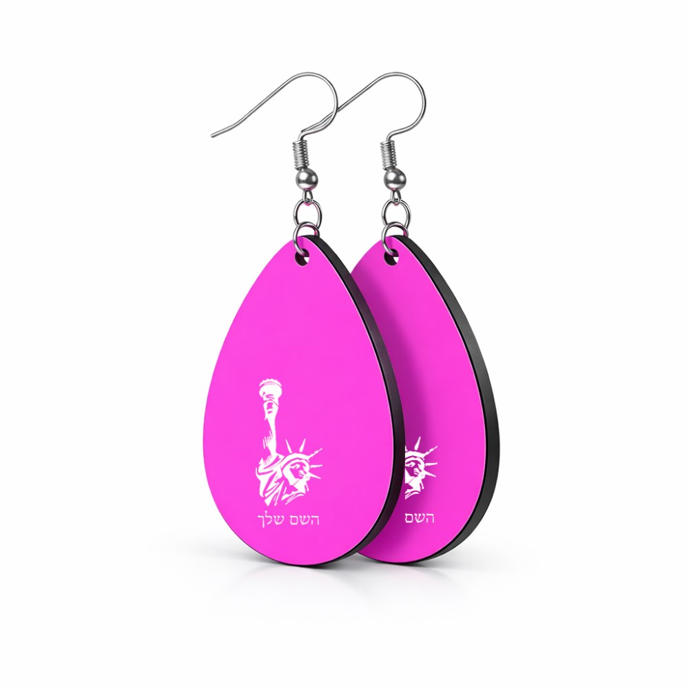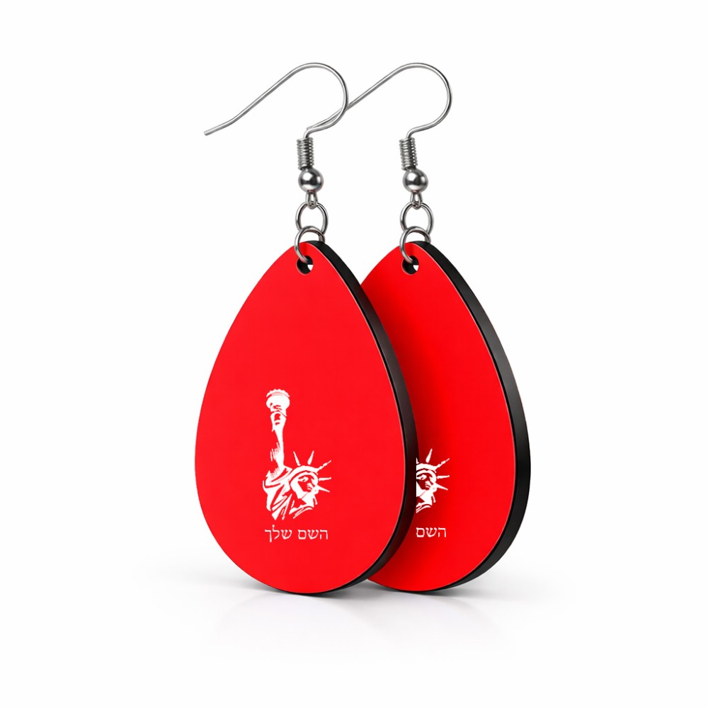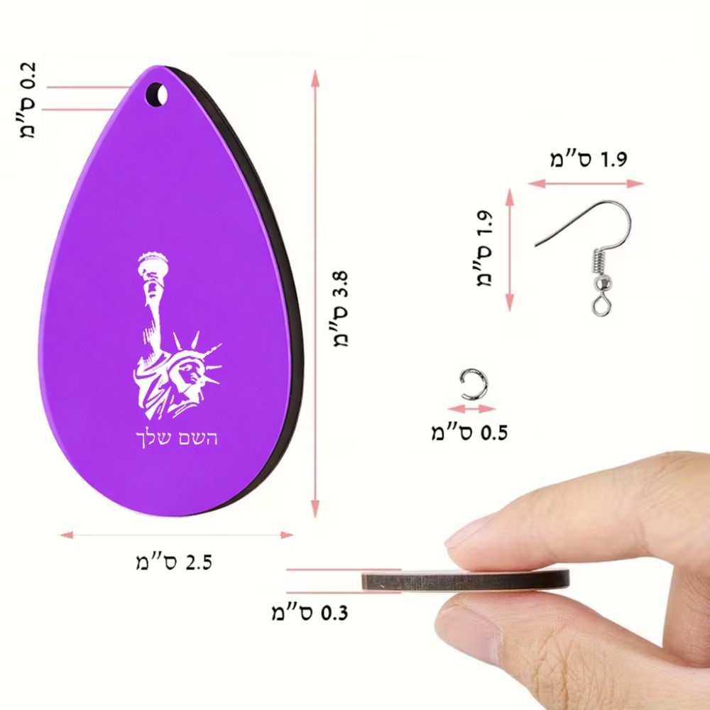 זוג עגילים בצורת טיפה בעיצוב אישי עם השם שלך בעיצוב פסל החירות גודל העגילים 2.5 × 3.8 ס"מ. את השם המבוקש ניתן לציין בהזמנה, אם לא צויין אנחנו ניצור קשר לבירור.