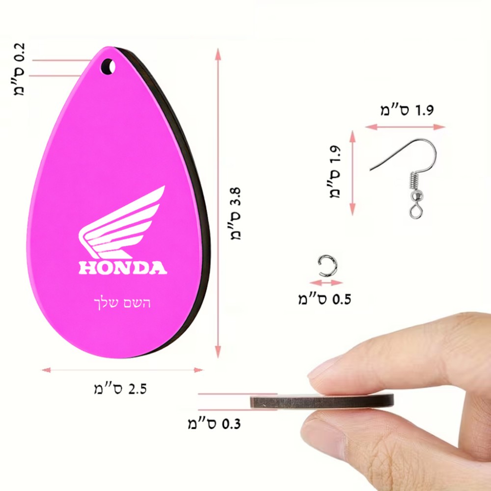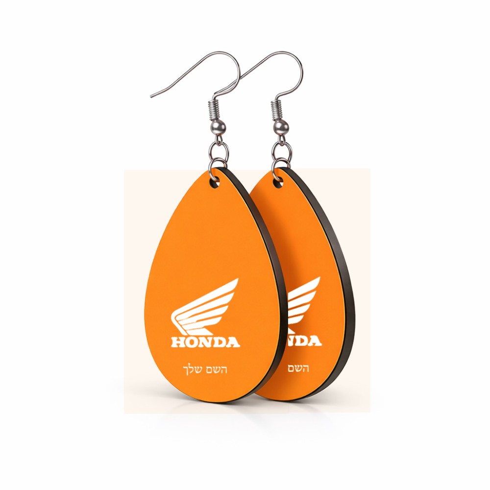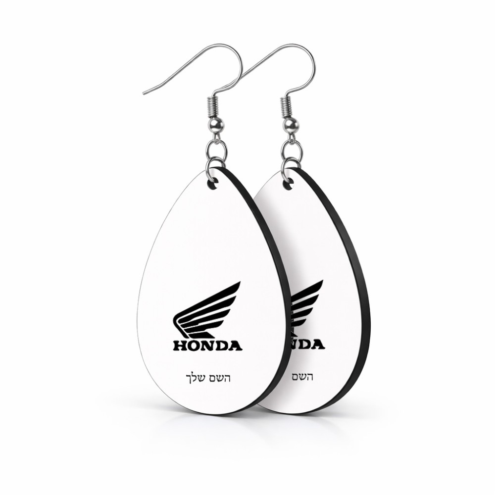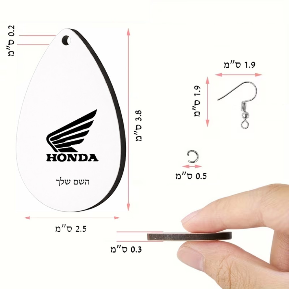 זוג עגילים בצורת טיפה בעיצוב אישי עם השם שלך בעיצוב הונדה גודל העגילים 2.5 × 3.8 ס"מ. את השם המבוקש ניתן לציין בהזמנה, אם לא צויין אנחנו ניצור קשר לבירור.