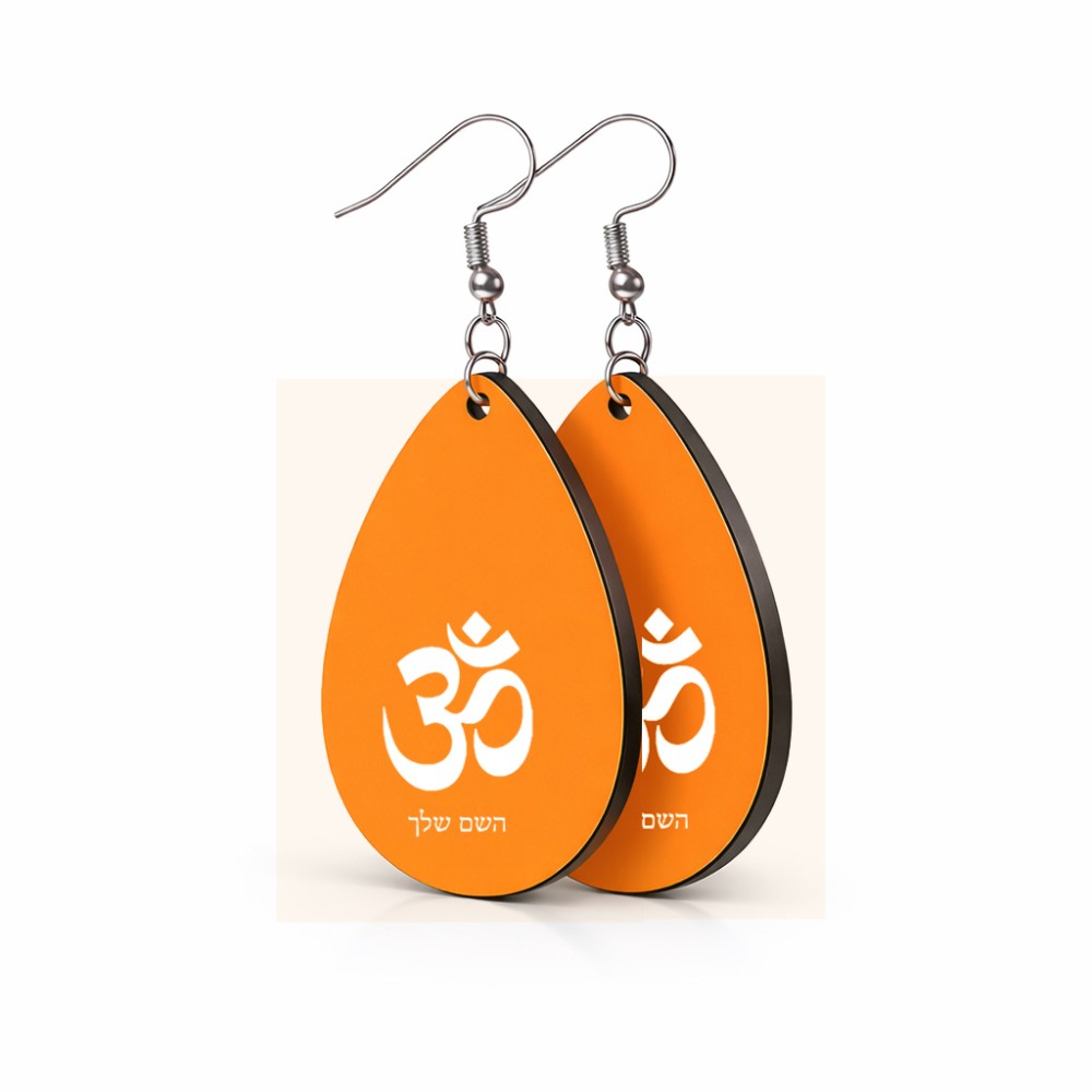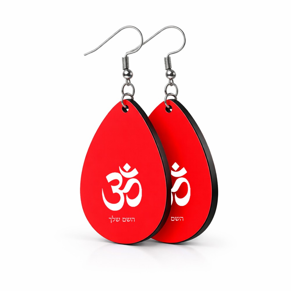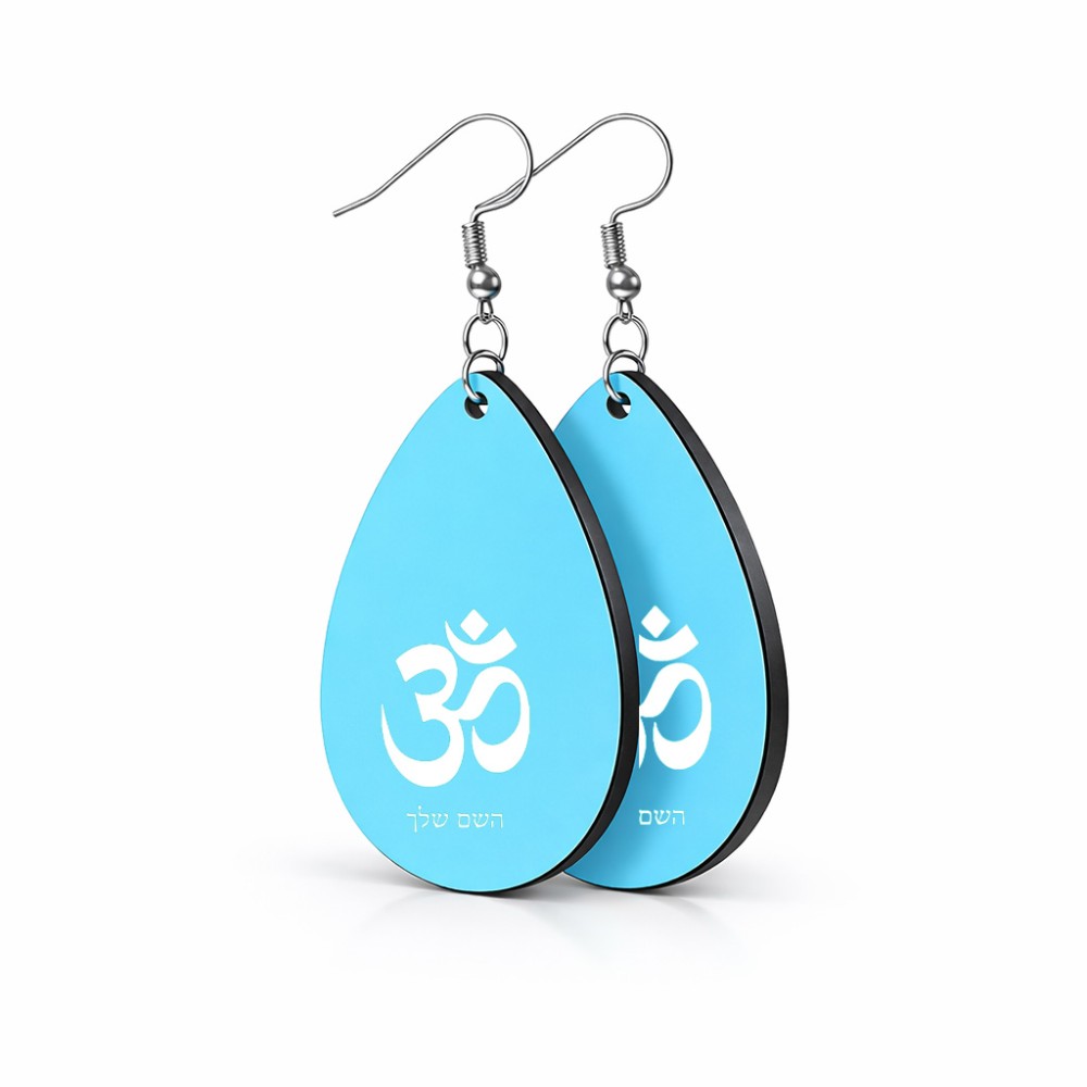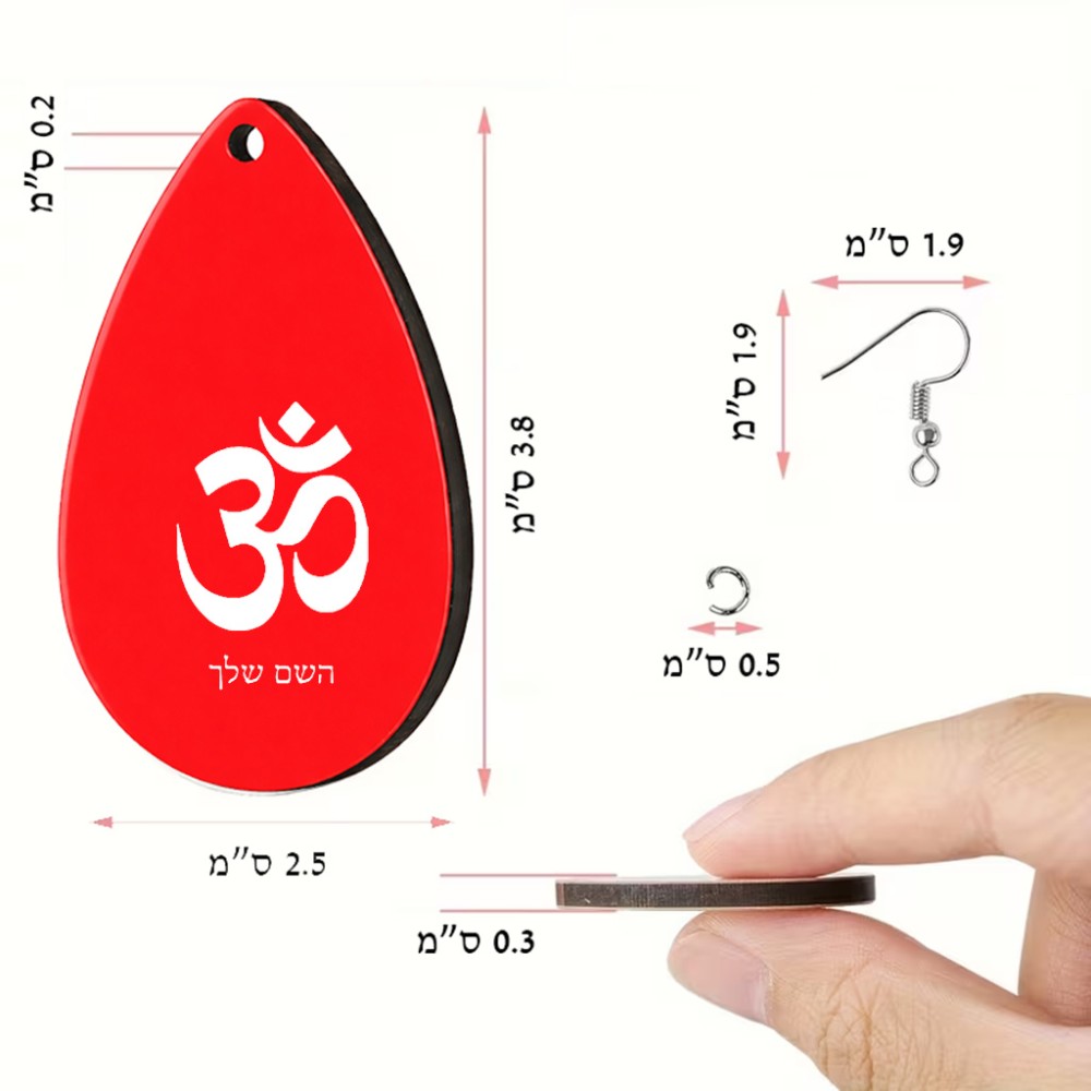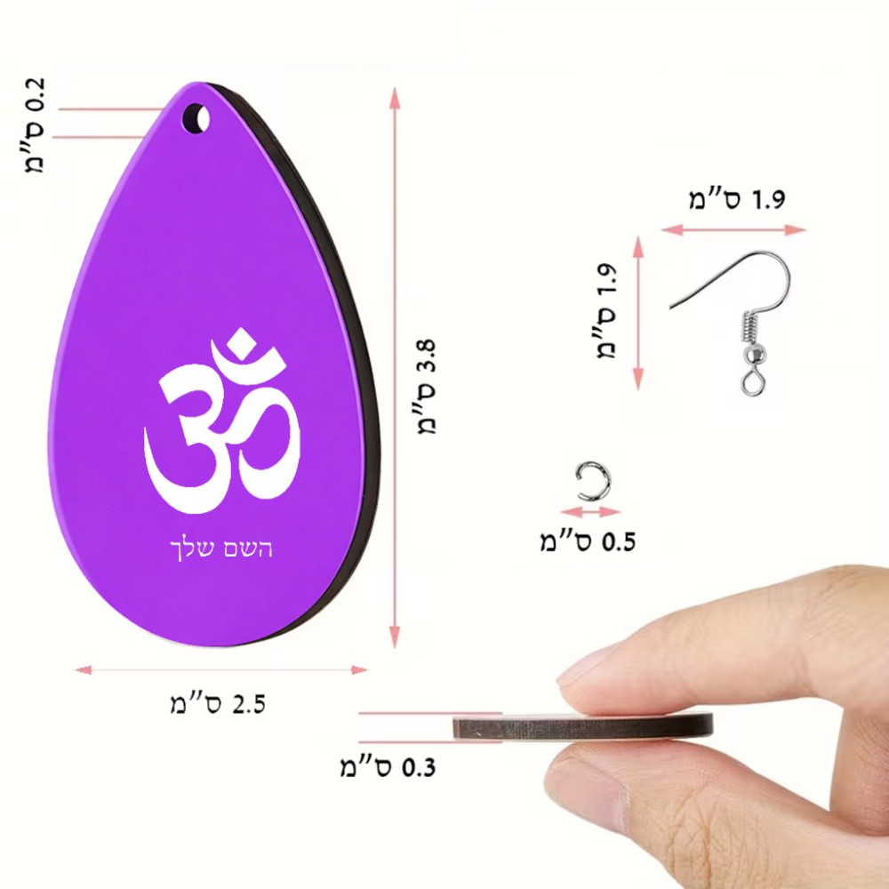 זוג עגילים בצורת טיפה בעיצוב אישי עם השם שלך בעיצוב סמל אום גודל העגילים 2.5 × 3.8 ס"מ. את השם המבוקש ניתן לציין בהזמנה, אם לא צויין אנחנו ניצור קשר לבירור.