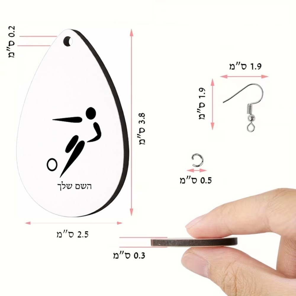 זוג עגילים בצורת טיפה בעיצוב אישי עם השם שלך בעיצוב כדורגל אולימפי גודל העגילים 2.5 × 3.8 ס"מ