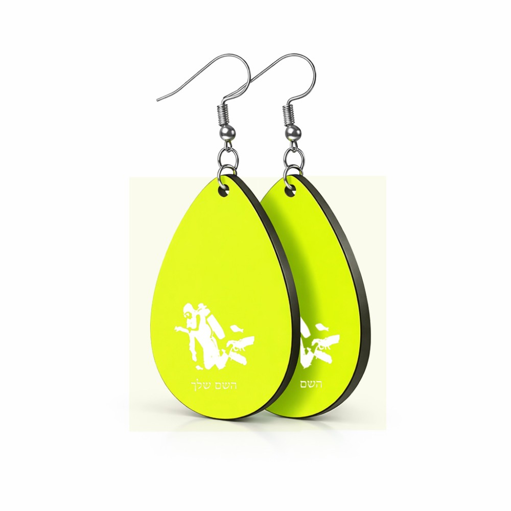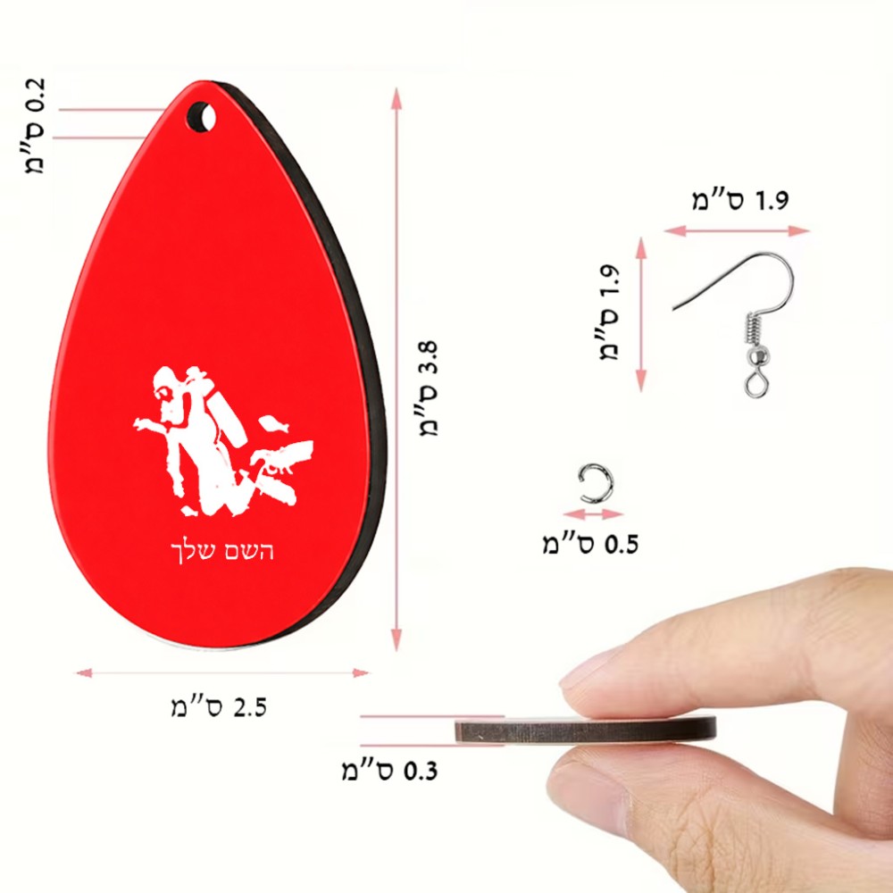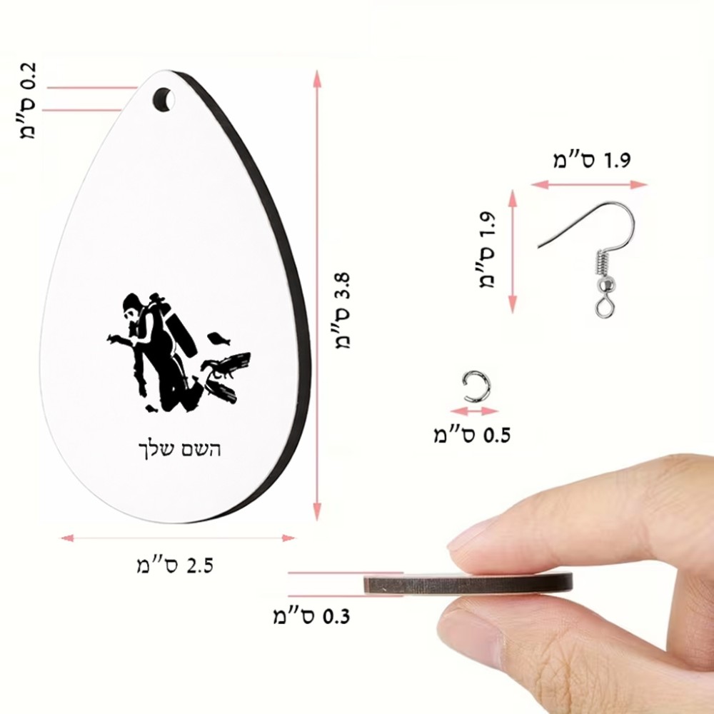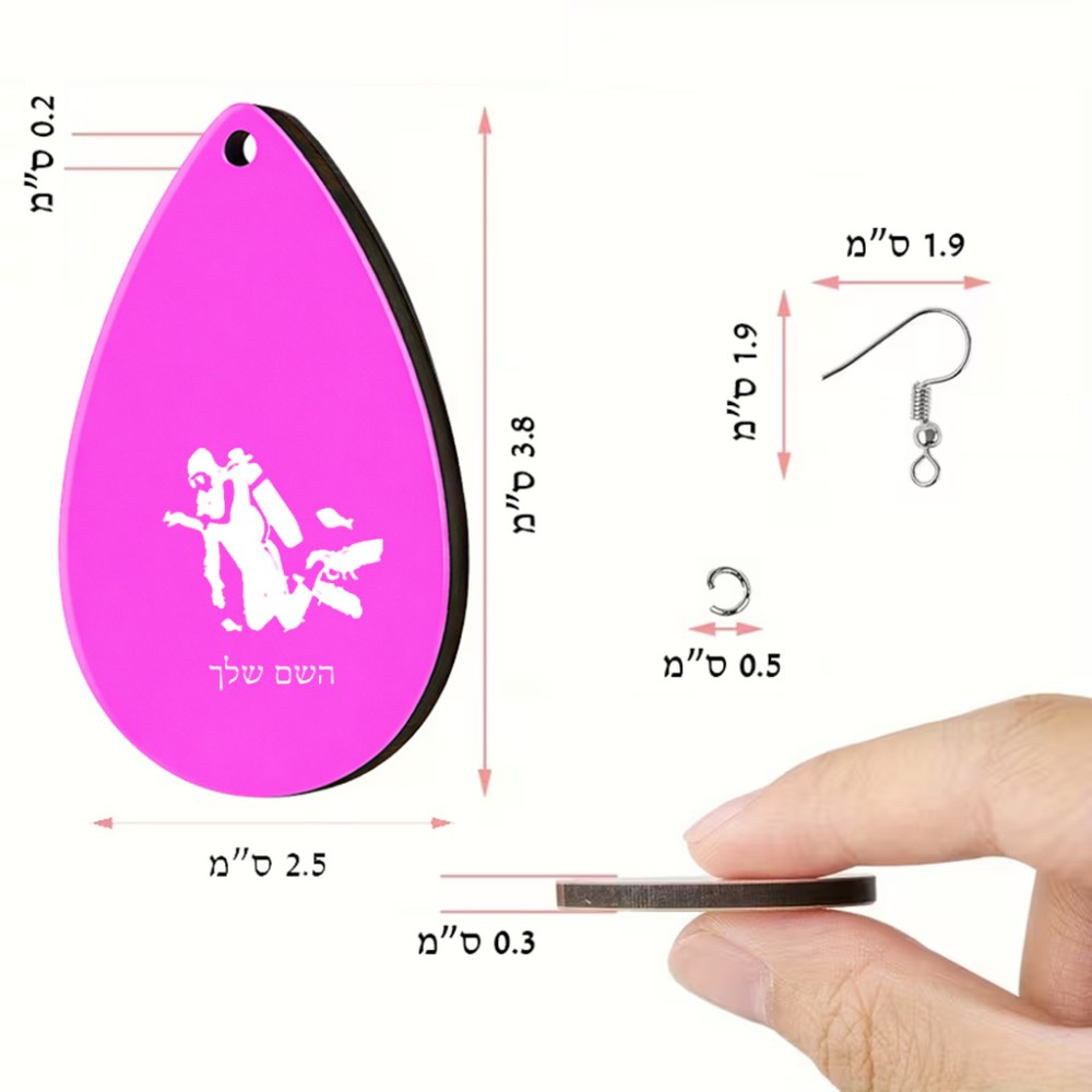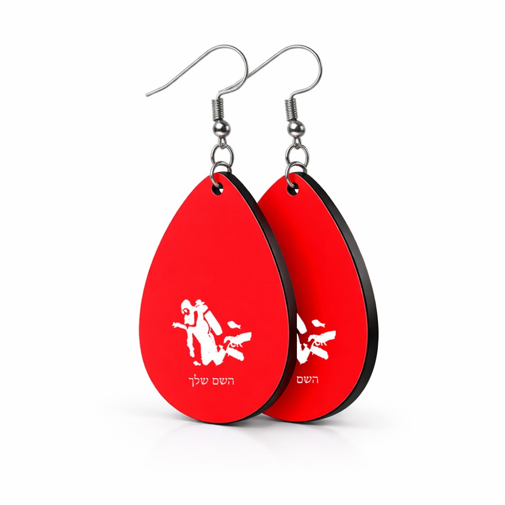 זוג עגילים בצורת טיפה בעיצוב אישי עם השם שלך בעיצוב צוללן גודל העגילים 2.5 × 3.8 ס"מ. את השם המבוקש ניתן לציין בהזמנה, אם לא צויין אנחנו ניצור קשר לבירור.