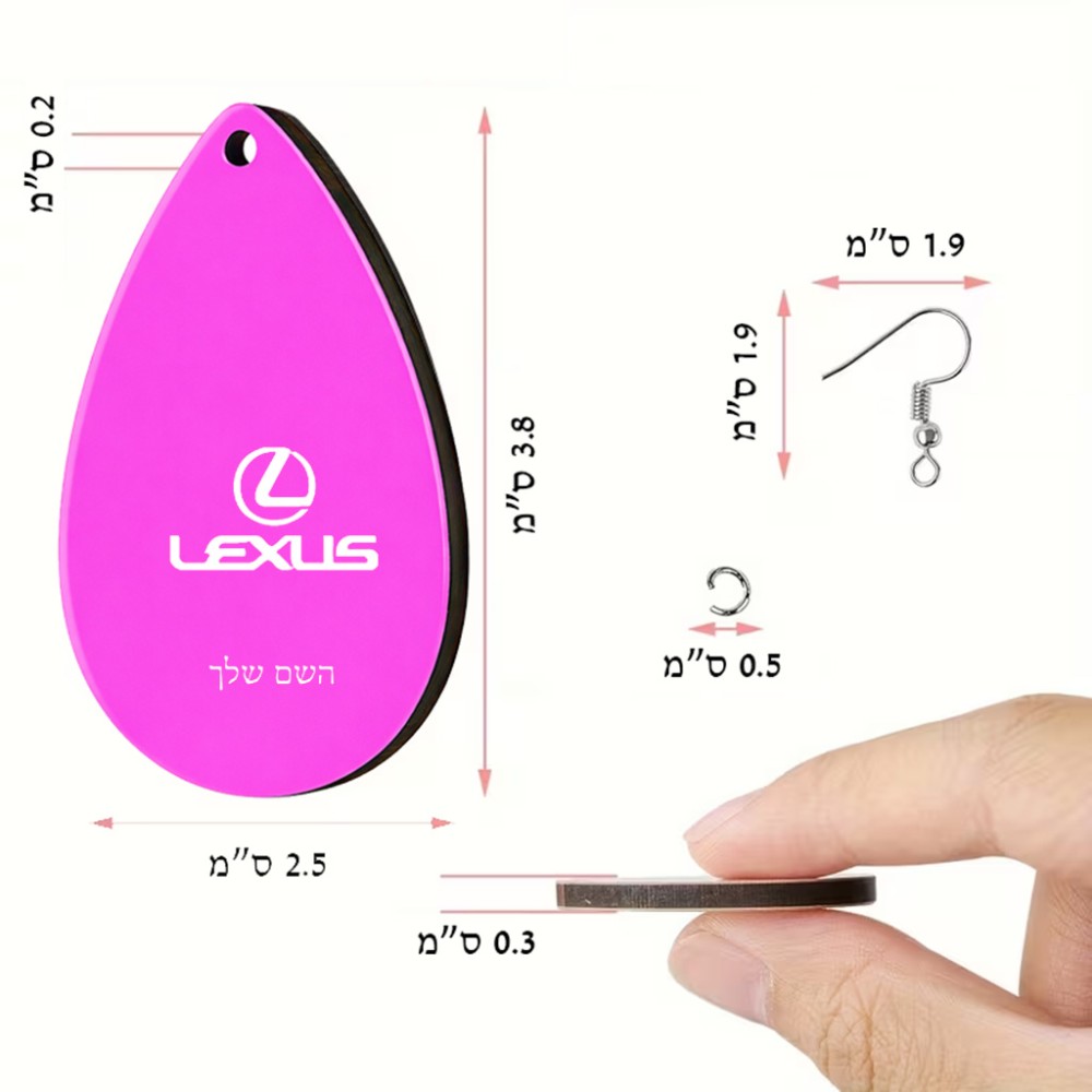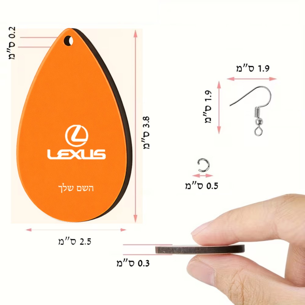 זוג עגילים בצורת טיפה בעיצוב אישי עם השם שלך בעיצוב לקסוס גודל העגילים 2.5 × 3.8 ס"מ