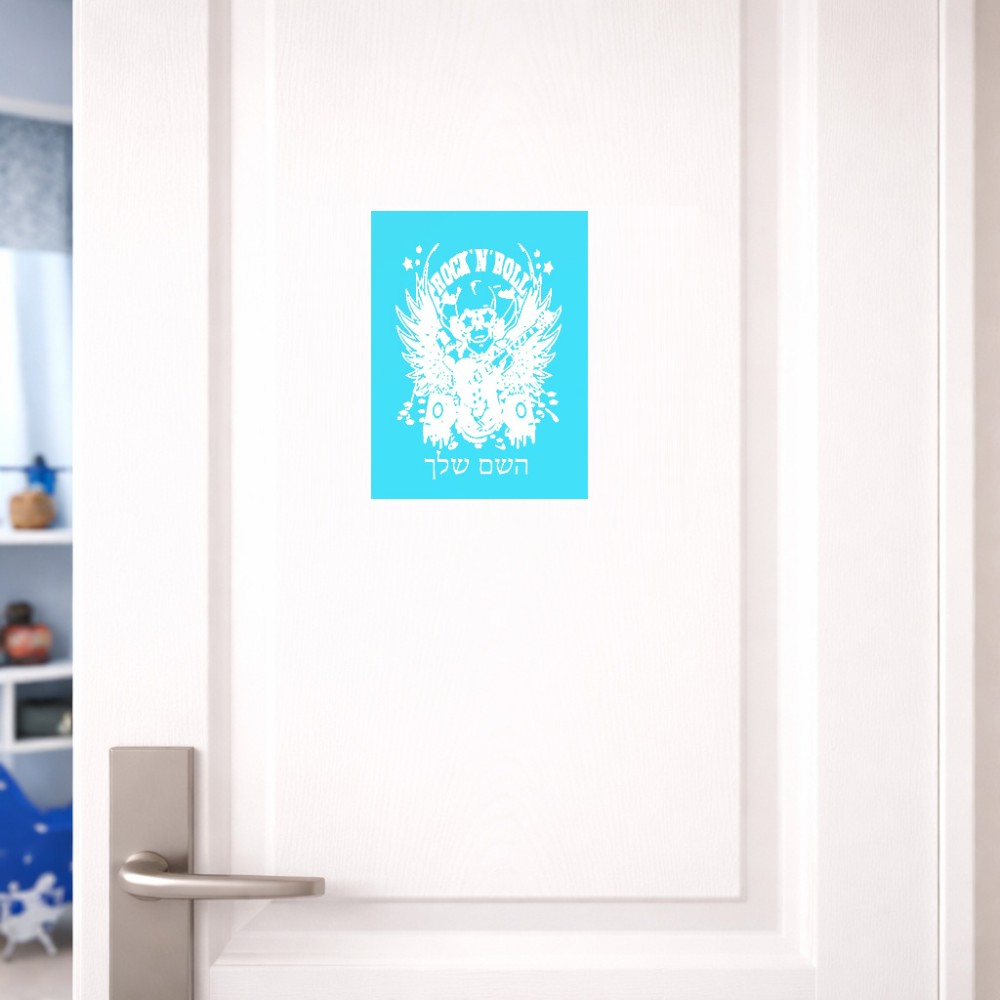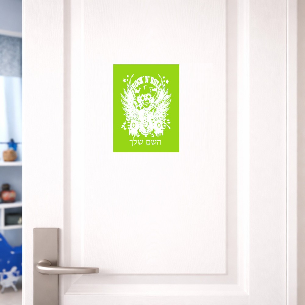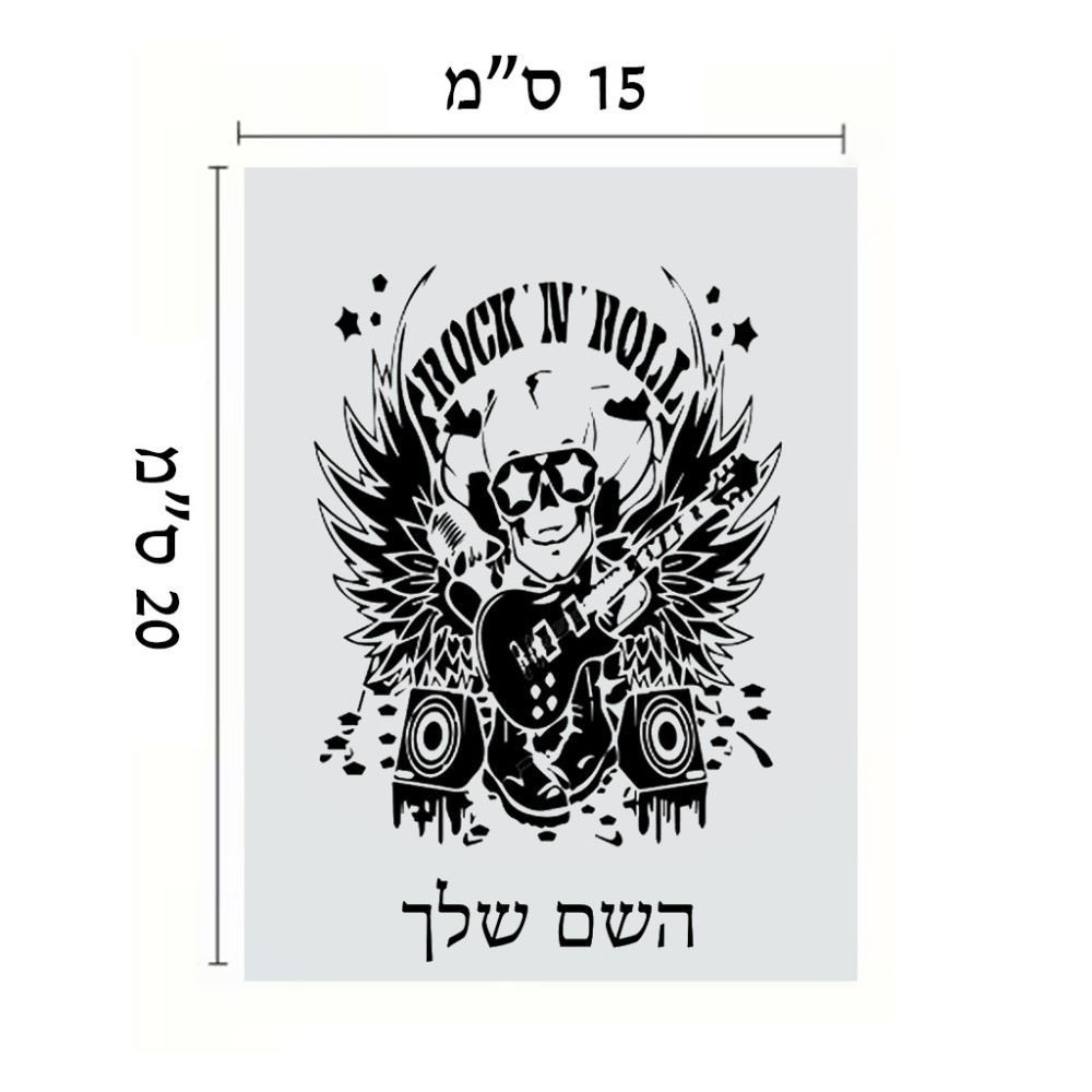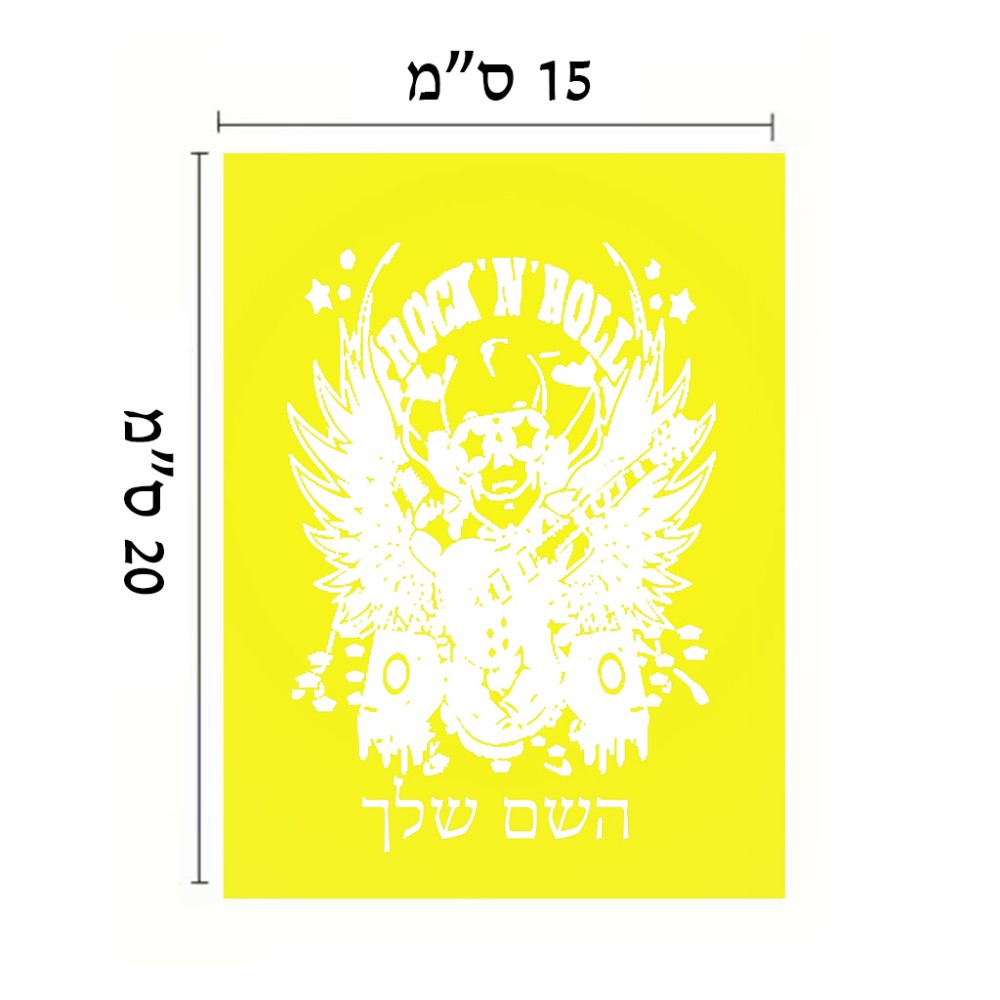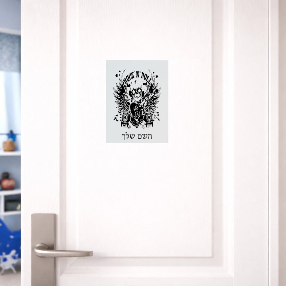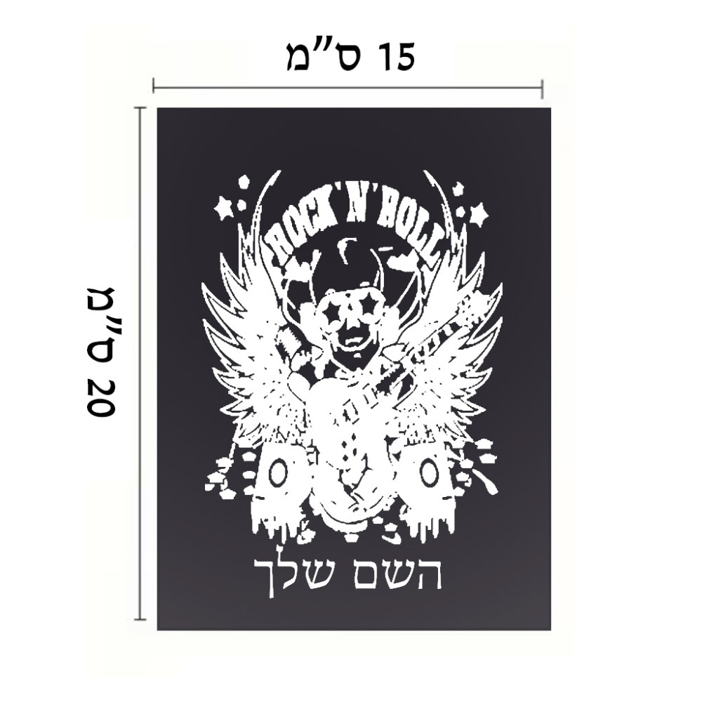 שלט אלומיניום קטן לחדר בעיצוב אישי עם השם שלך בעיצוב רוקנרול גודל השלט 15 × 20 ס"מ. את השם המבוקש ניתן לציין בהזמנה, אם לא צויין אנחנו ניצור קשר לבירור.