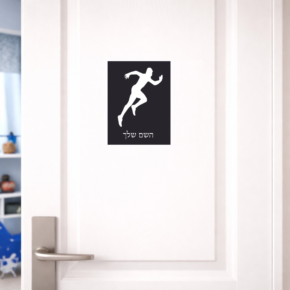 שלט אלומיניום קטן לחדר בעיצוב אישי עם השם שלך בעיצוב רץ גודל השלט 15 × 20 ס"מ. את השם המבוקש ניתן לציין בהזמנה, אם לא צויין אנחנו ניצור קשר לבירור.