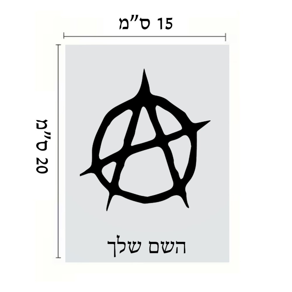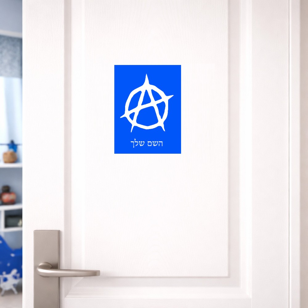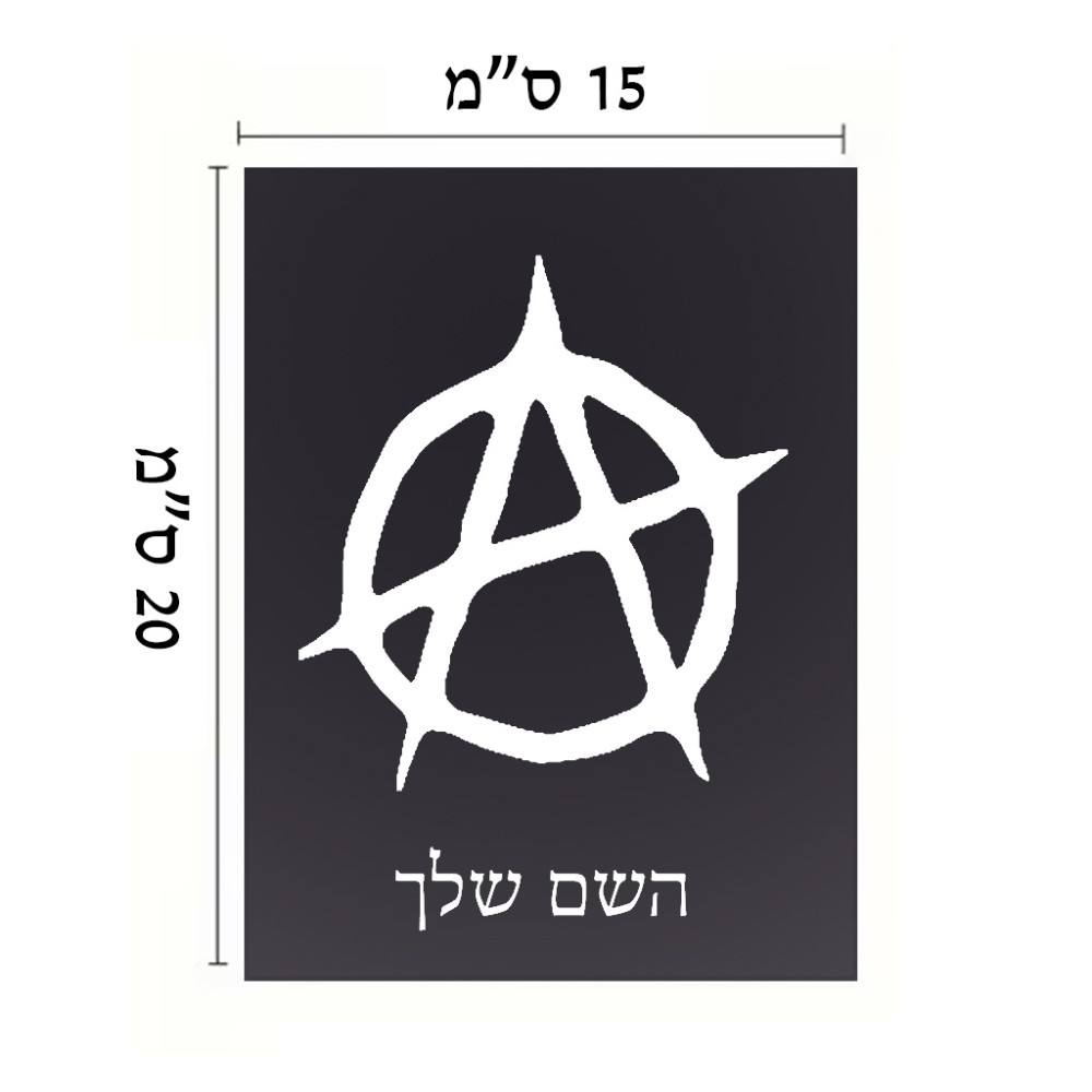 שלט אלומיניום קטן לחדר בעיצוב אישי עם השם שלך בעיצוב אנרכיה גודל השלט 15 × 20 ס"מ. את השם המבוקש ניתן לציין בהזמנה, אם לא צויין אנחנו ניצור קשר לבירור.