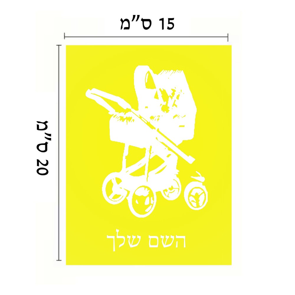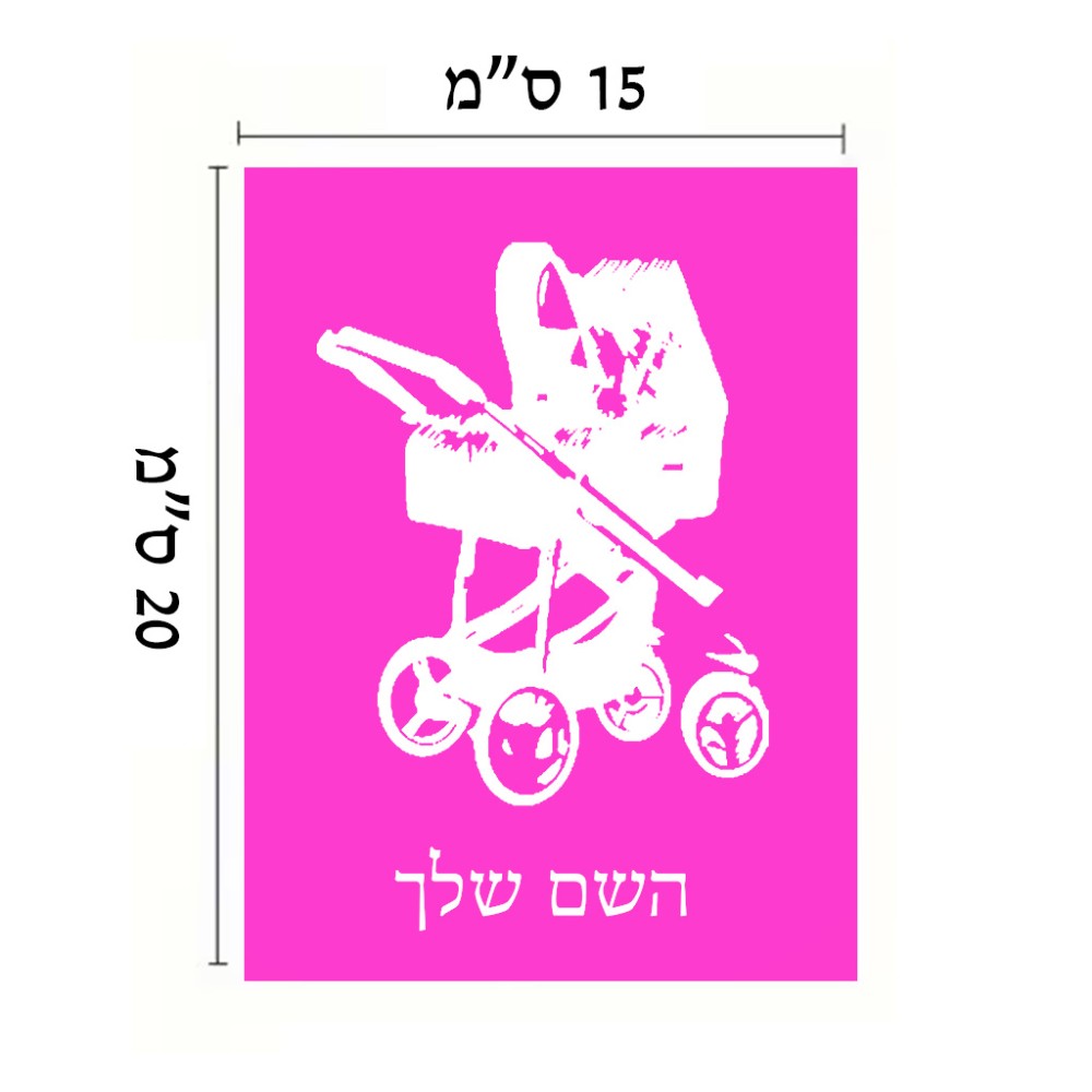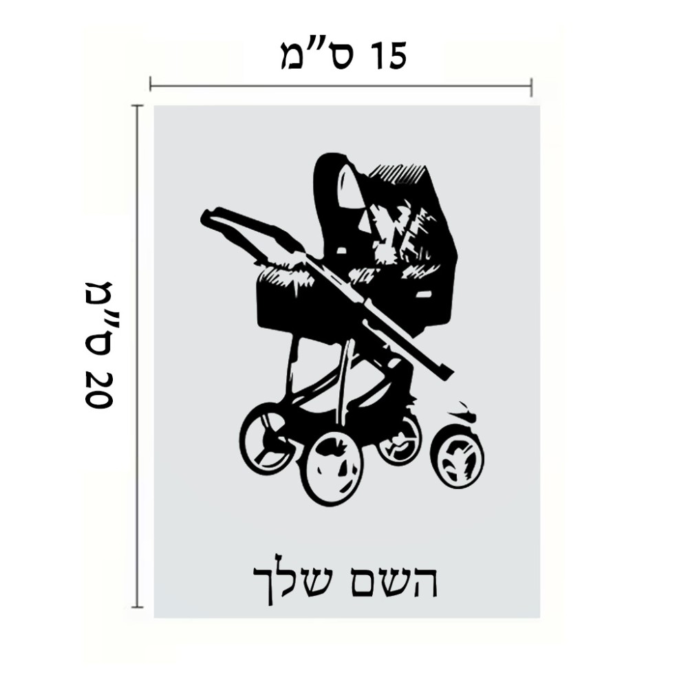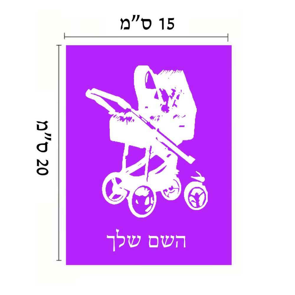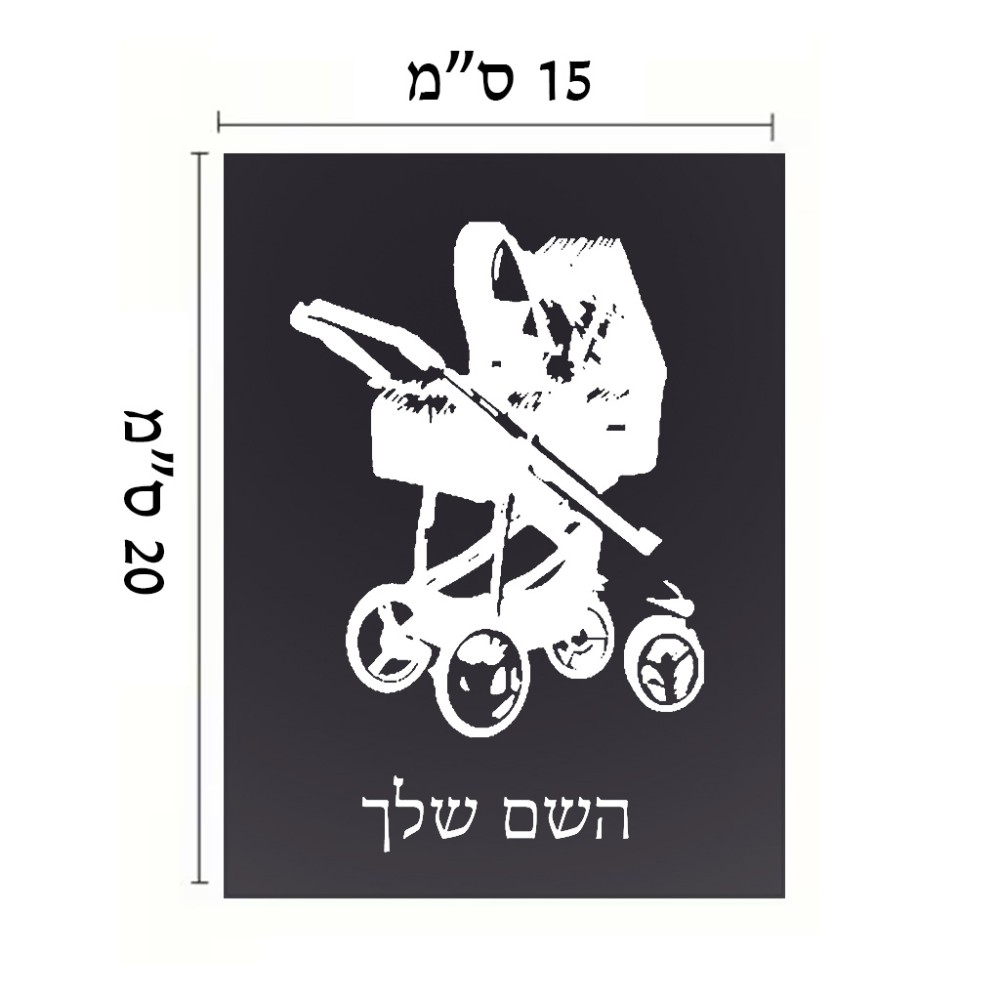 שלט אלומיניום קטן לחדר בעיצוב אישי עם השם שלך בעיצוב עגלת תינוק גודל השלט 15 × 20 ס"מ. את השם המבוקש ניתן לציין בהזמנה, אם לא צויין אנחנו ניצור קשר לבירור.