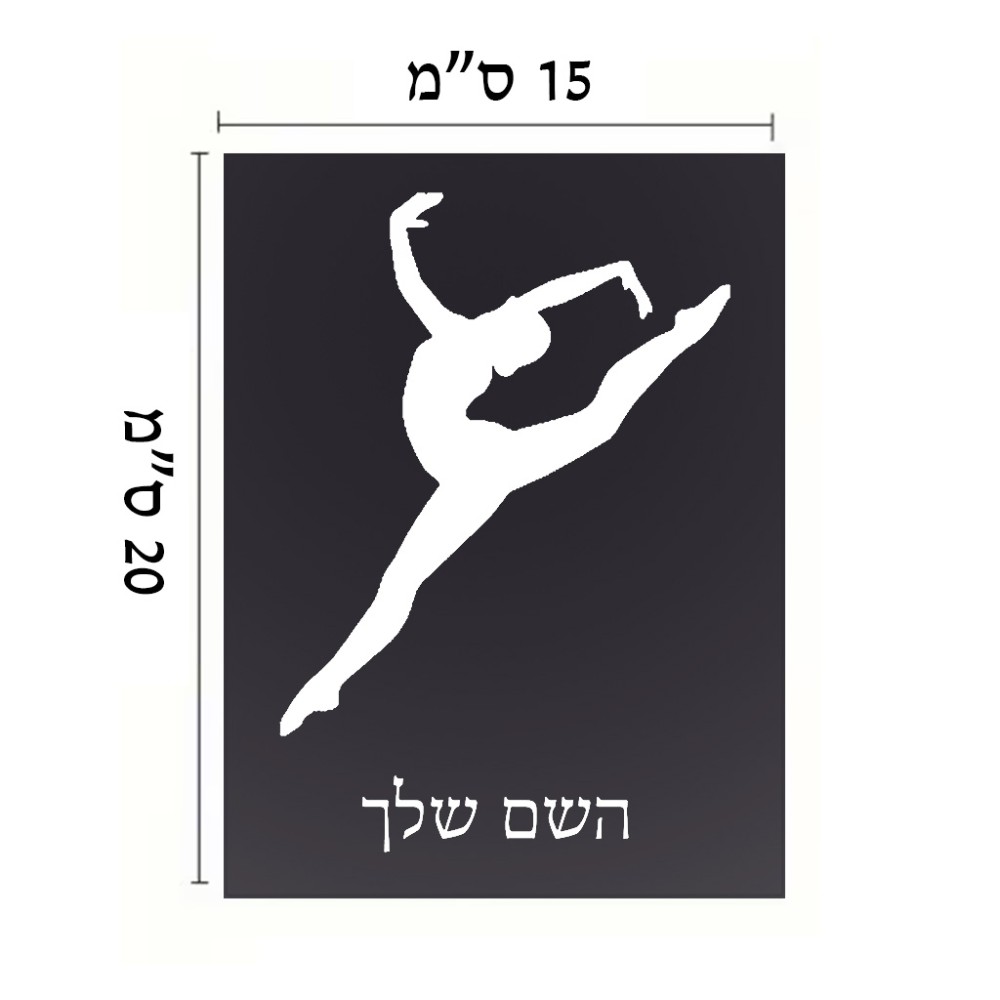 שלט אלומיניום קטן לחדר בעיצוב אישי עם השם שלך בעיצוב בלט גודל השלט 15 × 20 ס"מ. את השם המבוקש ניתן לציין בהזמנה, אם לא צויין אנחנו ניצור קשר לבירור.