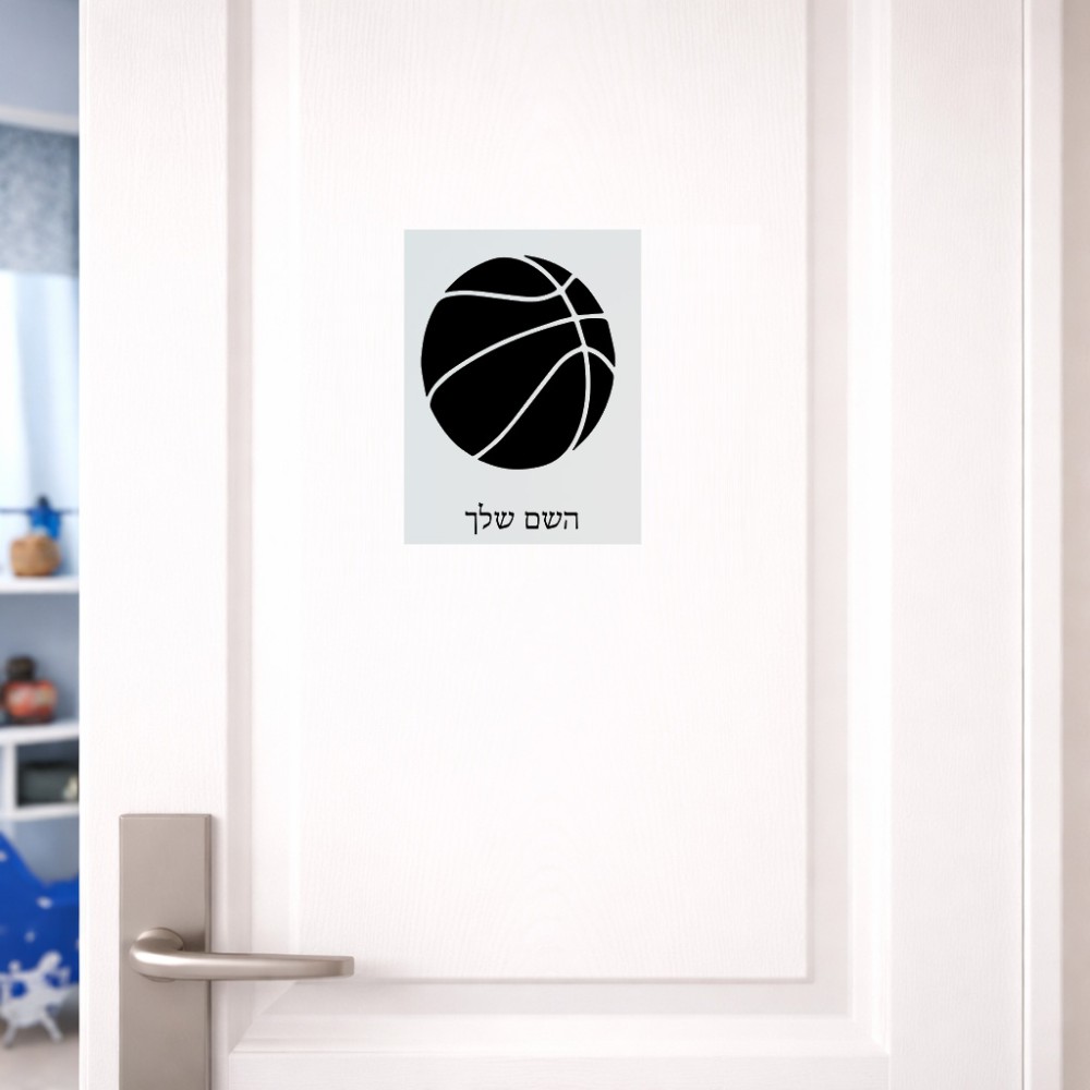 שלט אלומיניום קטן לחדר בעיצוב אישי עם השם שלך בעיצוב כדורסל גודל השלט 15 × 20 ס"מ. את השם המבוקש ניתן לציין בהזמנה, אם לא צויין אנחנו ניצור קשר לבירור.