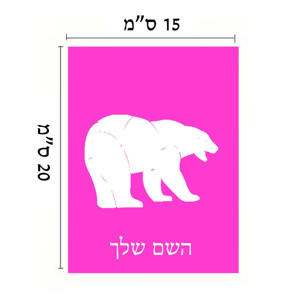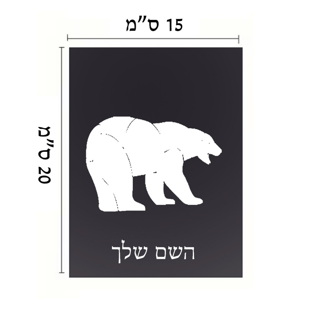 שלט אלומיניום קטן לחדר בעיצוב אישי עם השם שלך בעיצוב דוב גודל השלט 15 × 20 ס"מ. את השם המבוקש ניתן לציין בהזמנה, אם לא צויין אנחנו ניצור קשר לבירור.
