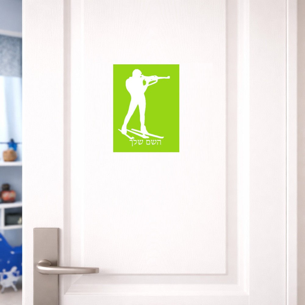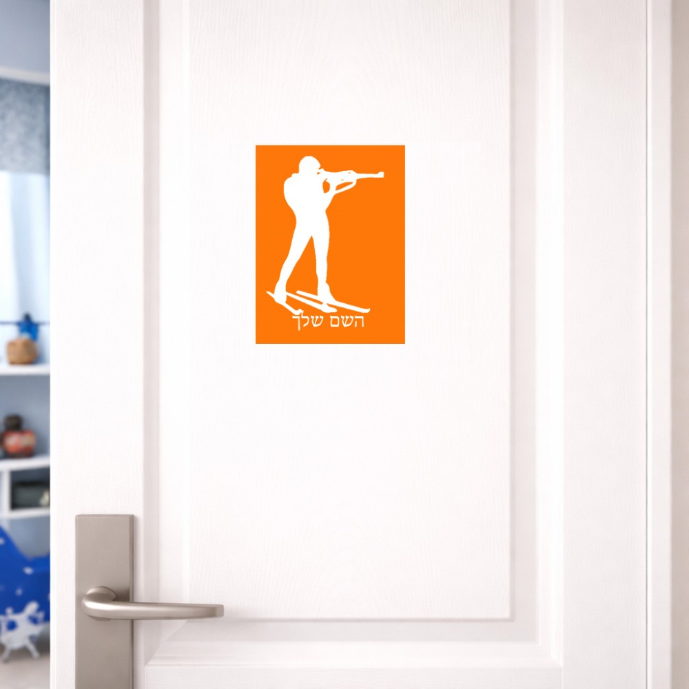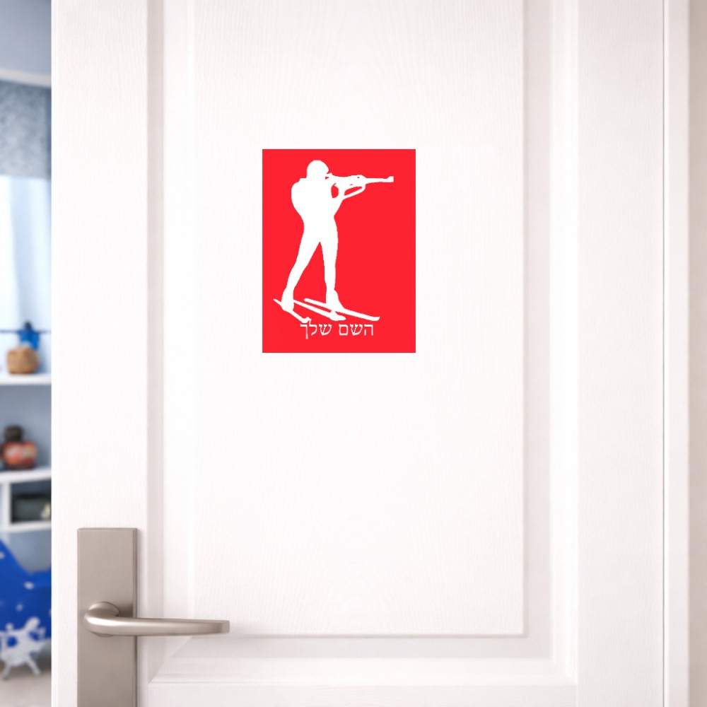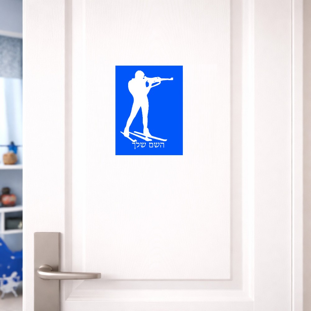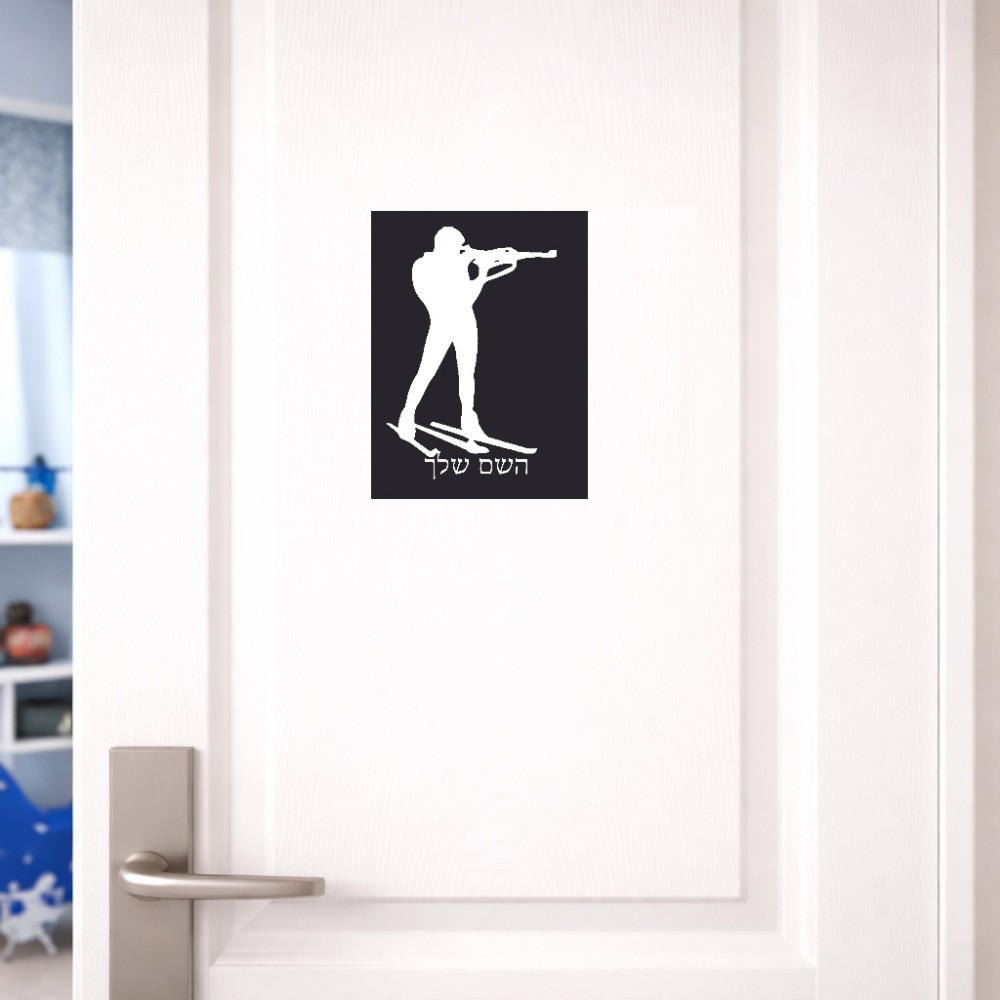 שלט אלומיניום קטן לחדר בעיצוב אישי עם השם שלך בעיצוב ביאתלון גודל השלט 15 × 20 ס"מ. את השם המבוקש ניתן לציין בהזמנה, אם לא צויין אנחנו ניצור קשר לבירור.
