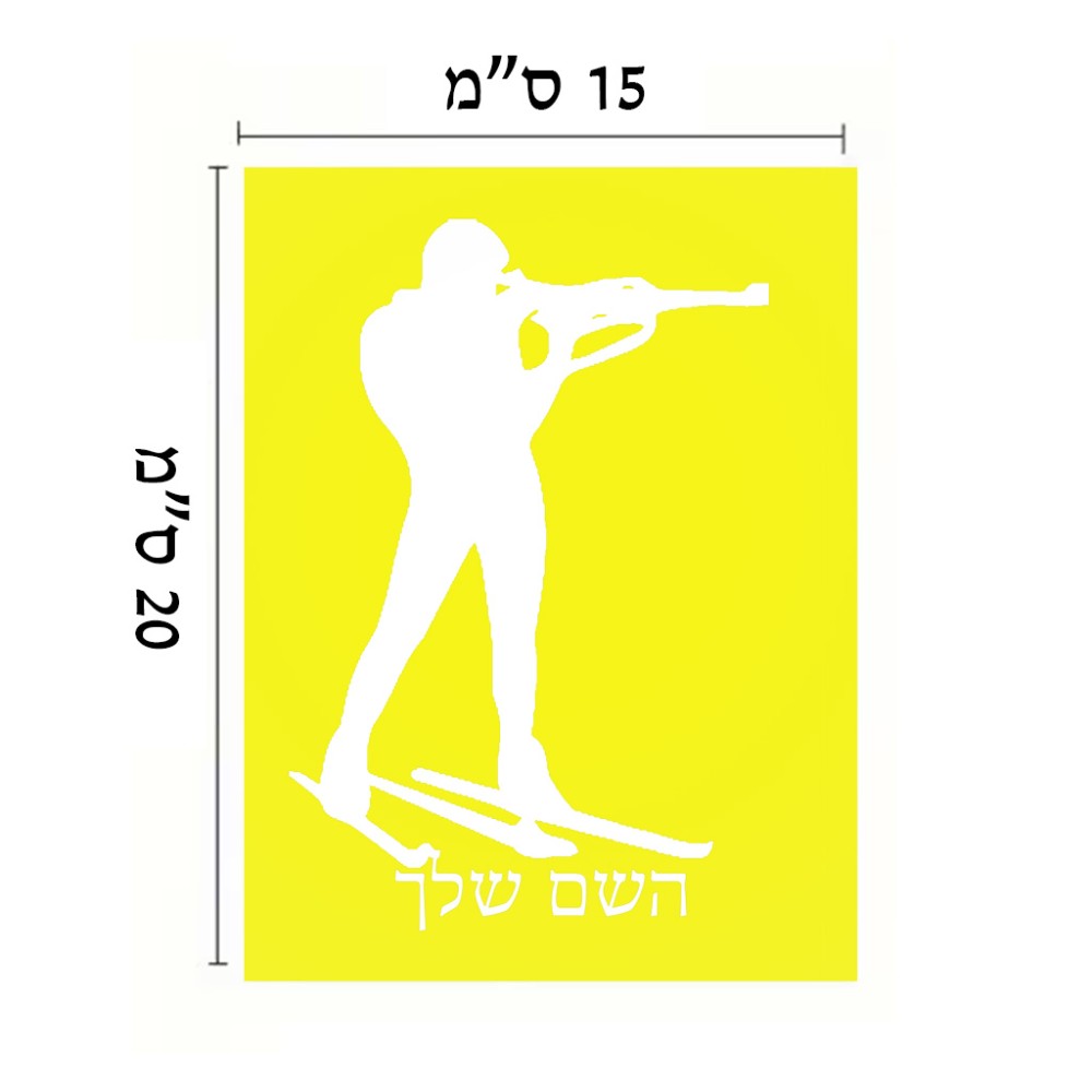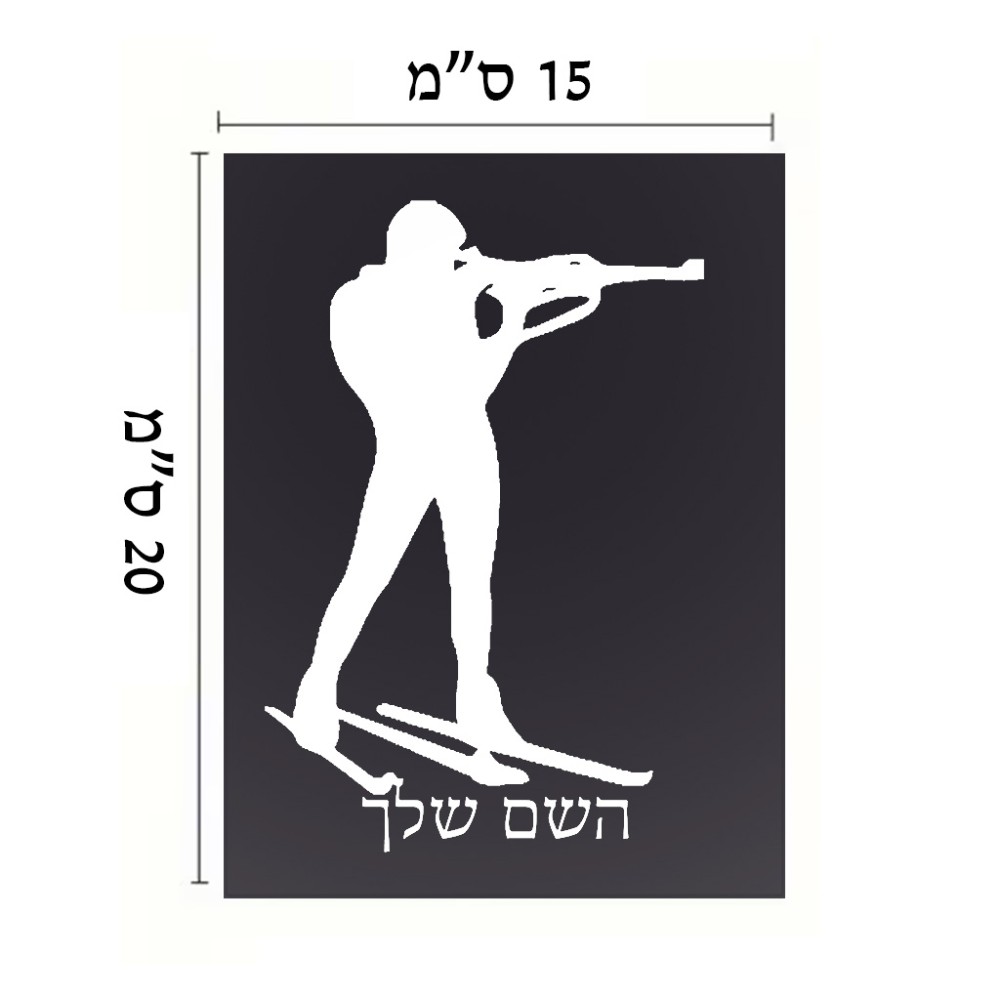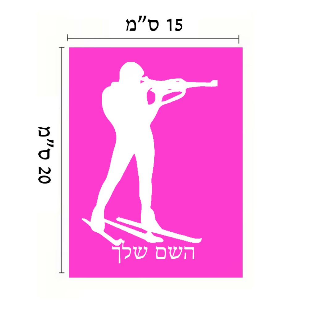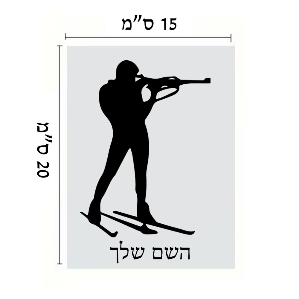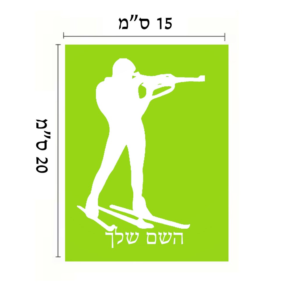 שלט אלומיניום קטן לחדר בעיצוב אישי עם השם שלך בעיצוב ביאתלון גודל השלט 15 × 20 ס"מ. את השם המבוקש ניתן לציין בהזמנה, אם לא צויין אנחנו ניצור קשר לבירור.