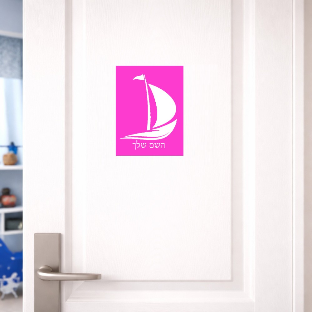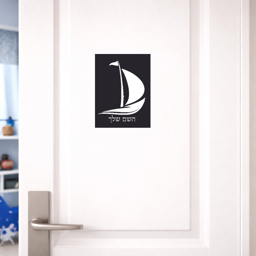 שלט אלומיניום קטן לחדר בעיצוב אישי עם השם שלך בעיצוב סירה גודל השלט 15 × 20 ס"מ. את השם המבוקש ניתן לציין בהזמנה, אם לא צויין אנחנו ניצור קשר לבירור.