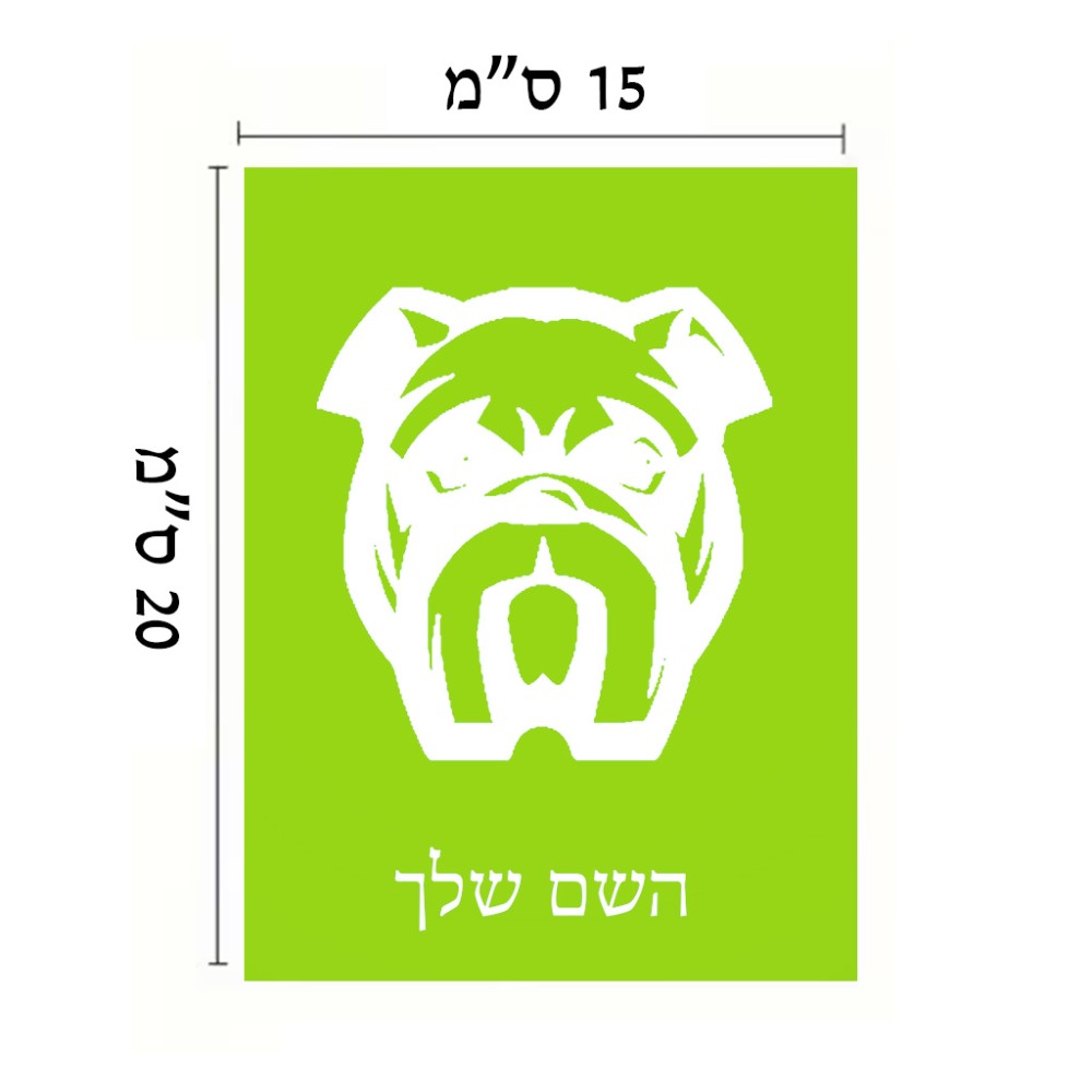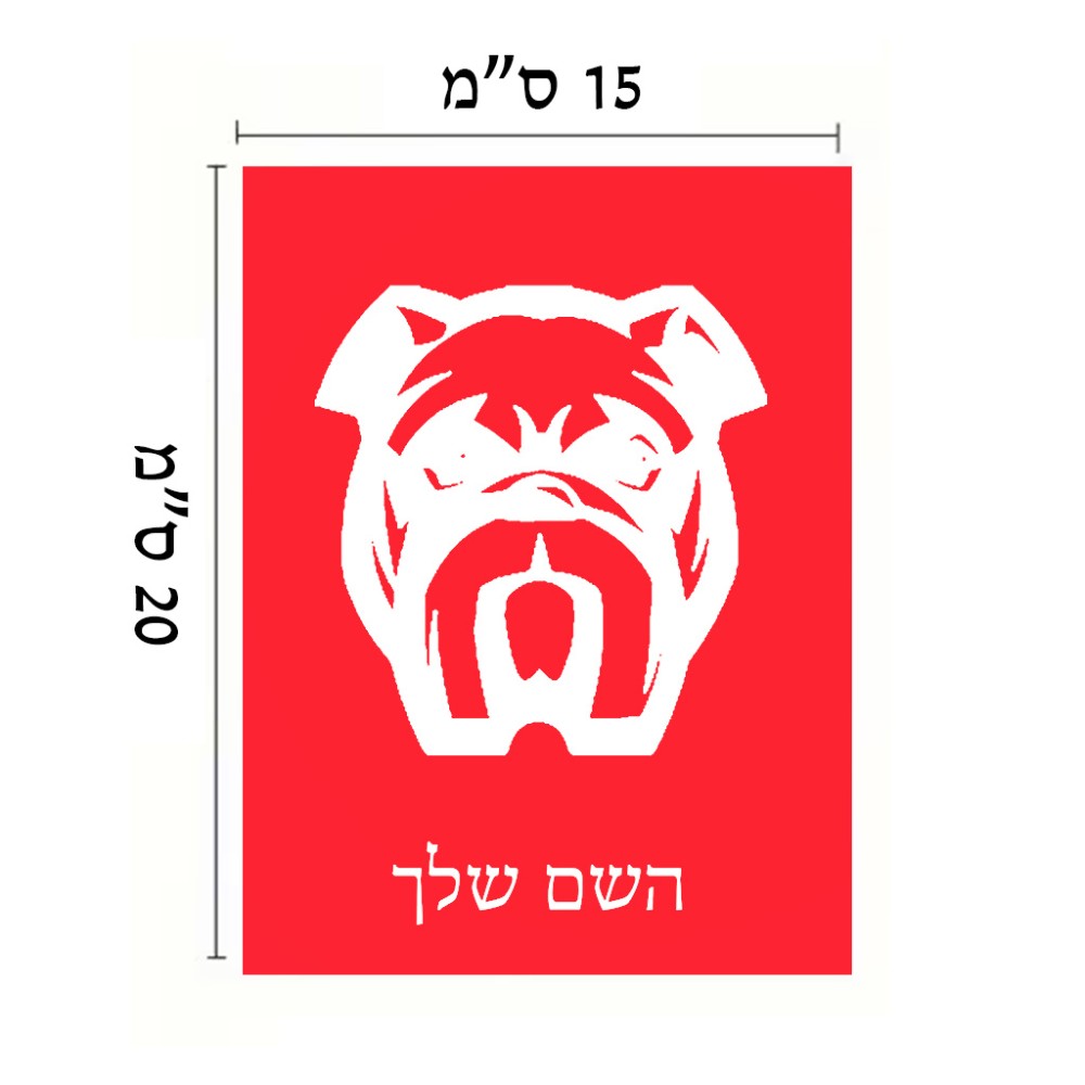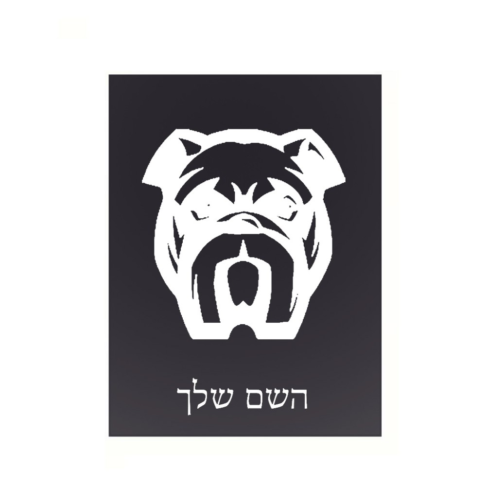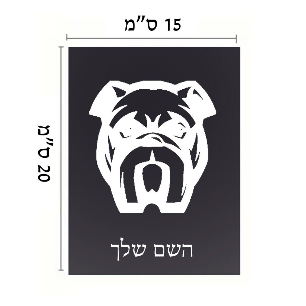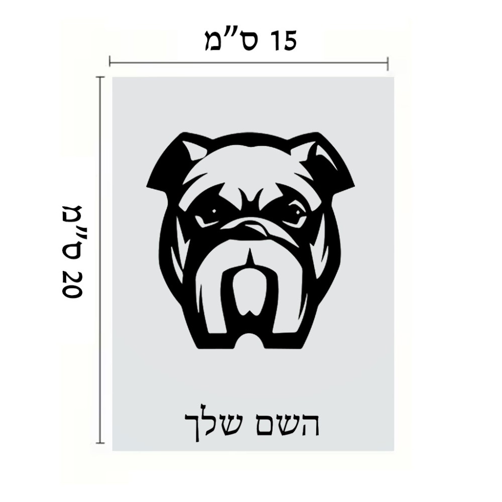שלט אלומיניום קטן לחדר בעיצוב אישי עם השם שלך בעיצוב פרצוף בולדוג גודל השלט 15 × 20 ס"מ. את השם המבוקש ניתן לציין בהזמנה, אם לא צויין אנחנו ניצור קשר לבירור.