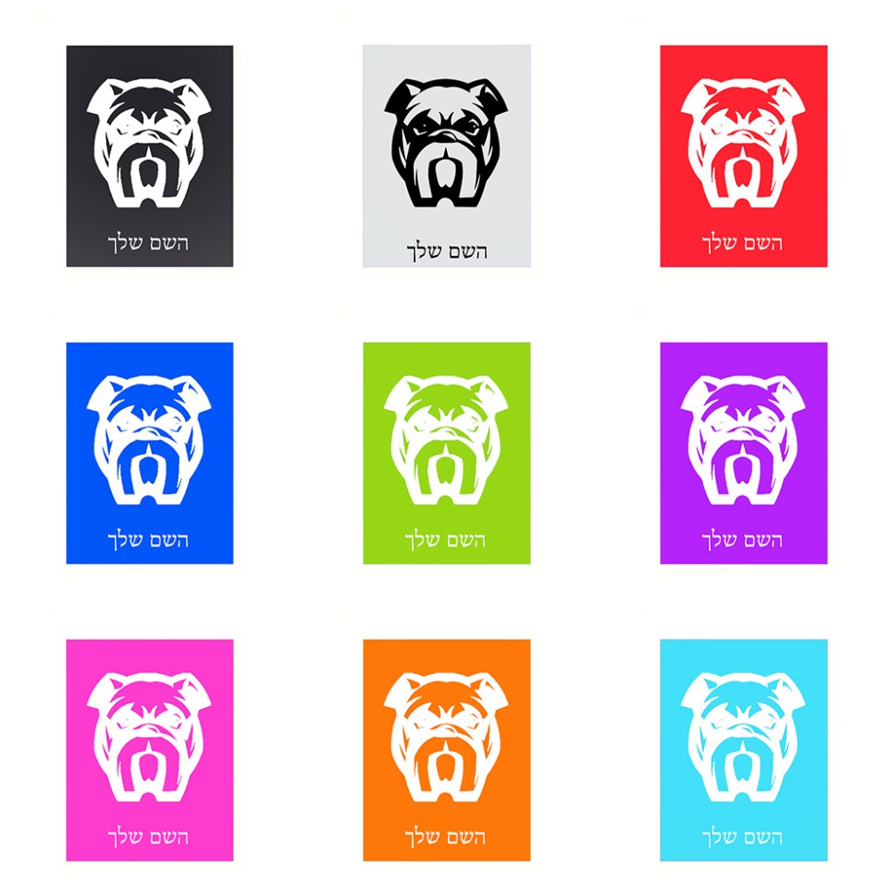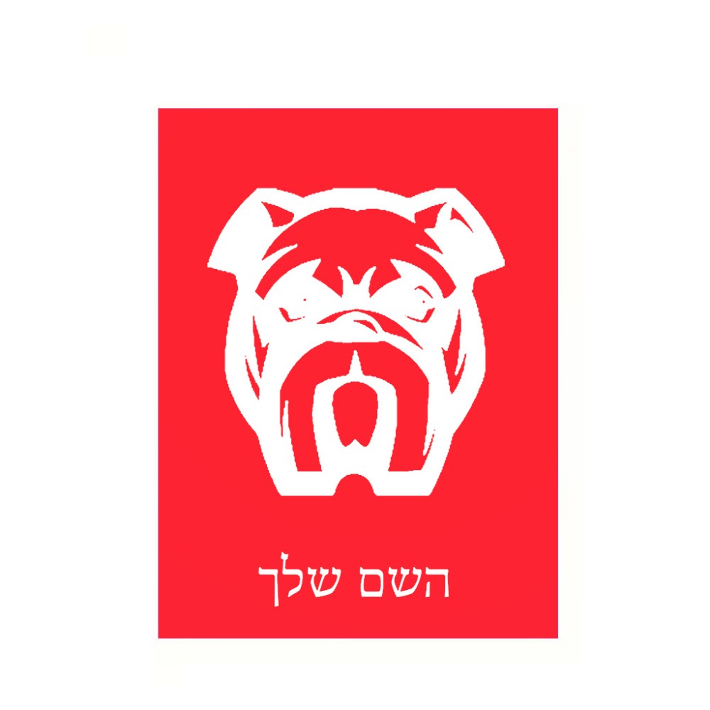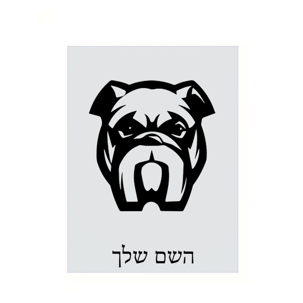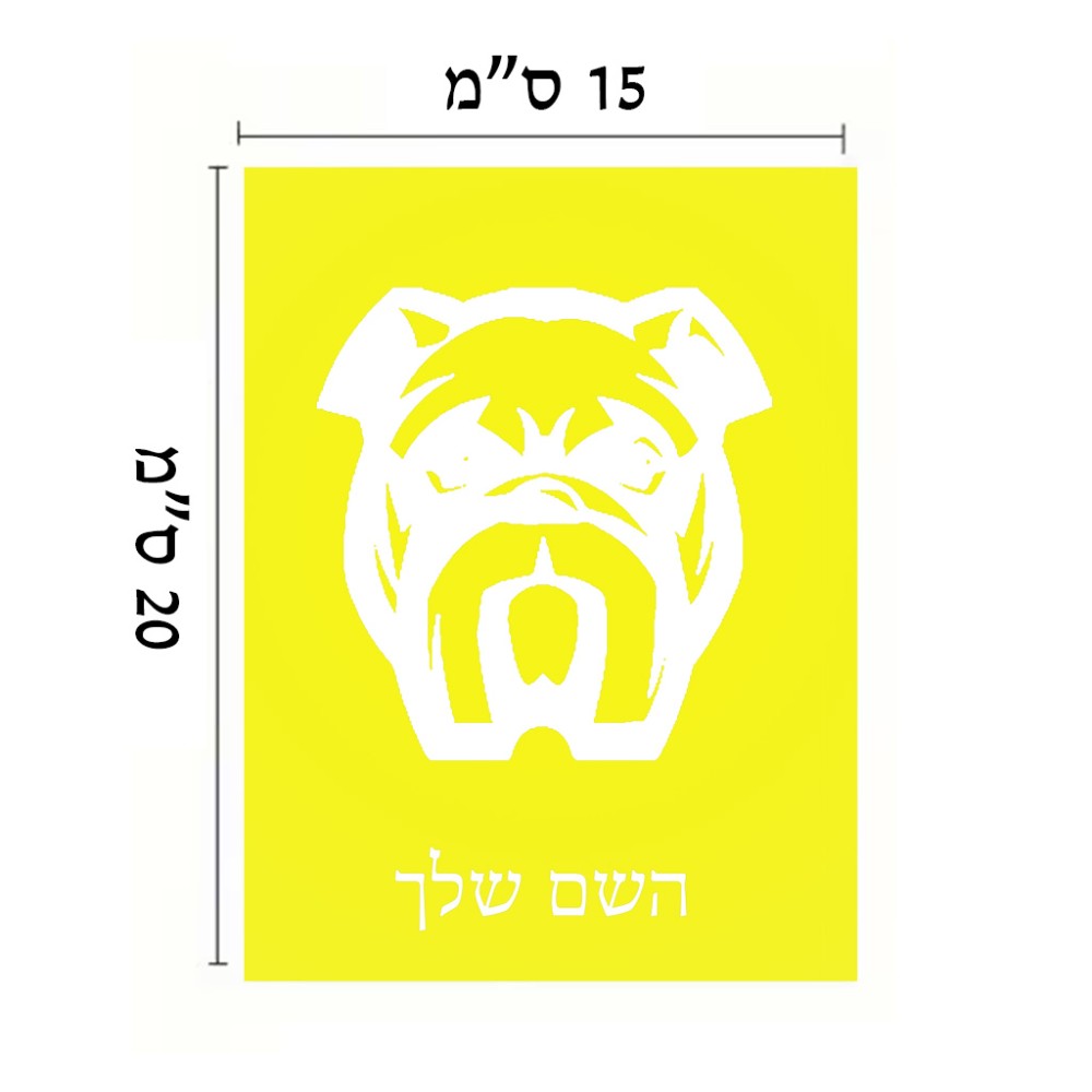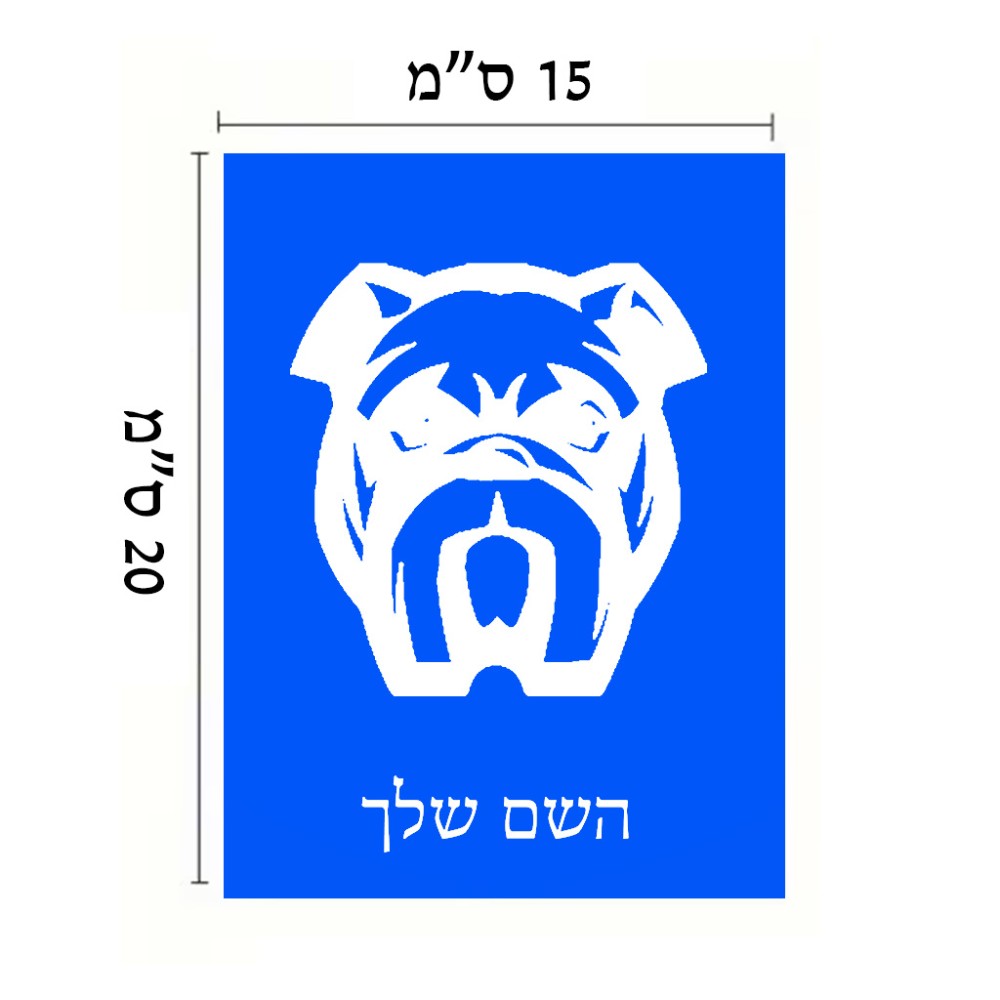 שלט אלומיניום קטן לחדר בעיצוב אישי עם השם שלך בעיצוב פרצוף בולדוג גודל השלט 15 × 20 ס"מ. את השם המבוקש ניתן לציין בהזמנה, אם לא צויין אנחנו ניצור קשר לבירור.