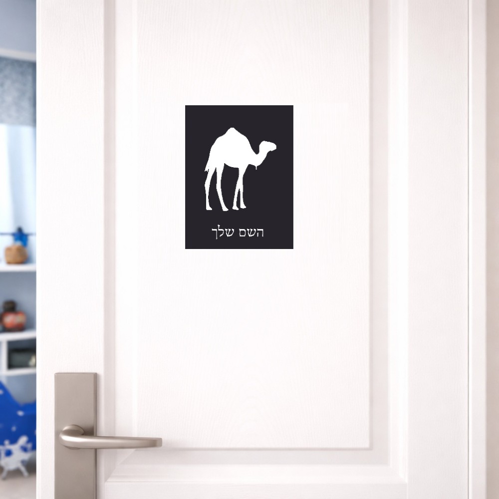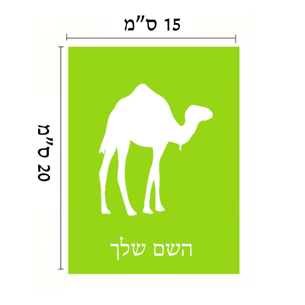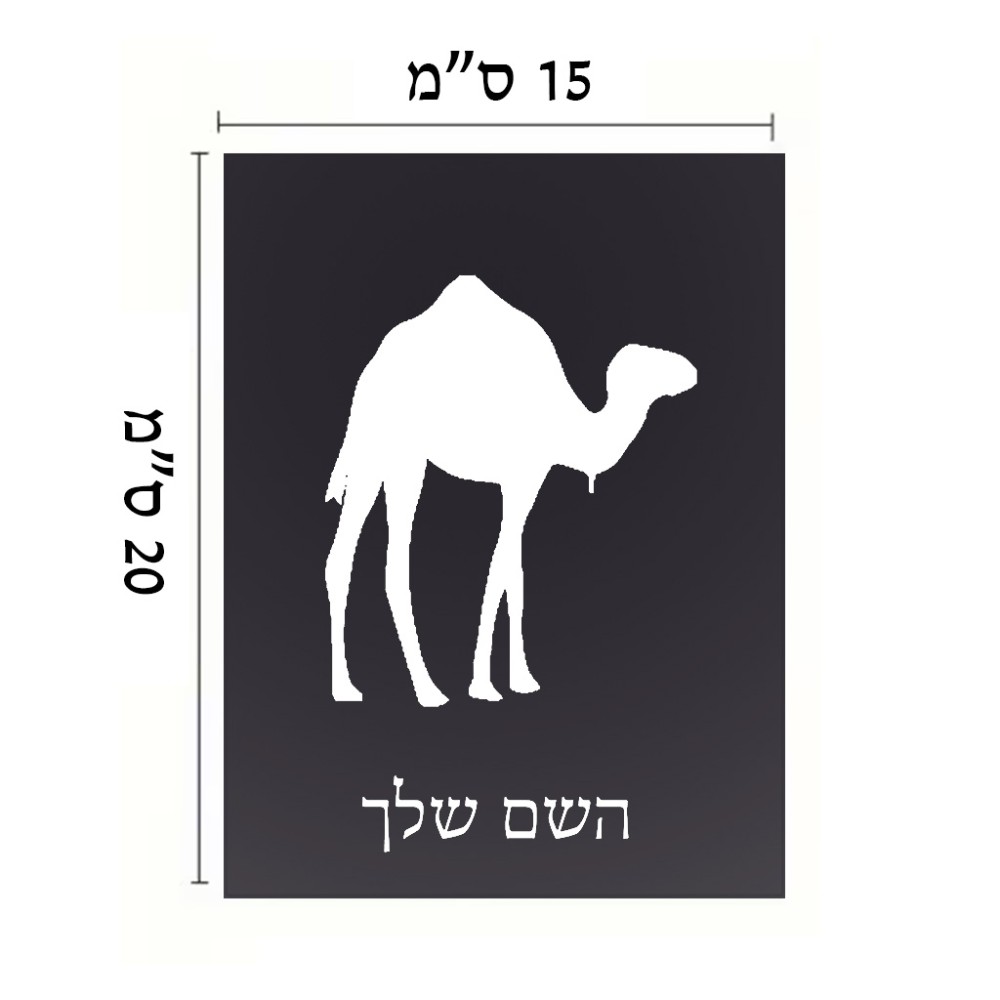 שלט אלומיניום קטן לחדר בעיצוב אישי עם השם שלך בעיצוב גמל גודל השלט 15 × 20 ס"מ. את השם המבוקש ניתן לציין בהזמנה, אם לא צויין אנחנו ניצור קשר לבירור.
