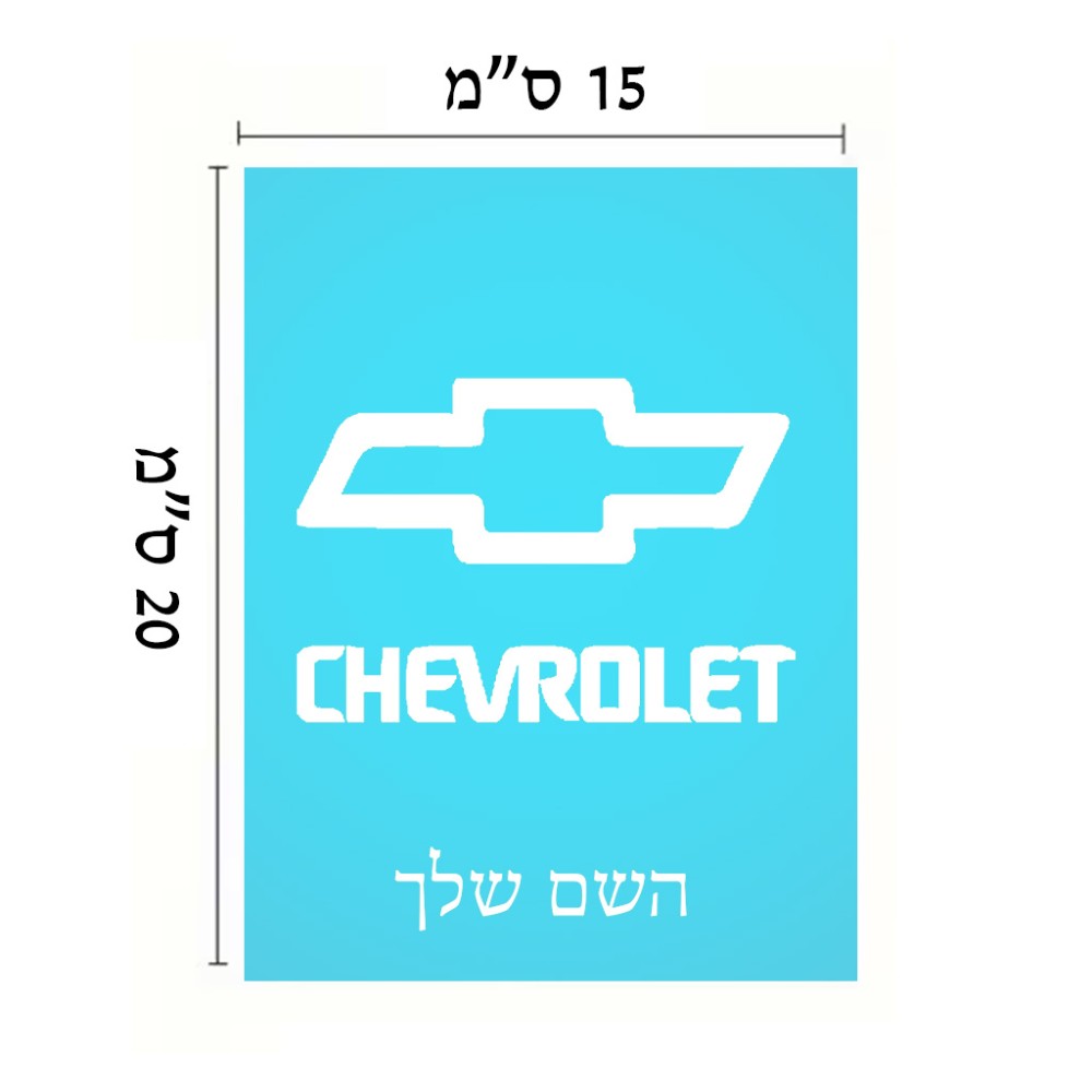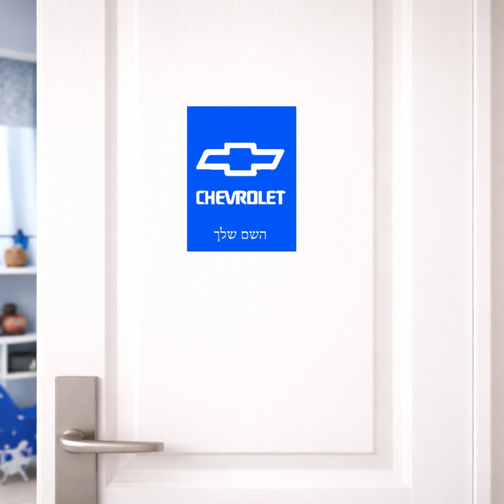 שלט אלומיניום קטן לחדר בעיצוב אישי עם השם שלך בעיצוב שברולט גודל השלט 15 × 20 ס"מ.