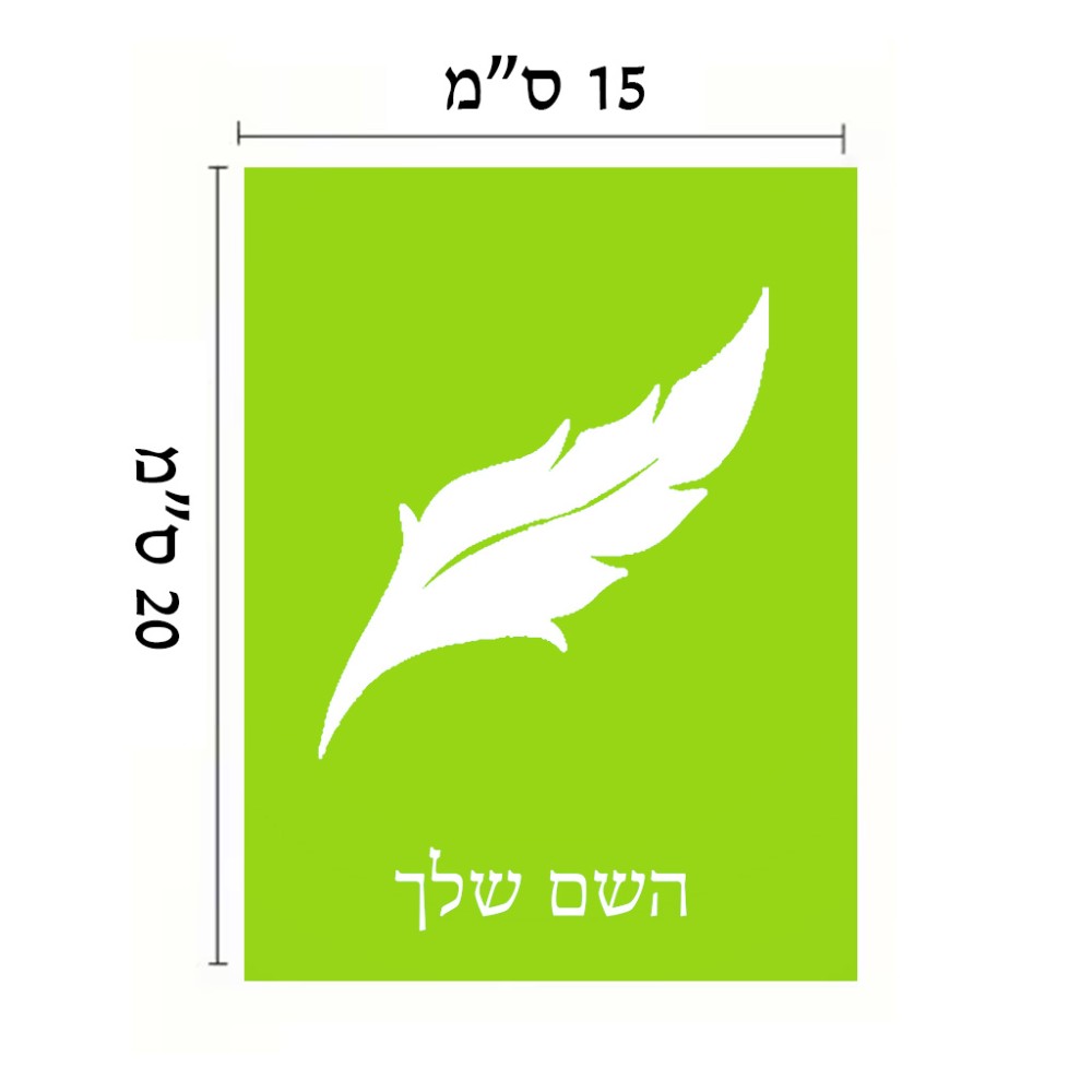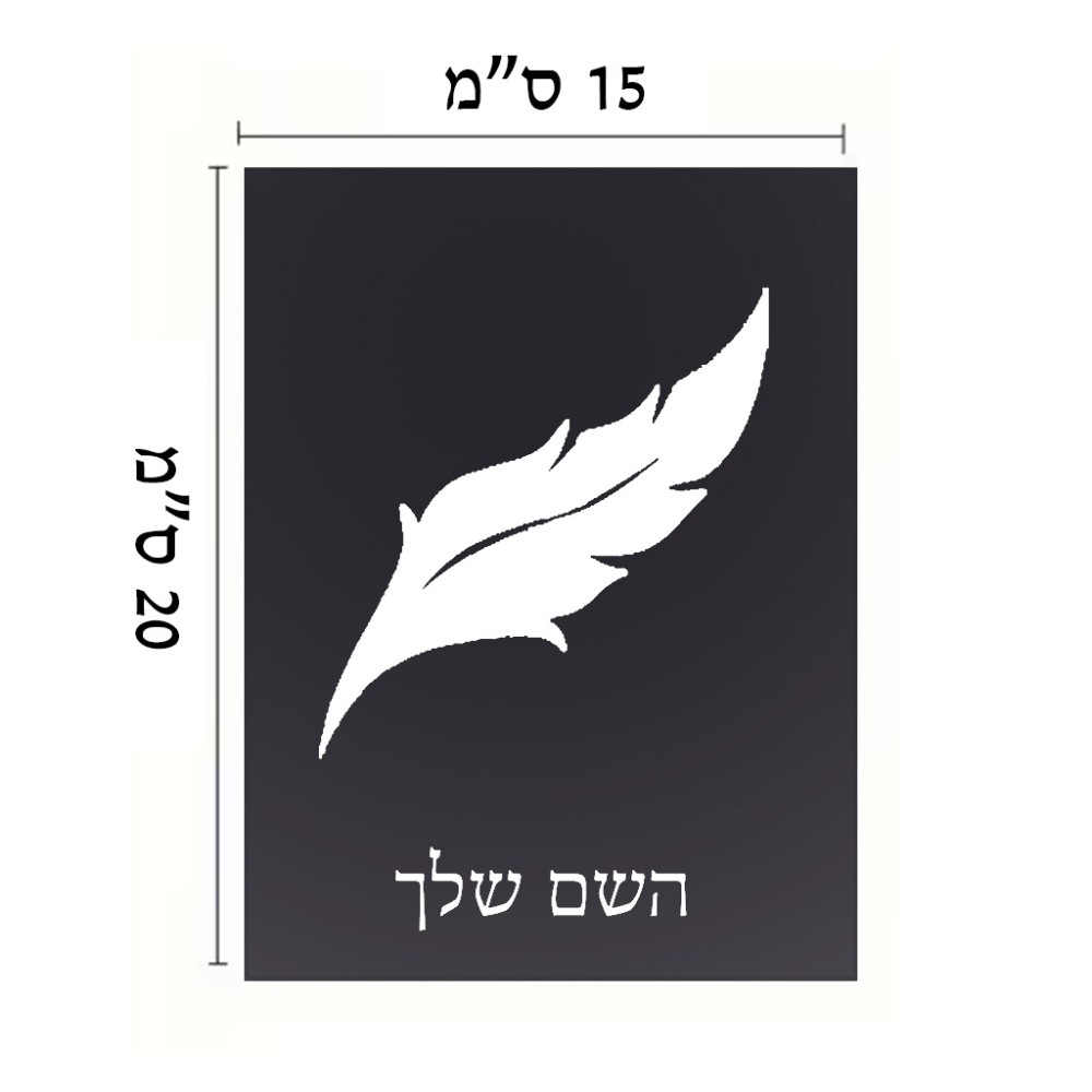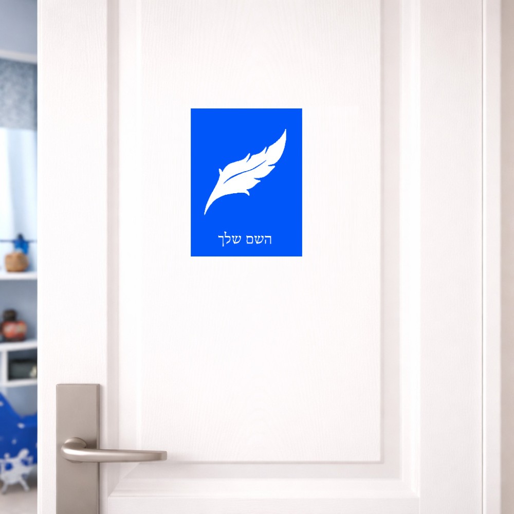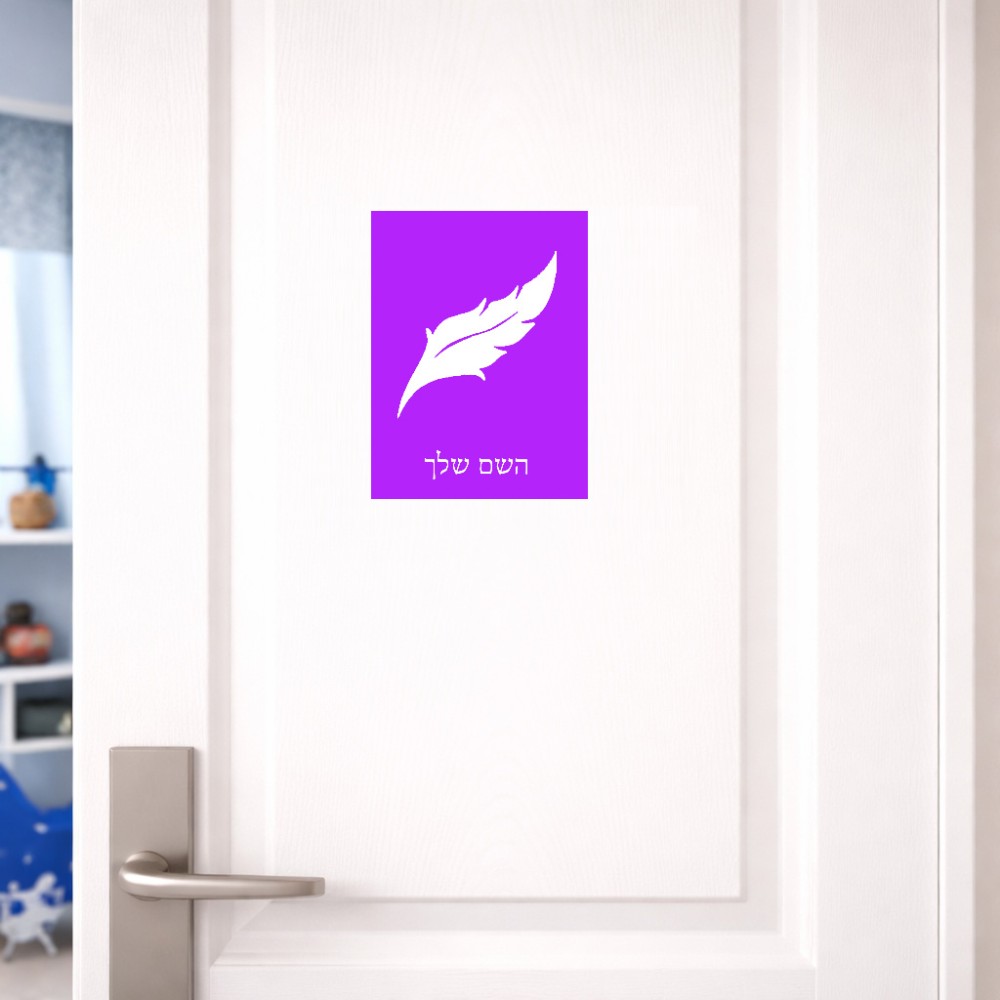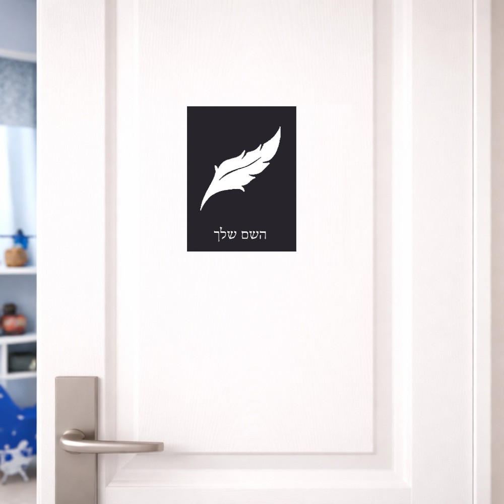 שלט אלומיניום קטן לחדר בעיצוב אישי עם השם שלך בעיצוב נוצת נוצה גודל השלט 15 × 20 ס"מ. את השם המבוקש ניתן לציין בהזמנה, אם לא צויין אנחנו ניצור קשר לבירור.