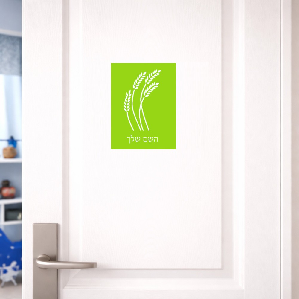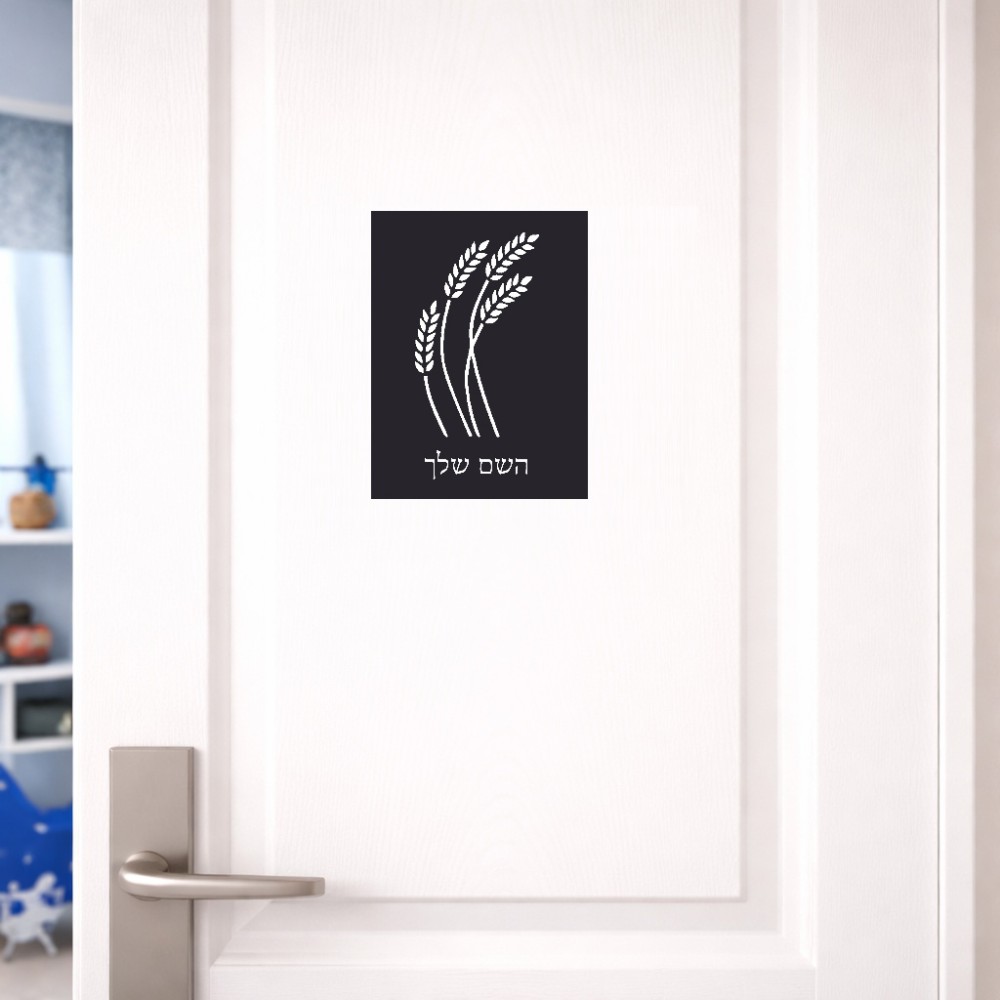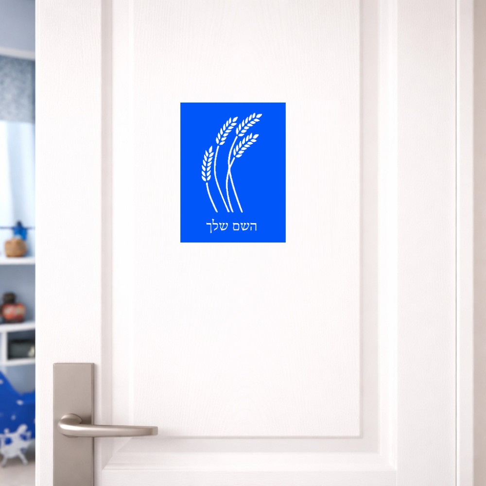 שלט אלומיניום קטן לחדר בעיצוב אישי עם השם שלך בעיצוב חיטה גלית זהב גודל השלט 15 × 20 ס"מ. את השם המבוקש ניתן לציין בהזמנה, אם לא צויין אנחנו ניצור קשר לבירור.