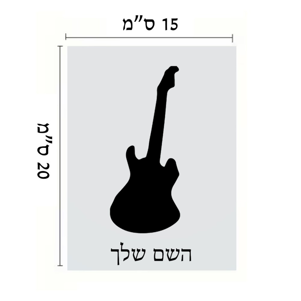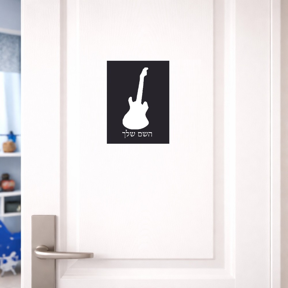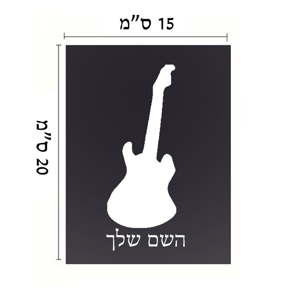 שלט אלומיניום קטן לחדר בעיצוב אישי עם השם שלך בעיצוב גיטרה גודל השלט 15 × 20 ס"מ. את השם המבוקש ניתן לציין בהזמנה, אם לא צויין אנחנו ניצור קשר לבירור.