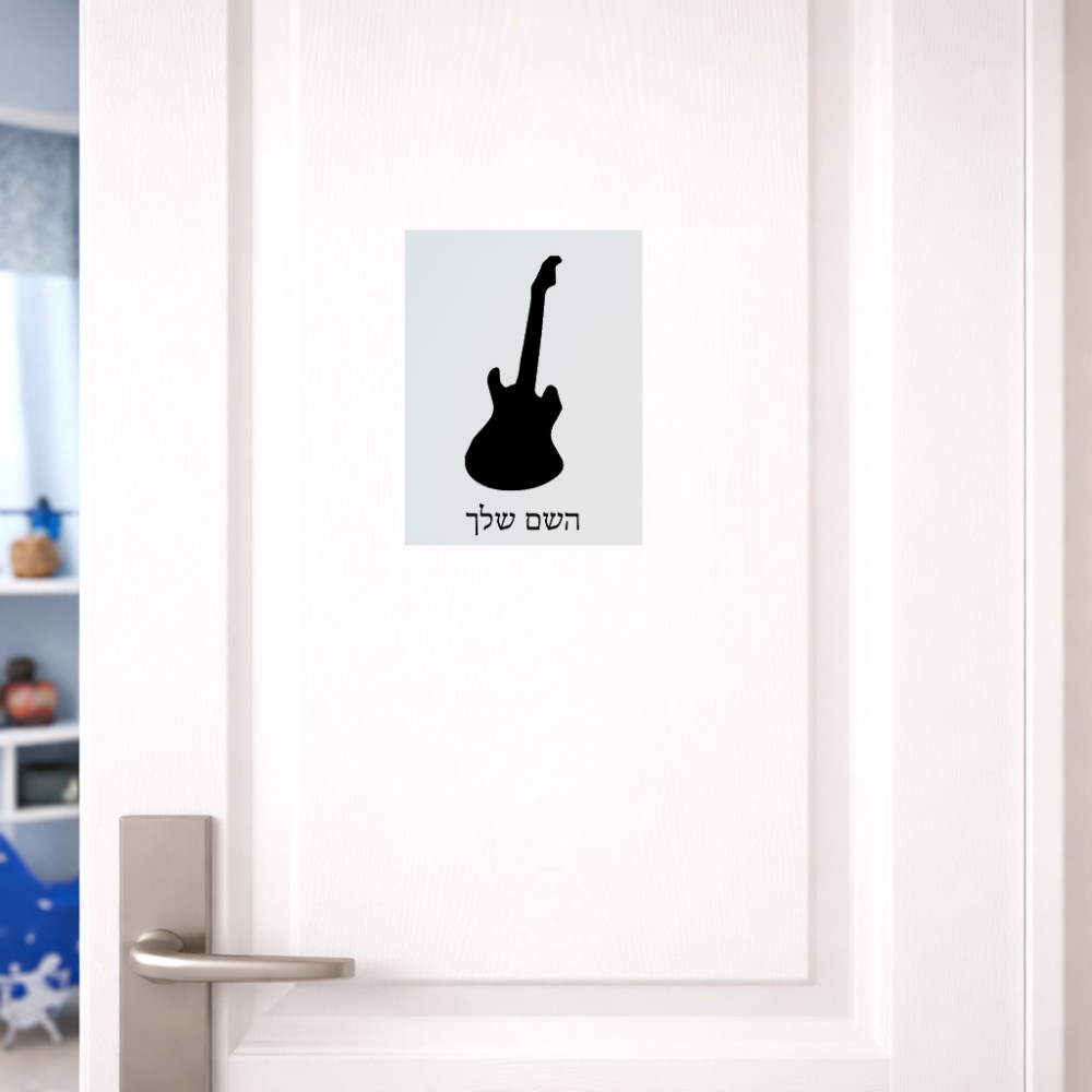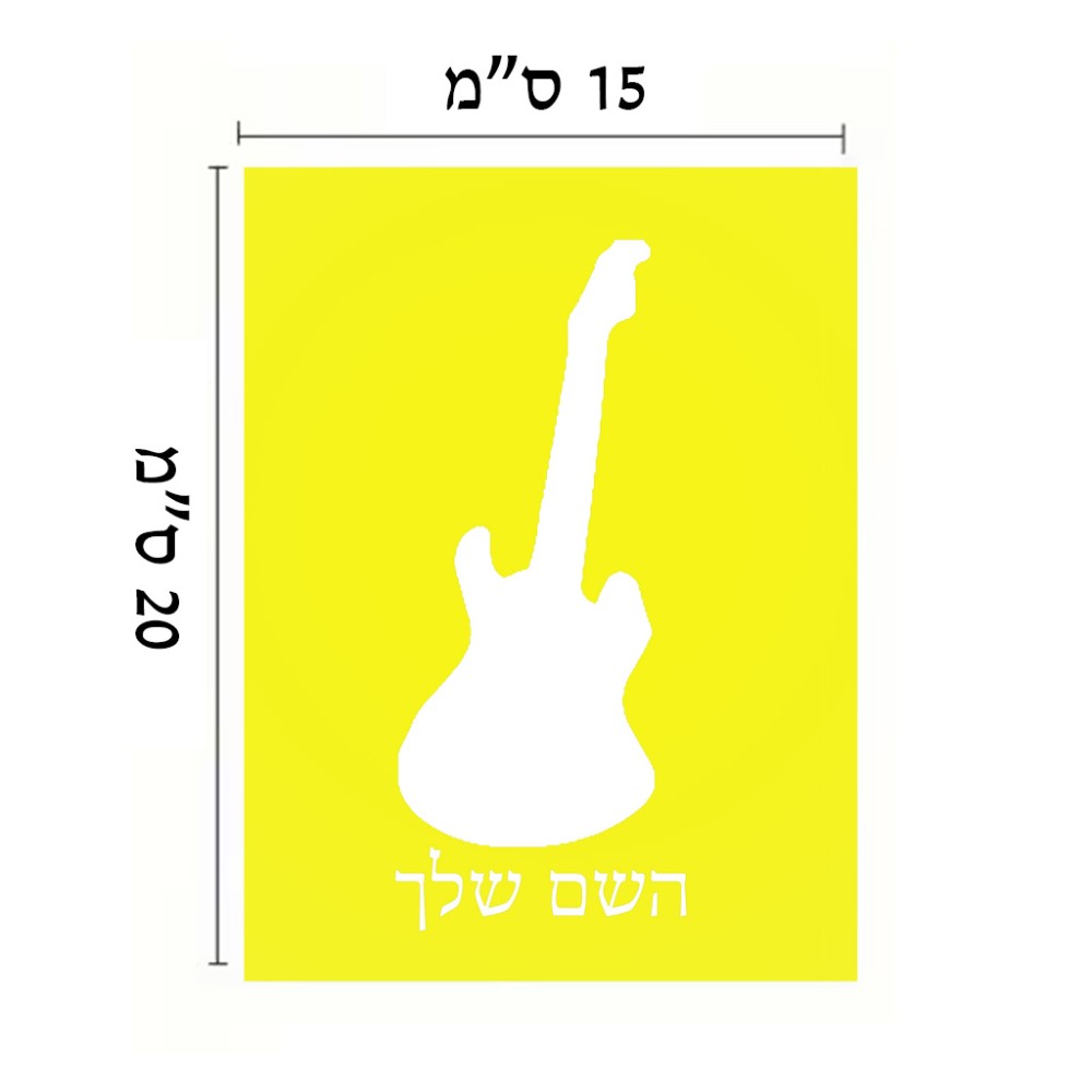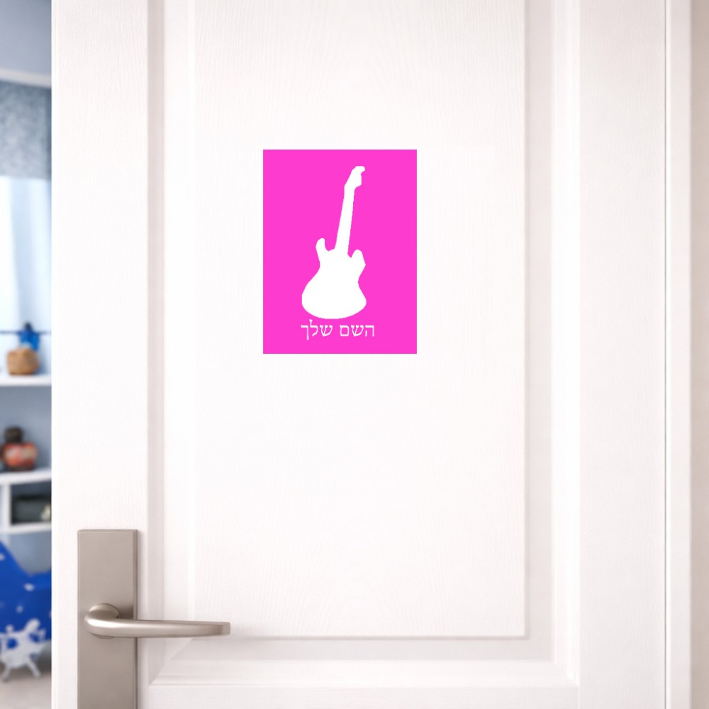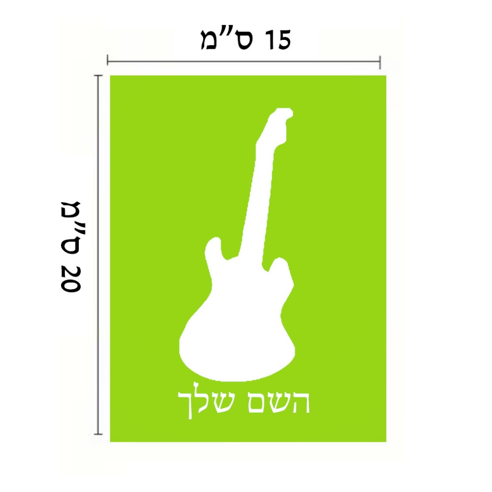 שלט אלומיניום קטן לחדר בעיצוב אישי עם השם שלך בעיצוב גיטרה גודל השלט 15 × 20 ס"מ. את השם המבוקש ניתן לציין בהזמנה, אם לא צויין אנחנו ניצור קשר לבירור.