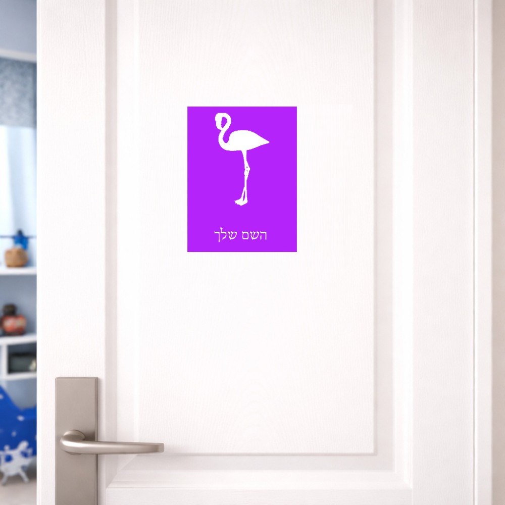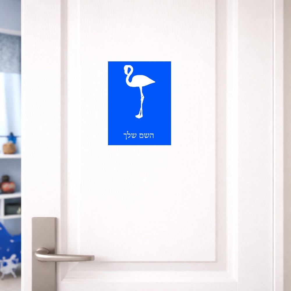 שלט אלומיניום קטן לחדר בעיצוב אישי עם השם שלך בעיצוב אנפה גודל השלט 15 × 20 ס"מ.