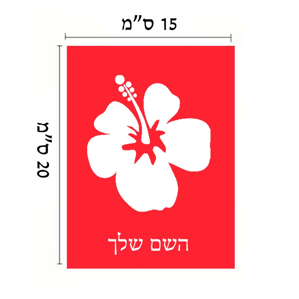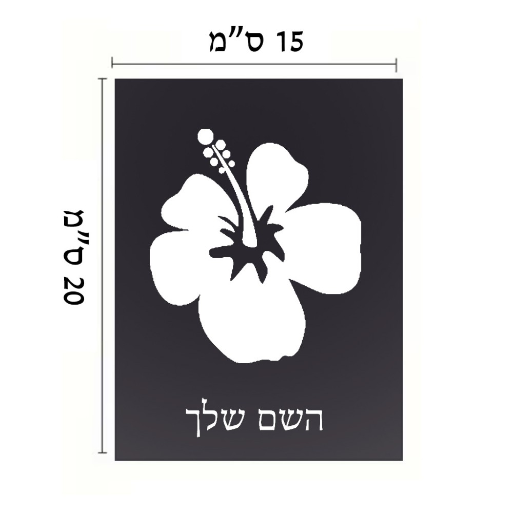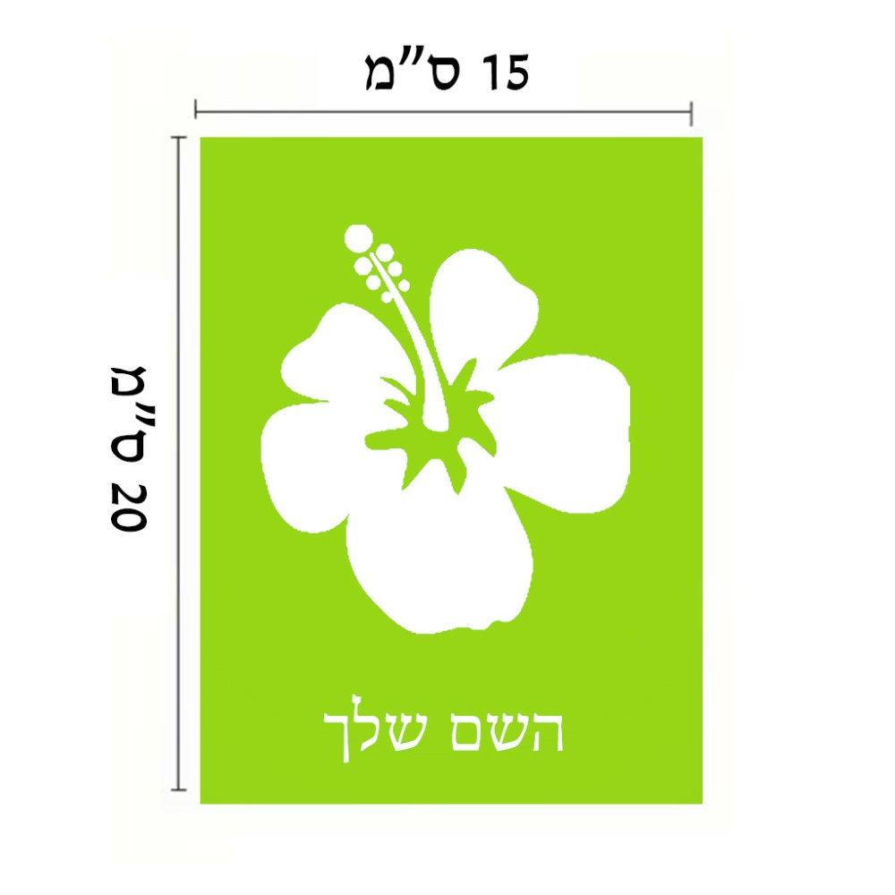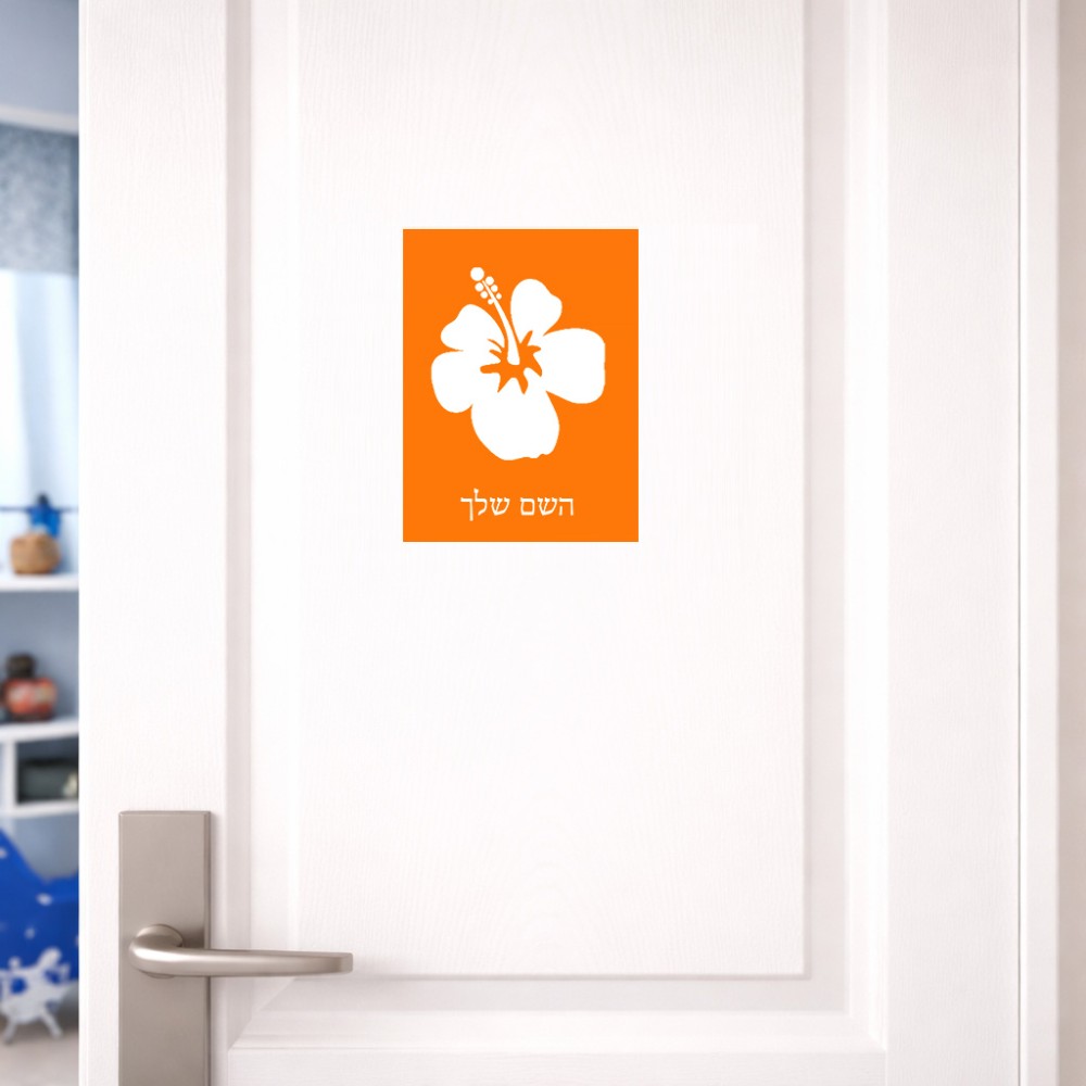 שלט אלומיניום קטן לחדר בעיצוב אישי עם השם שלך בעיצוב פרח היביסקוס גודל השלט 15 × 20 ס"מ. את השם המבוקש ניתן לציין בהזמנה, אם לא צויין אנחנו ניצור קשר לבירור.