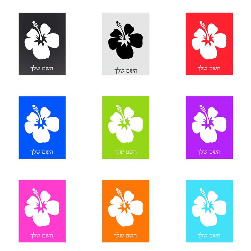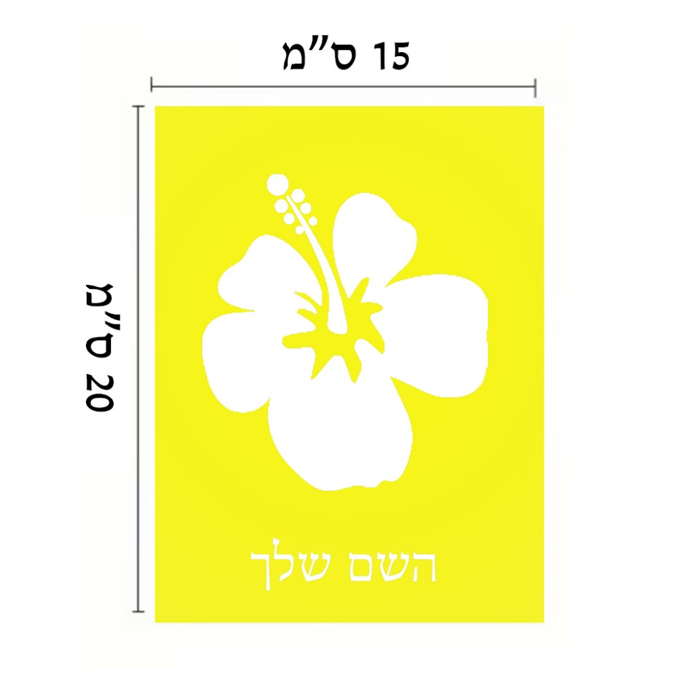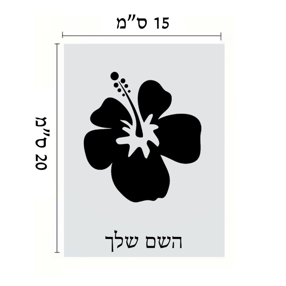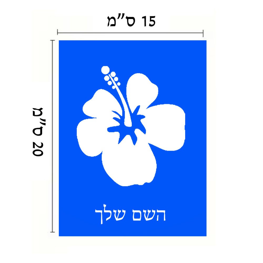 שלט אלומיניום קטן לחדר בעיצוב אישי עם השם שלך בעיצוב פרח היביסקוס גודל השלט 15 × 20 ס"מ. את השם המבוקש ניתן לציין בהזמנה, אם לא צויין אנחנו ניצור קשר לבירור.