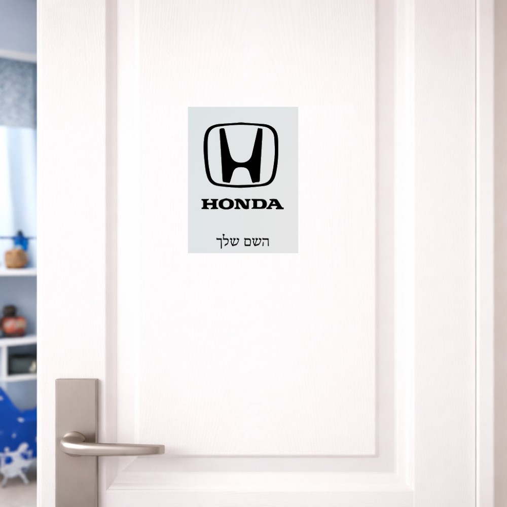 שלט אלומיניום קטן לחדר בעיצוב אישי עם השם שלך בעיצוב הונדה 2 גודל השלט 15 × 20 ס"מ. את השם המבוקש ניתן לציין בהזמנה, אם לא צויין אנחנו ניצור קשר לבירור.