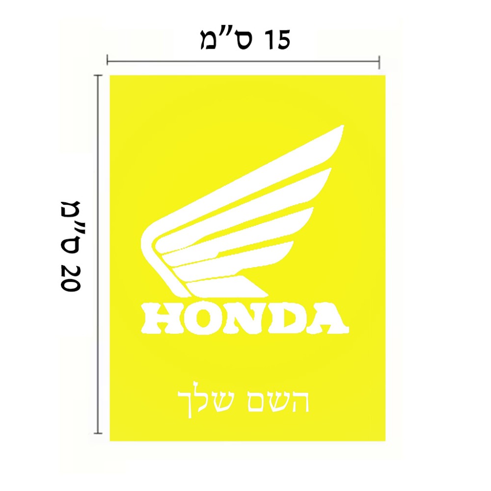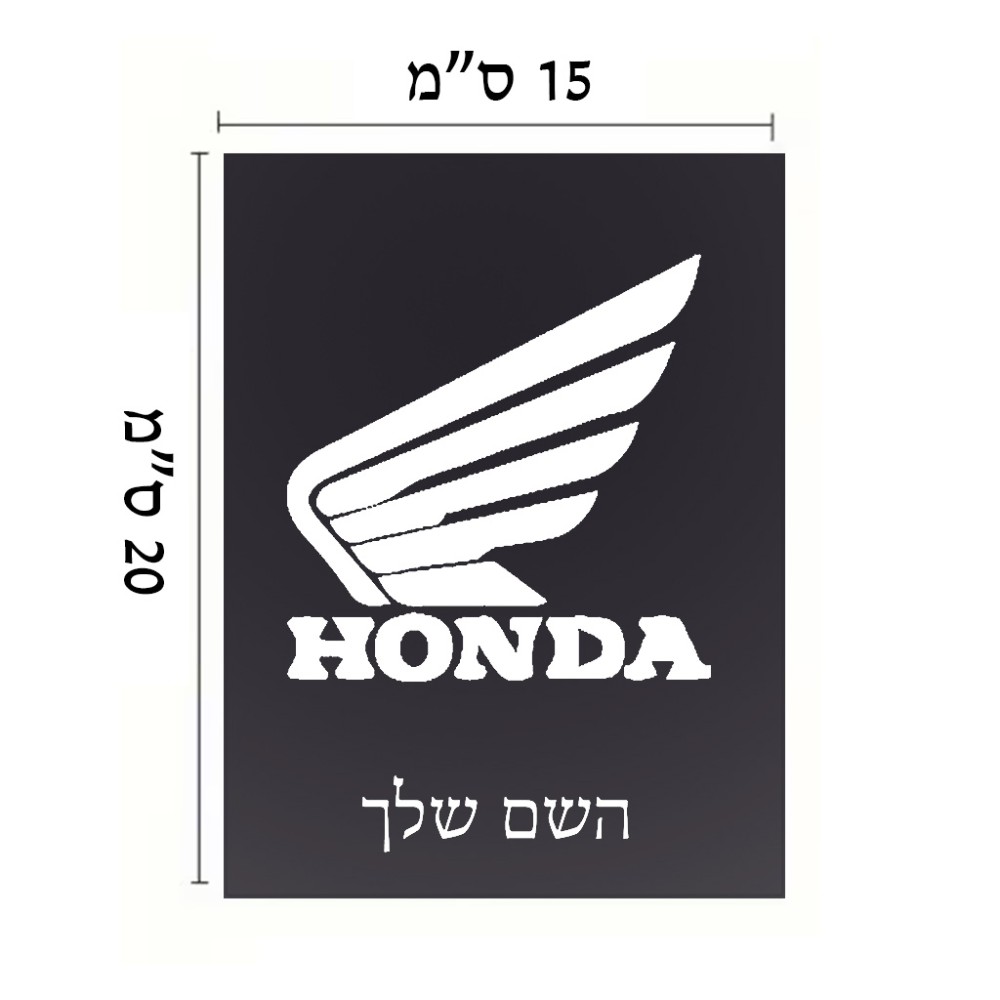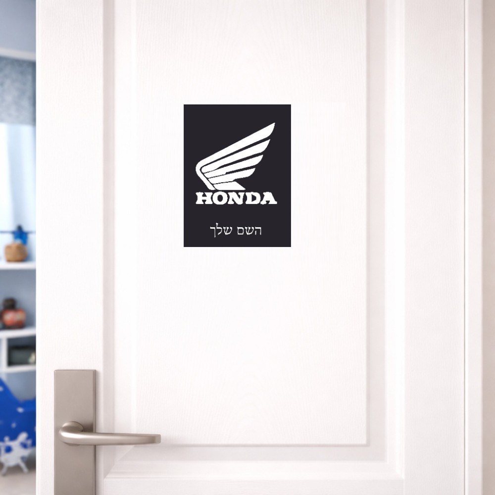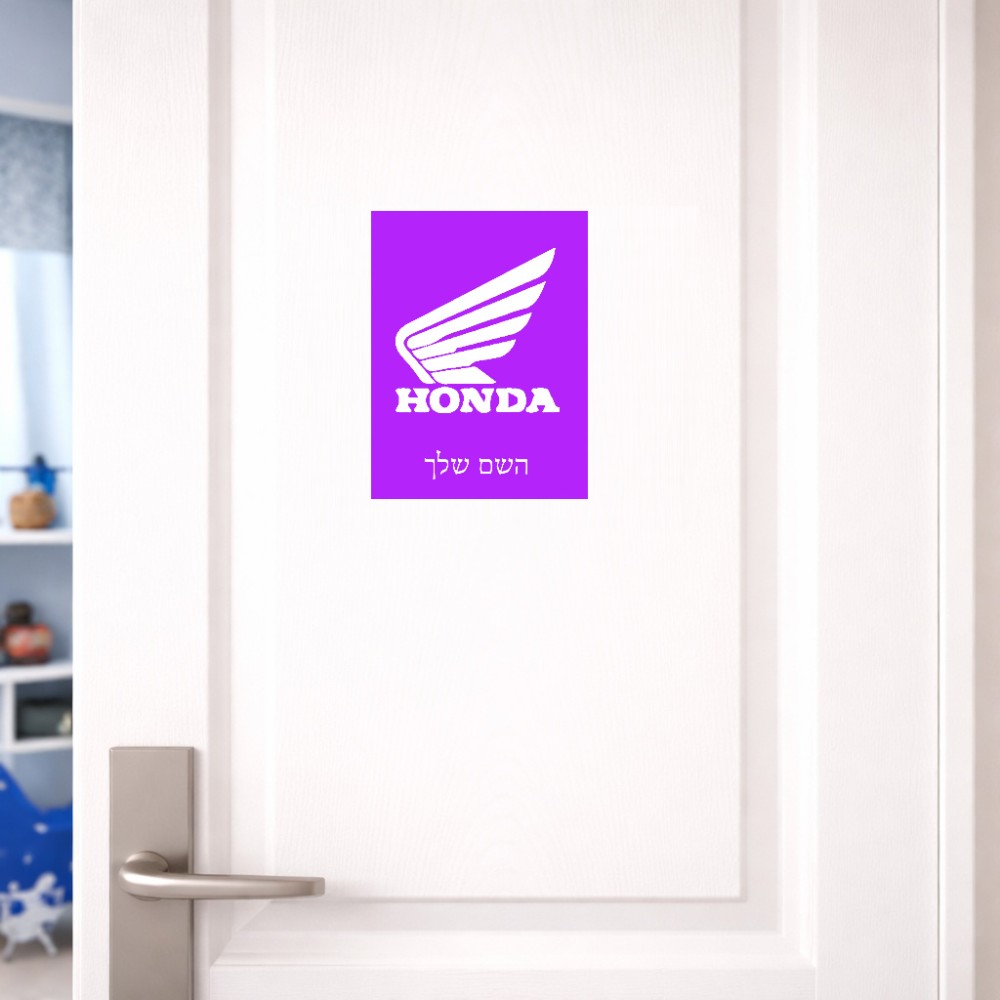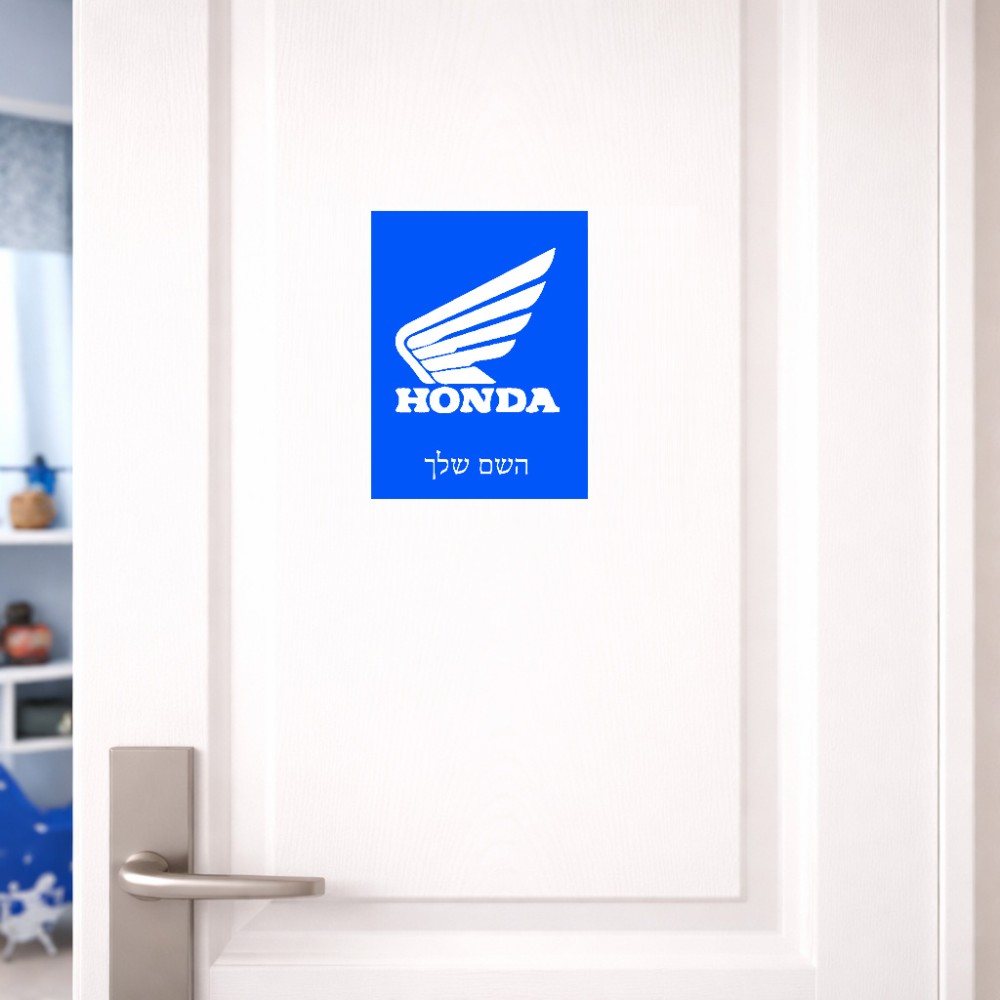 שלט אלומיניום קטן לחדר בעיצוב אישי עם השם שלך בעיצוב הונדה גודל השלט 15 × 20 ס"מ. את השם המבוקש ניתן לציין בהזמנה, אם לא צויין אנחנו ניצור קשר לבירור.