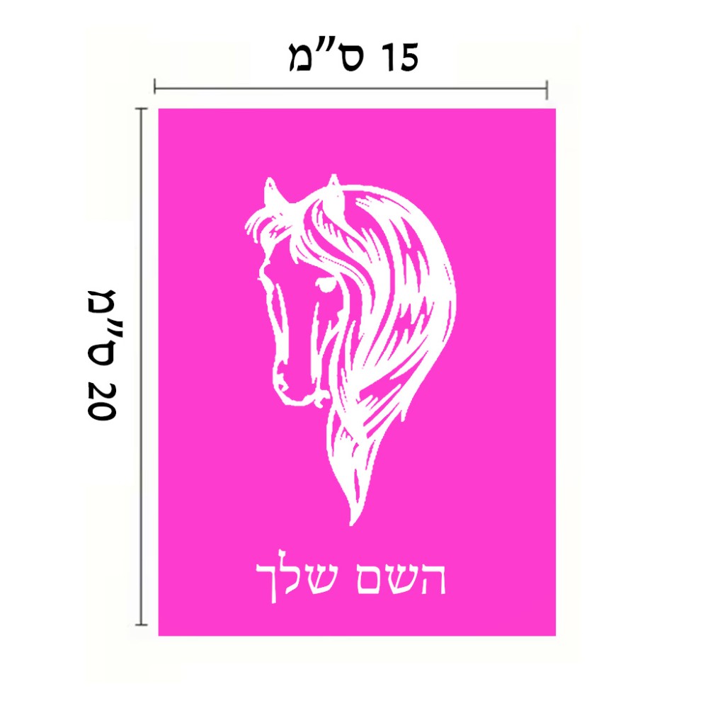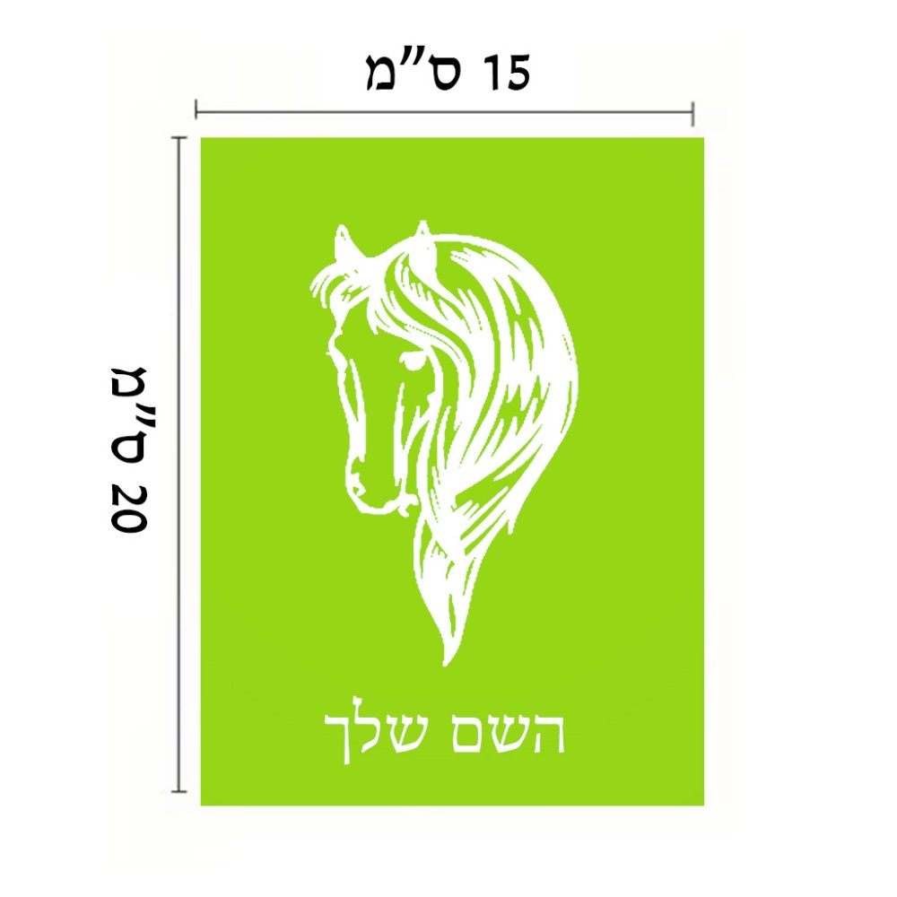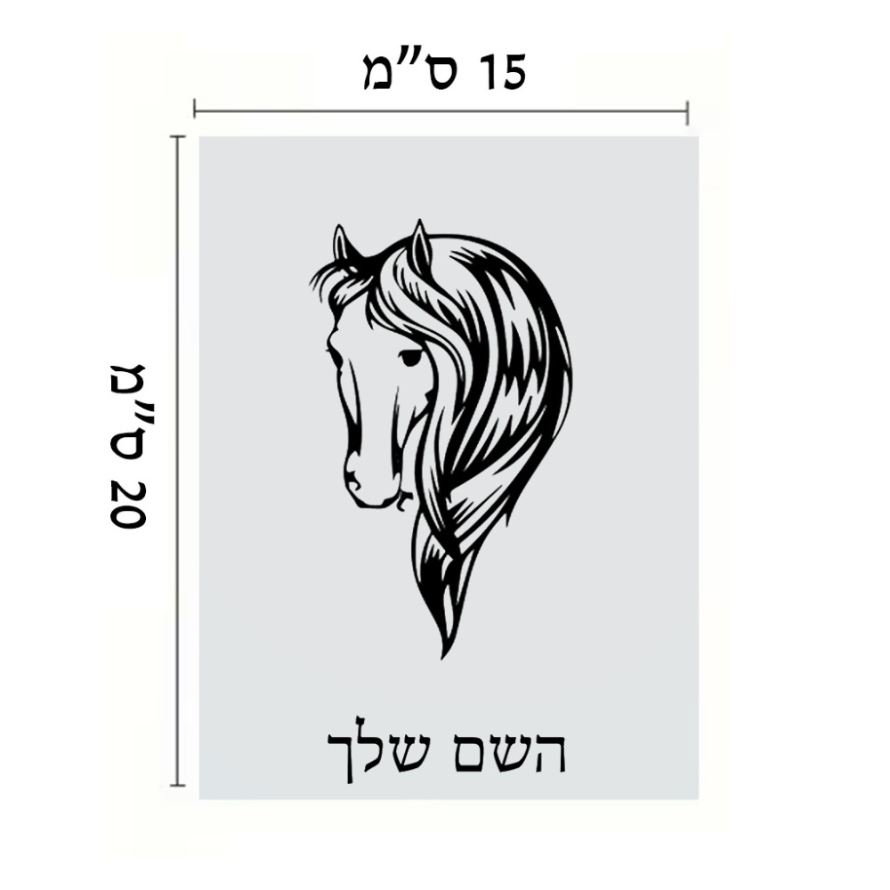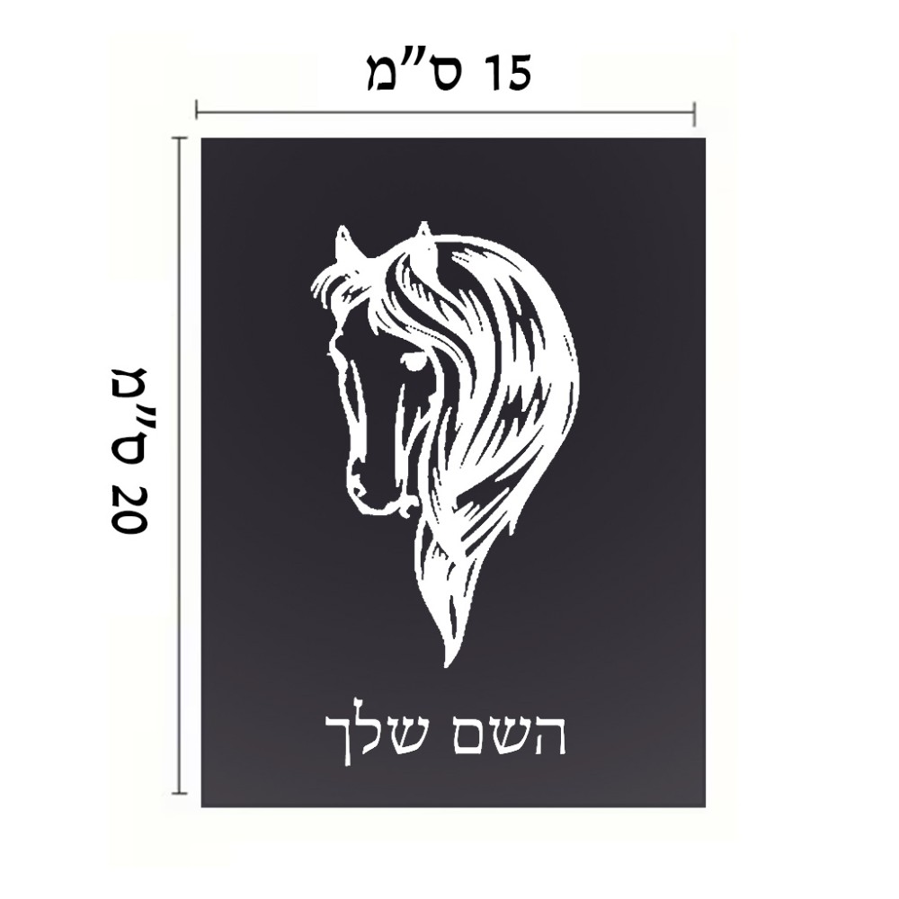 שלט אלומיניום קטן לחדר בעיצוב אישי עם השם שלך בעיצוב ראש סוס גודל השלט 15 × 20 ס"מ. את השם המבוקש ניתן לציין בהזמנה, אם לא צויין אנחנו ניצור קשר לבירור.