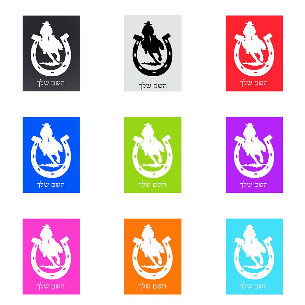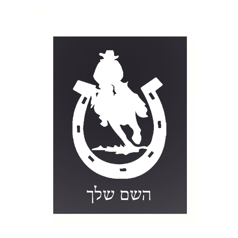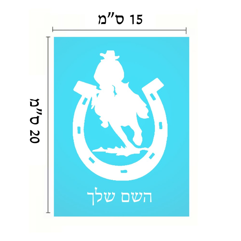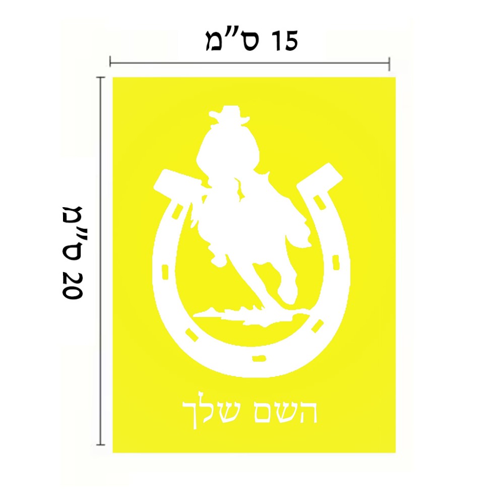 שלט אלומיניום קטן לחדר בעיצוב אישי עם השם שלך בעיצוב פרסה וסוס גודל השלט 15 × 20 ס"מ. את השם המבוקש ניתן לציין בהזמנה, אם לא צויין אנחנו ניצור קשר לבירור.