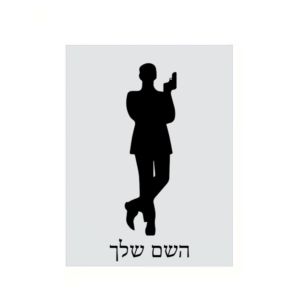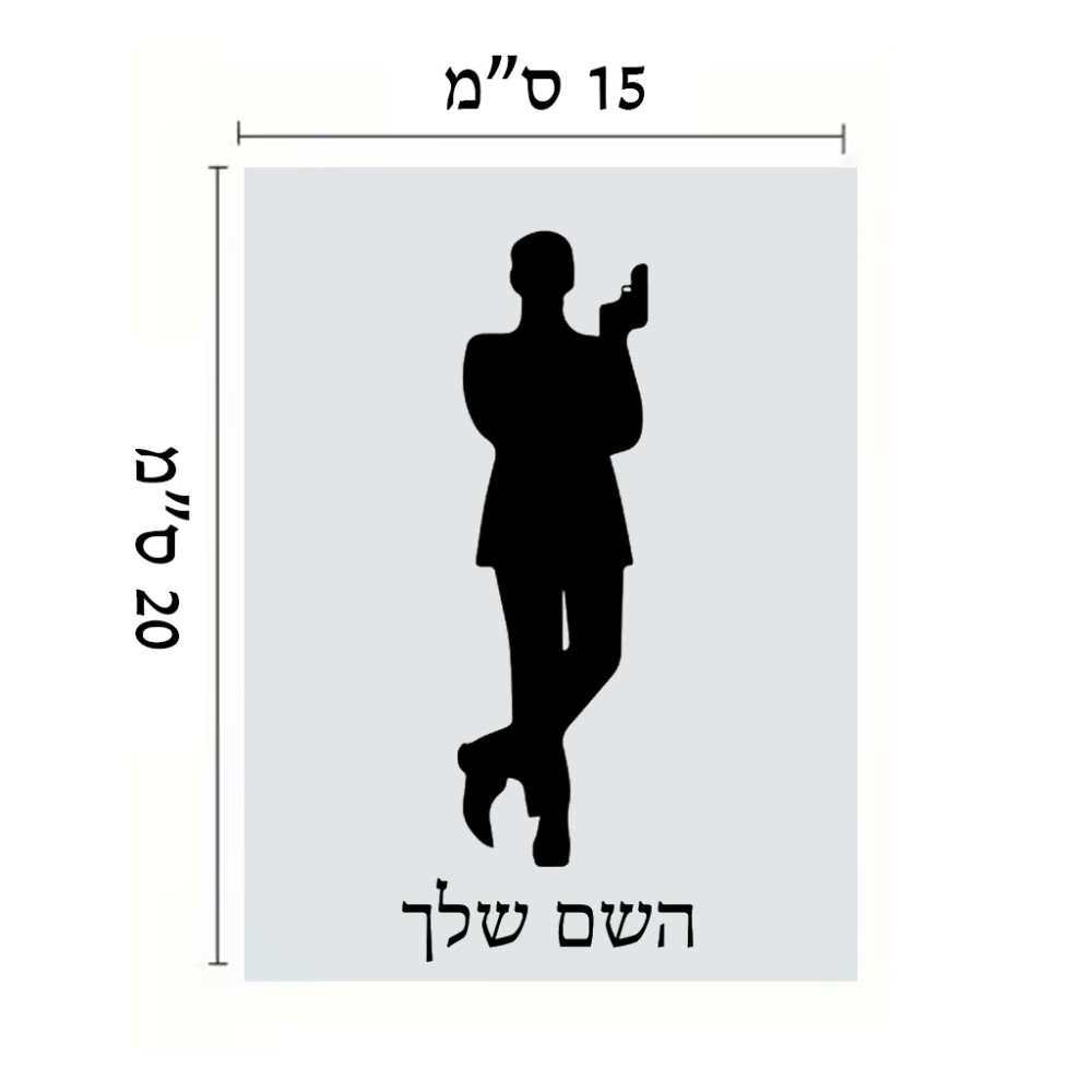 שלט אלומיניום קטן לחדר בעיצוב אישי עם השם שלך בעיצוב ג'יימס בונד גודל השלט 15 × 20 ס"מ. את השם המבוקש ניתן לציין בהזמנה, אם לא צויין אנחנו ניצור קשר לבירור.