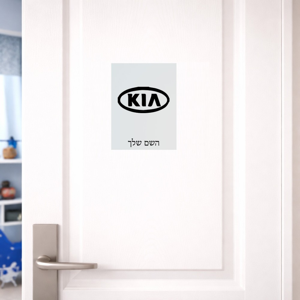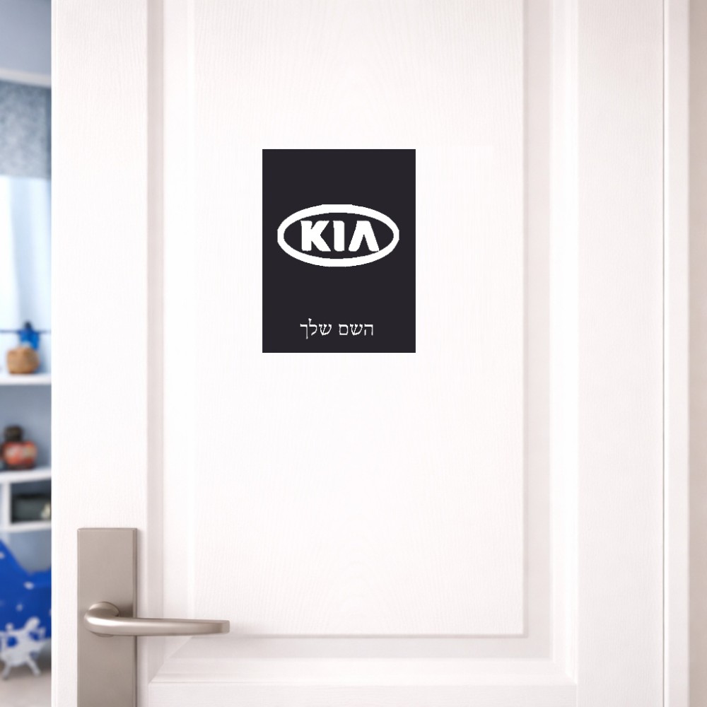 שלט אלומיניום קטן לחדר בעיצוב אישי עם השם שלך בעיצוב קיה גודל השלט 15 × 20 ס"מ. את השם המבוקש ניתן לציין בהזמנה, אם לא צויין אנחנו ניצור קשר לבירור.