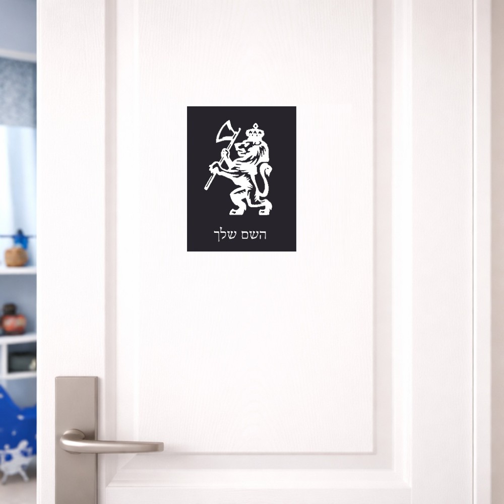 שלט אלומיניום קטן לחדר בעיצוב אישי עם השם שלך בעיצוב אריה גודל השלט 15 × 20 ס"מ. את השם המבוקש ניתן לציין בהזמנה, אם לא צויין אנחנו ניצור קשר לבירור.